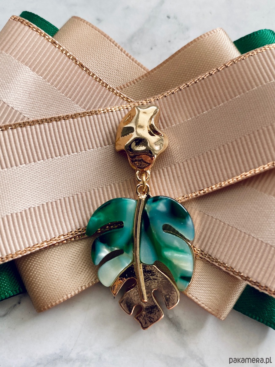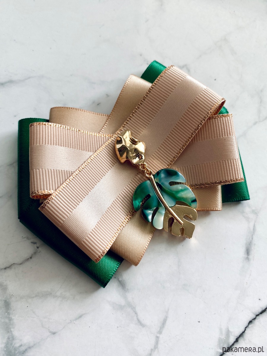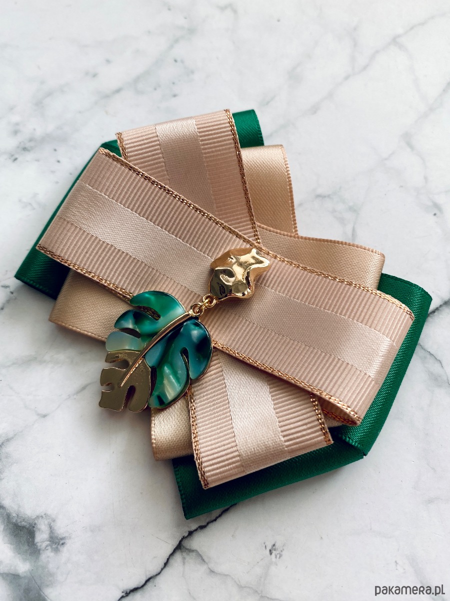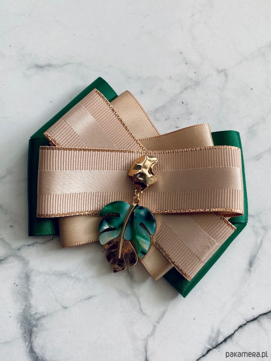 Broszka wykonana z wysokiej jakości taśm i dodatków.