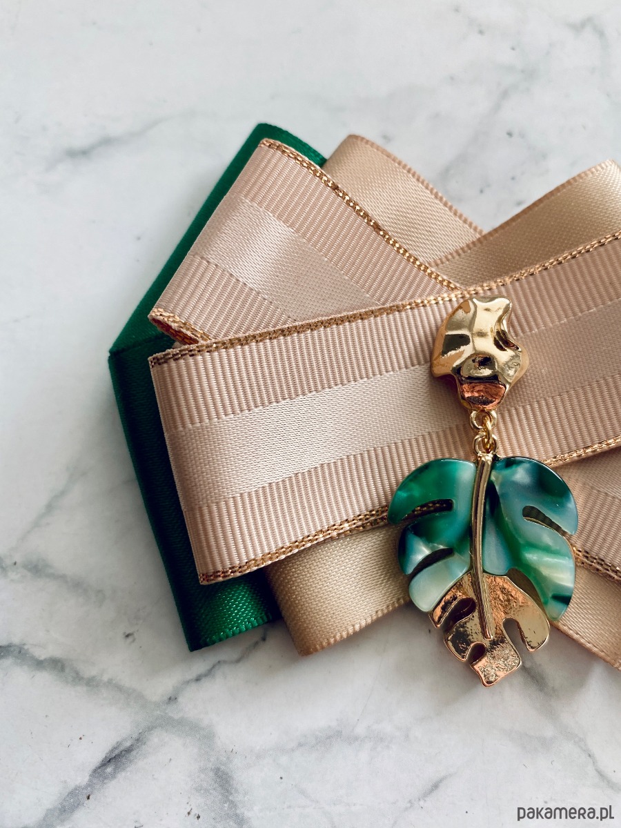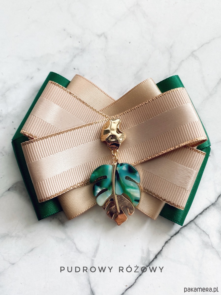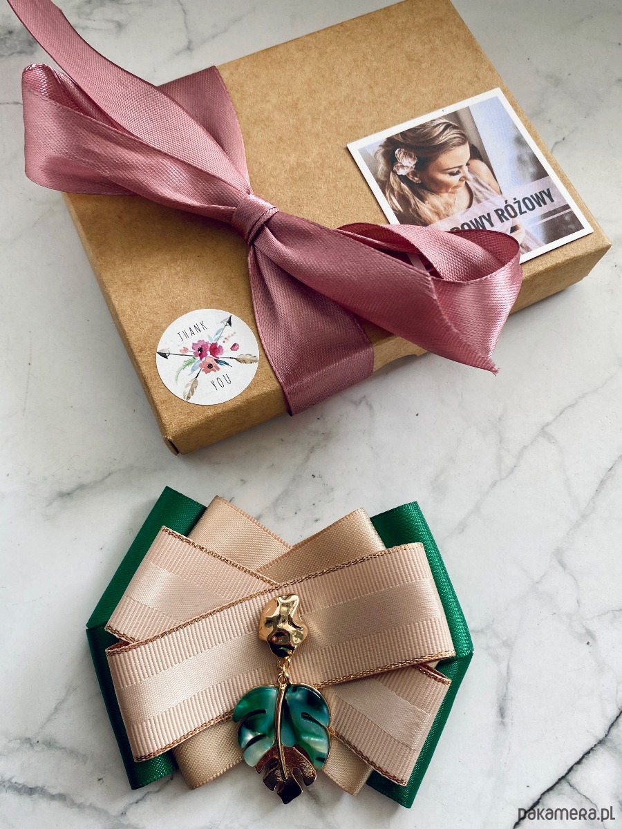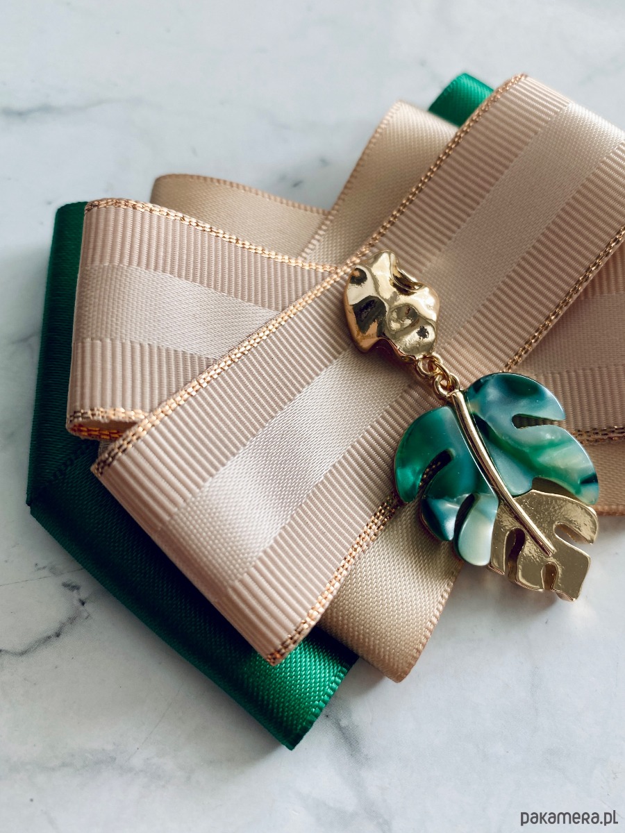 Broszka wykonana z wysokiej jakości taśm i dodatków.