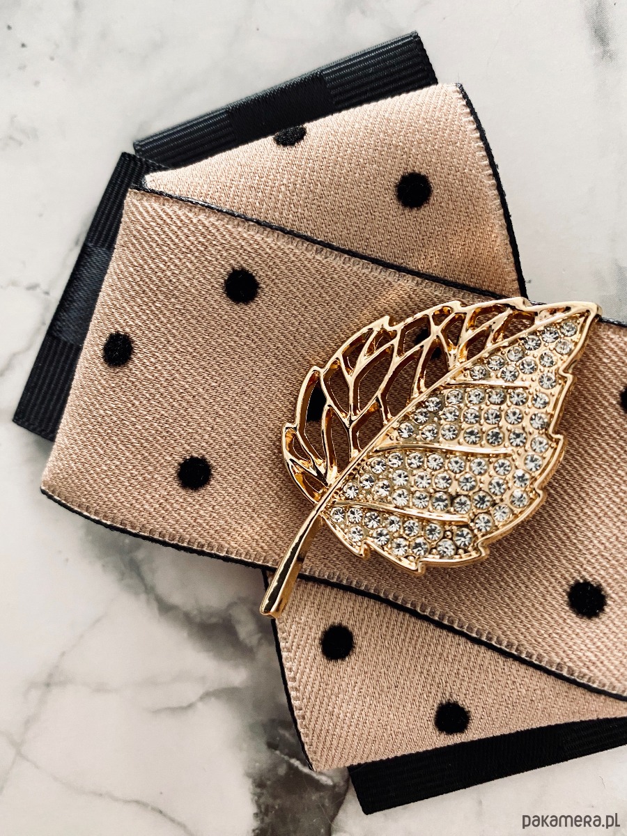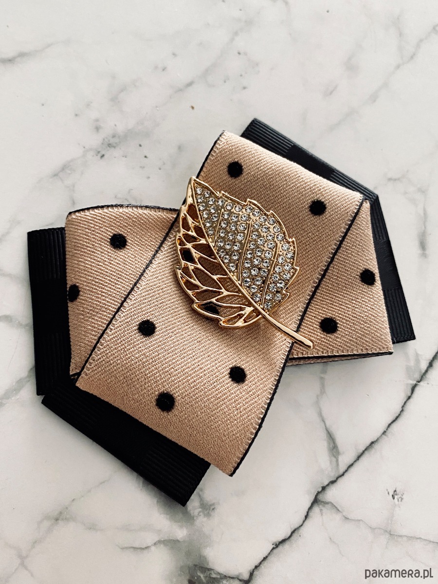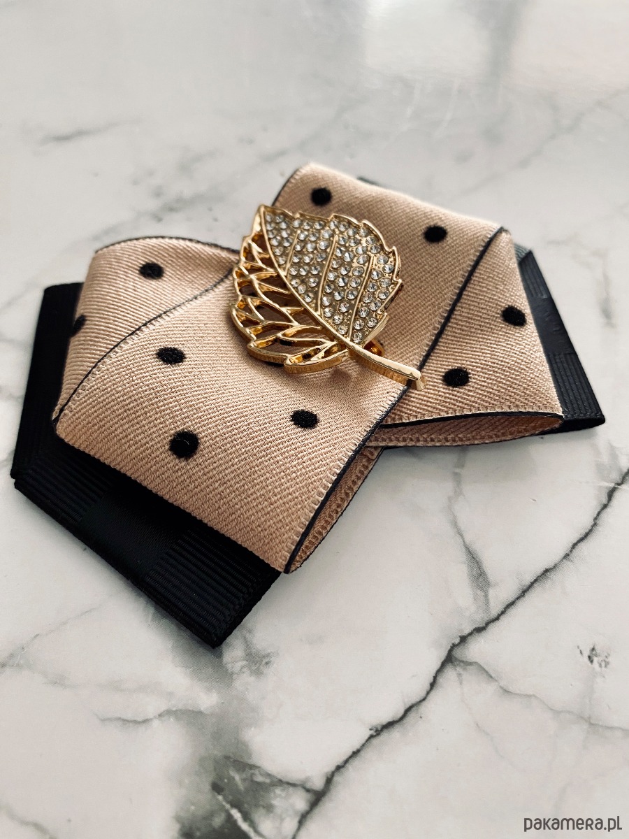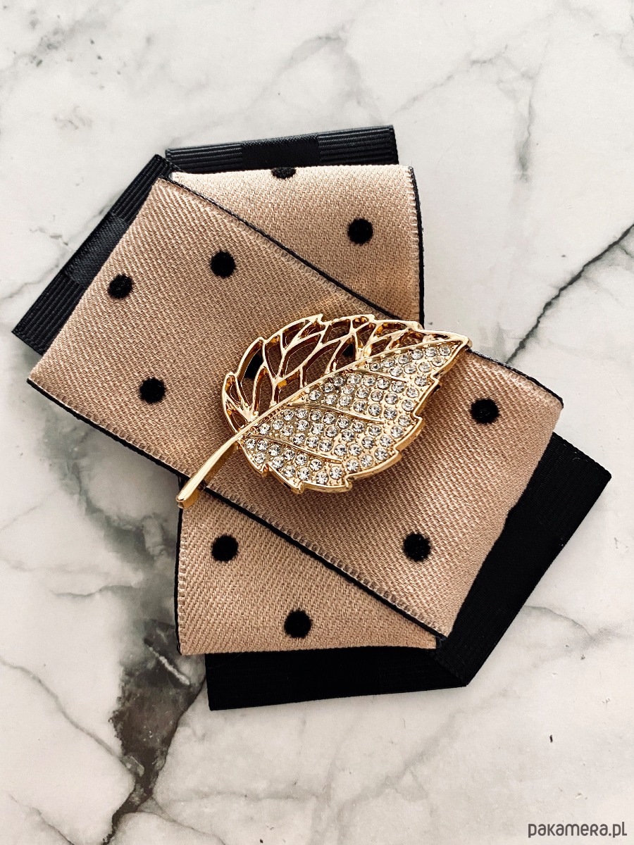 Broszka wykonana z wysokiej jakości taśm i dodatków.