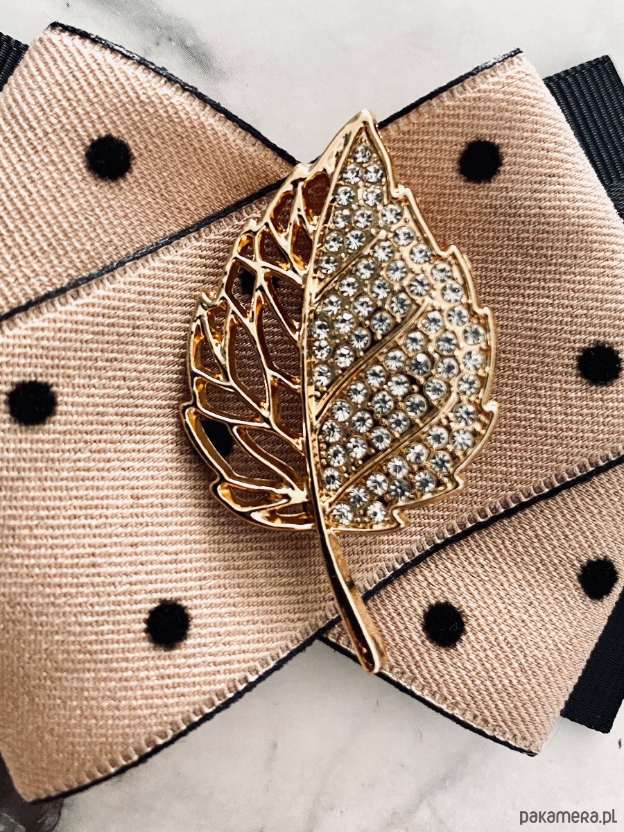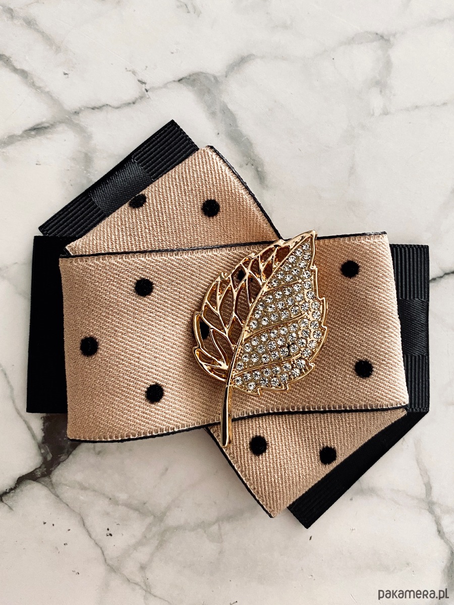 Broszka wykonana z wysokiej jakości taśm i dodatków.