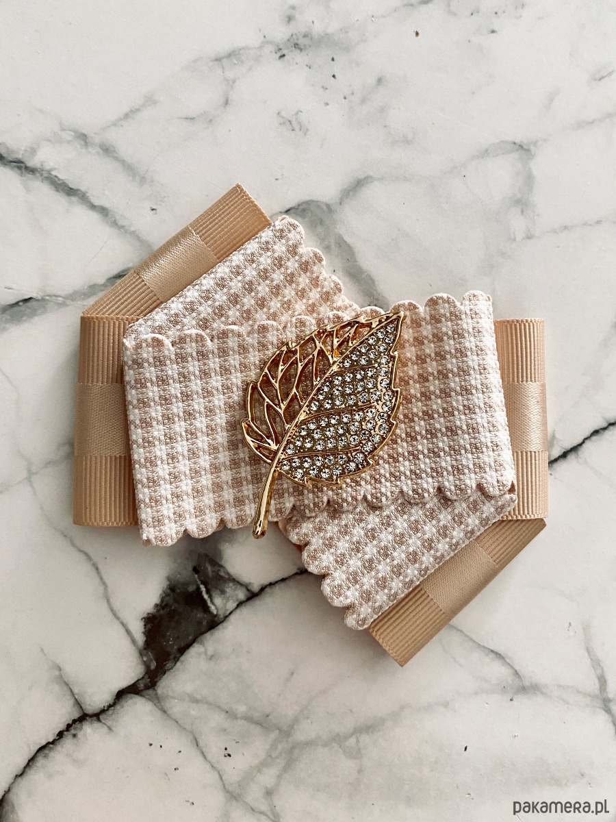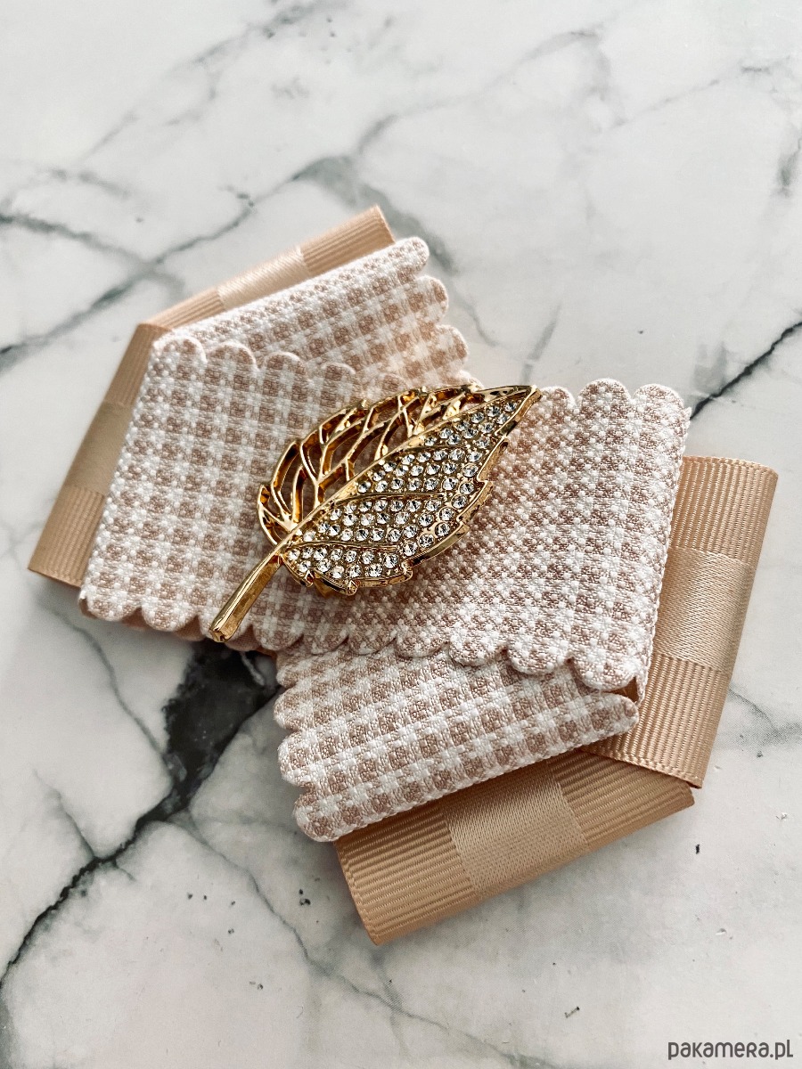 Broszka wykonana z wysokiej jakości taśm i dodatków.