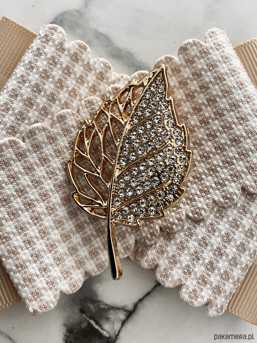 Piękna dekoracyjna ozdoba na środku, delikatny liść w złotym kolorze z drobnymi cyrkoniami. !