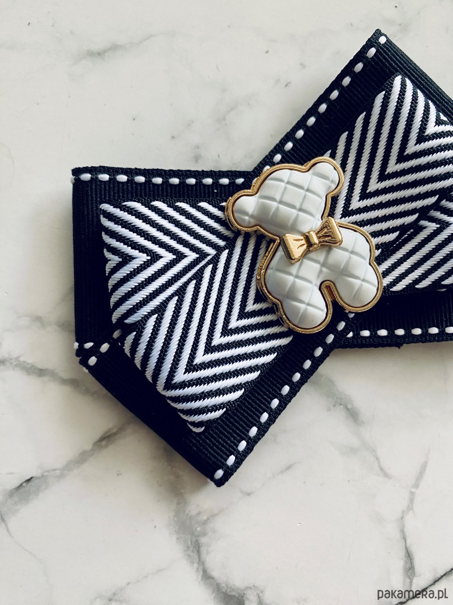 Broszka wykonana z wysokiej jakości taśm i dodatków.