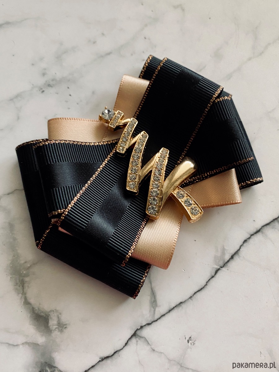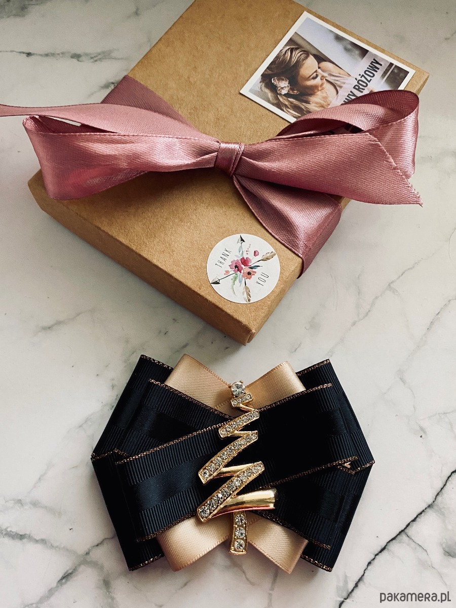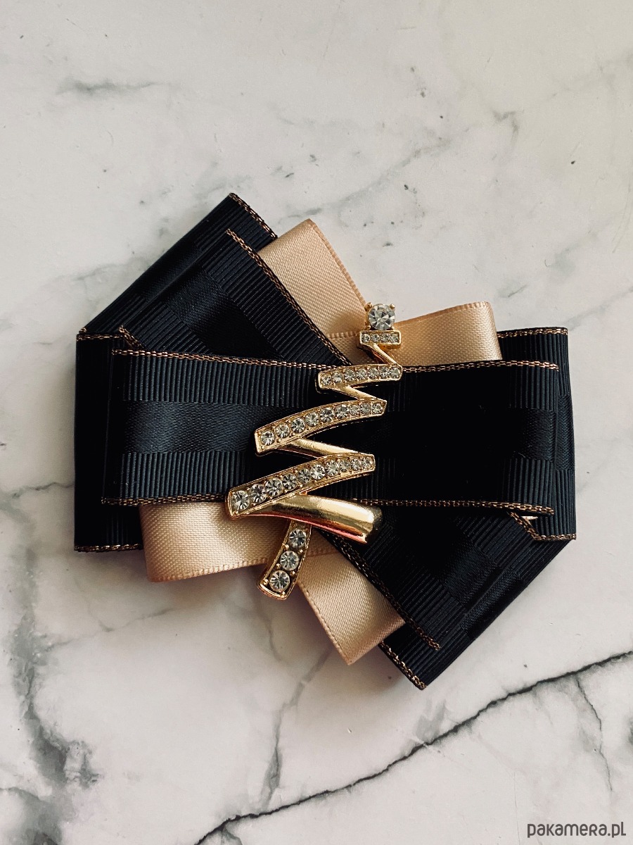 Broszka wykonana z wysokiej jakości taśm i dodatków.