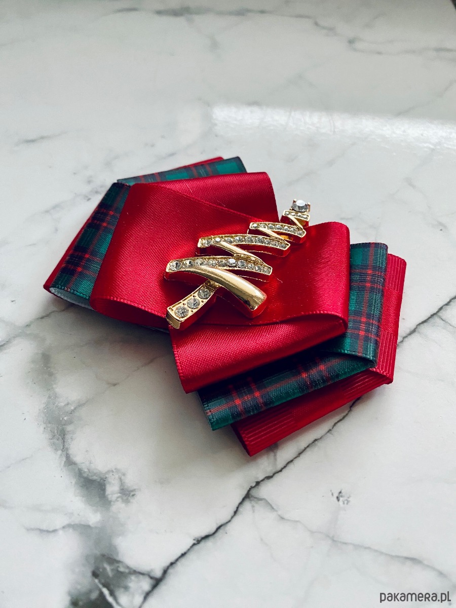 Broszka wykonana z wysokiej jakości taśm i dodatków.