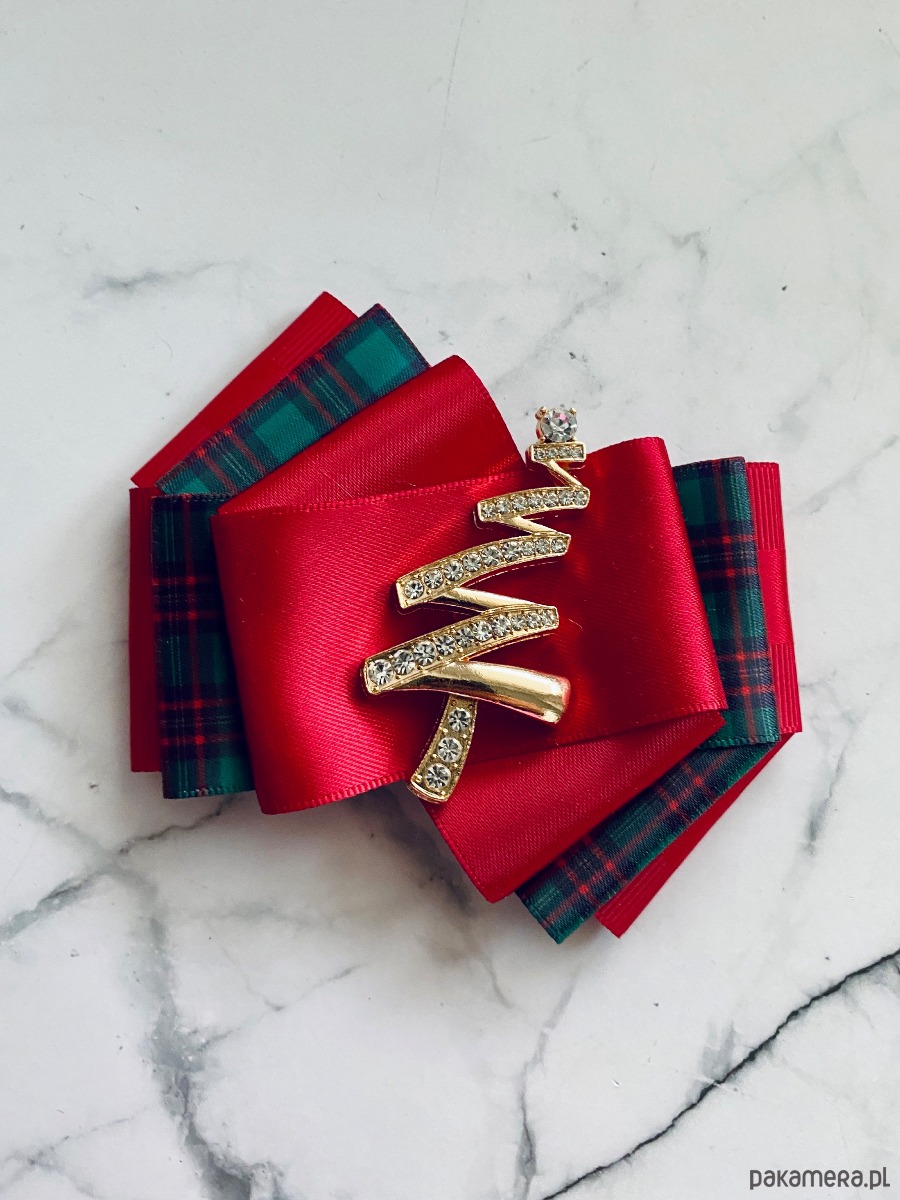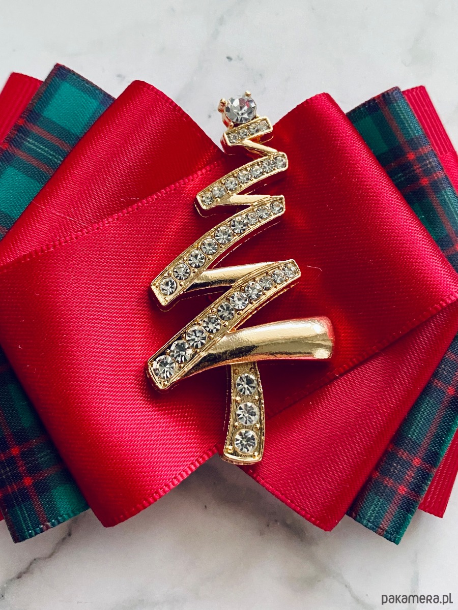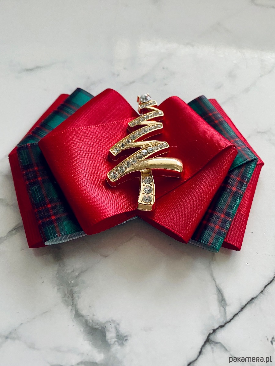 Broszka wykonana z wysokiej jakości taśm i dodatków.