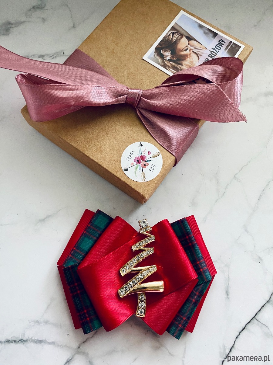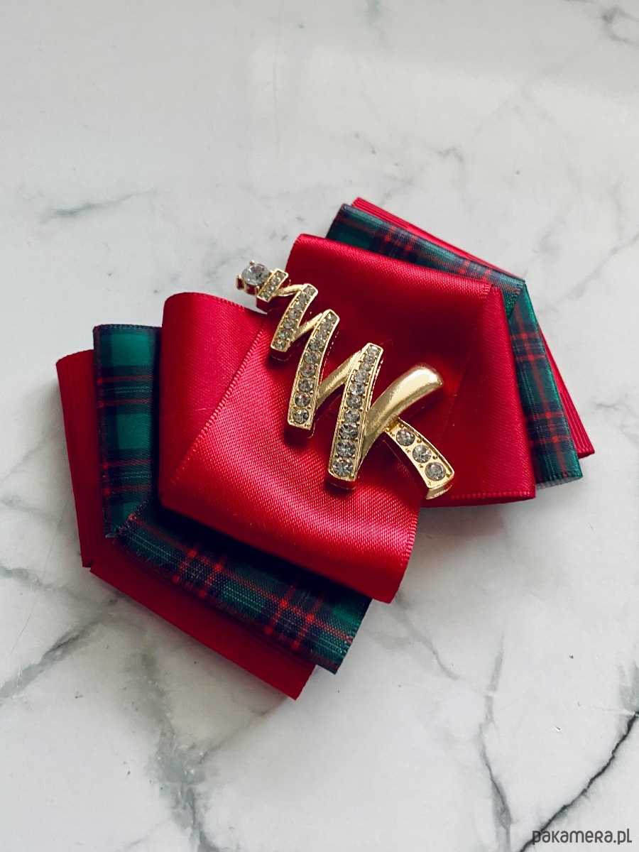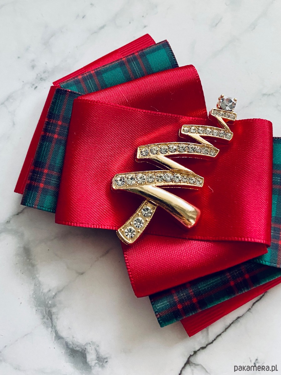 Broszka wykonana z wysokiej jakości taśm i dodatków.