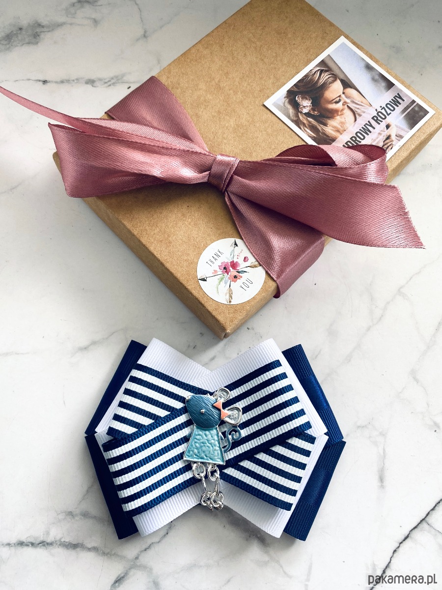 Broszka wykonana z wysokiej jakości taśm i dodatków.
