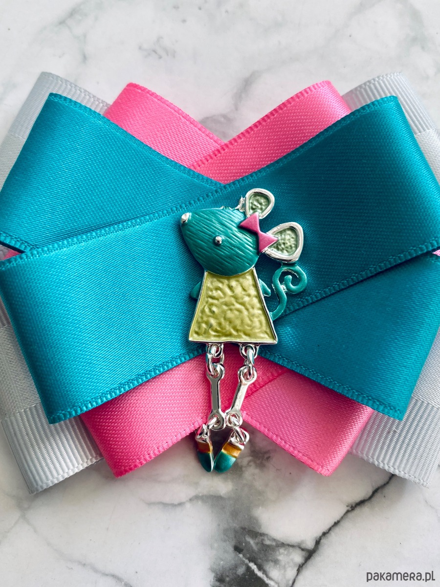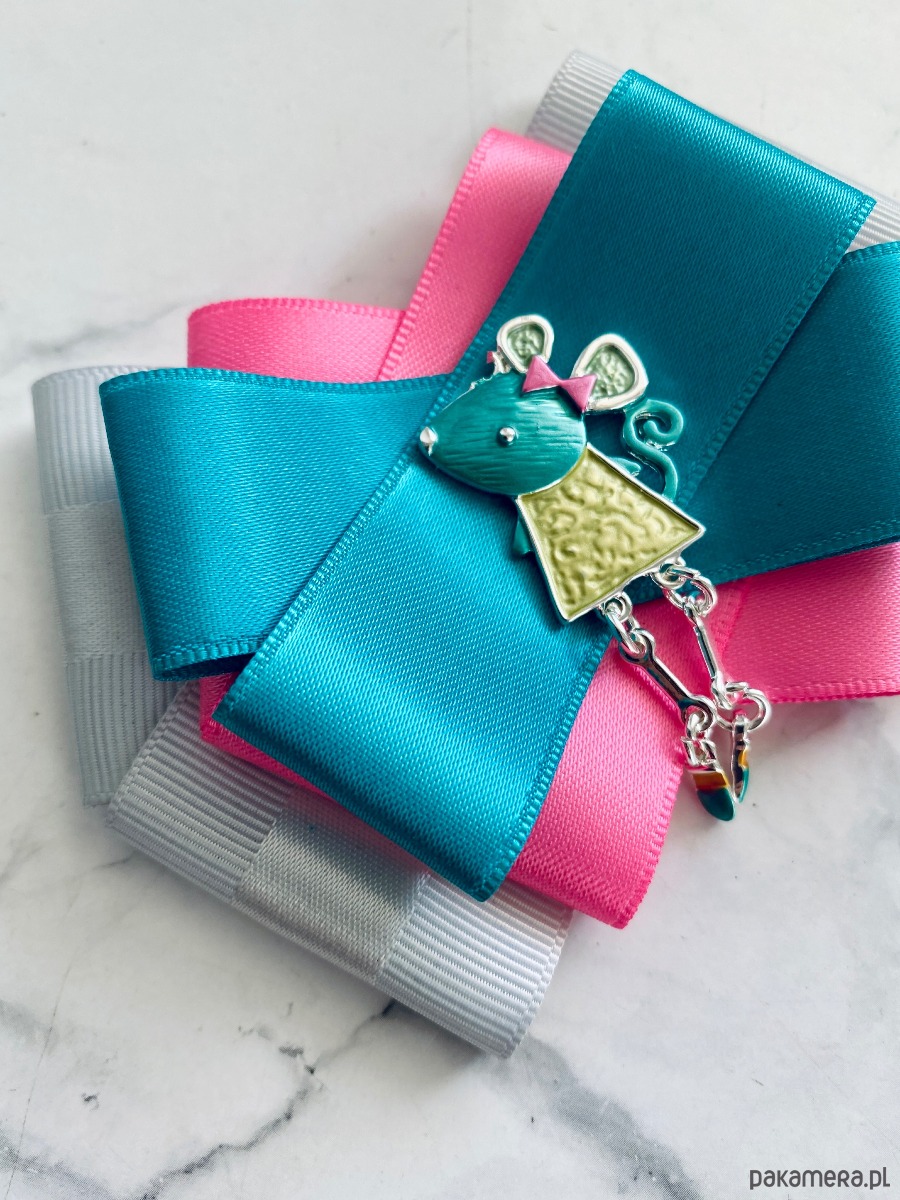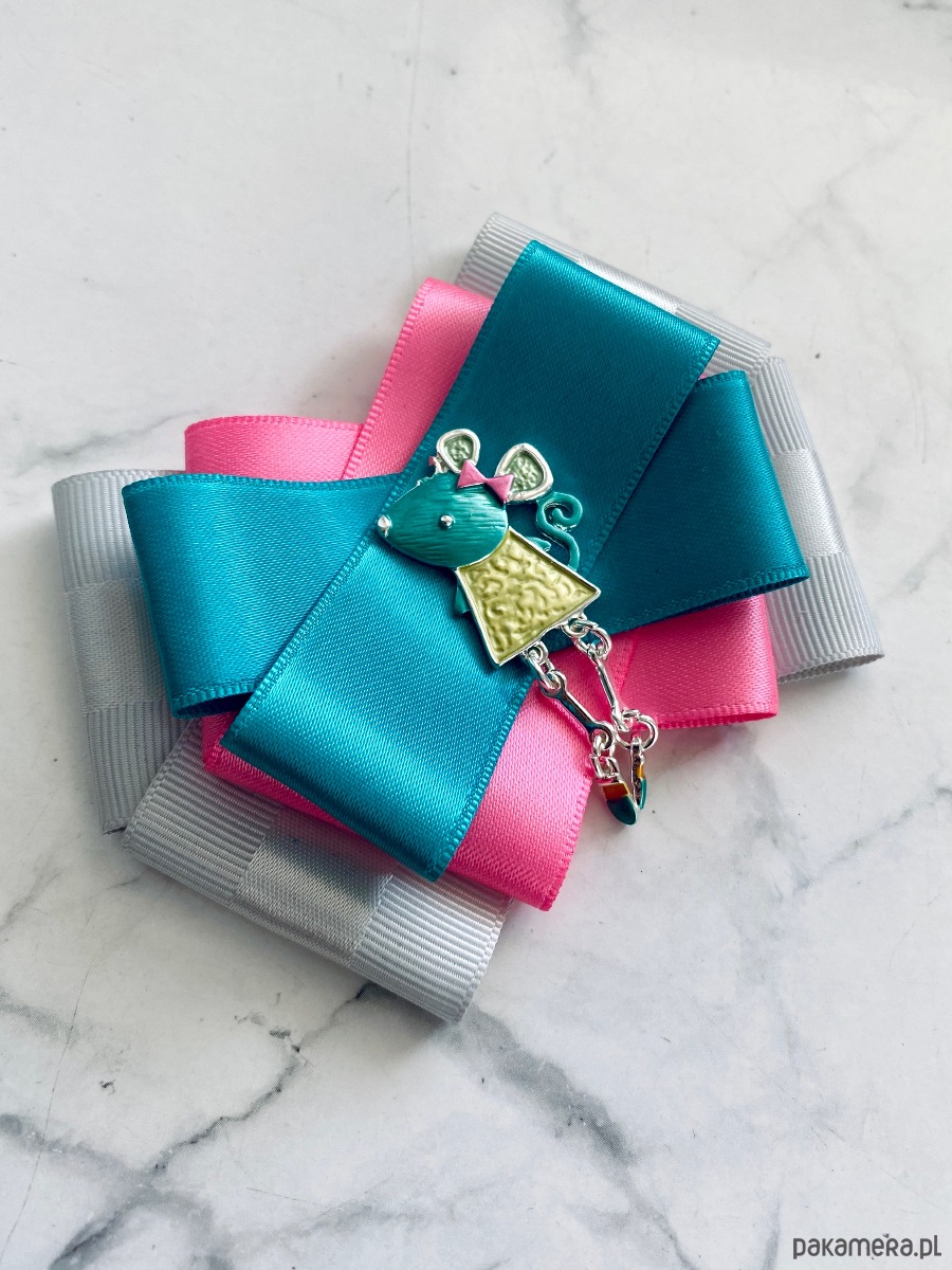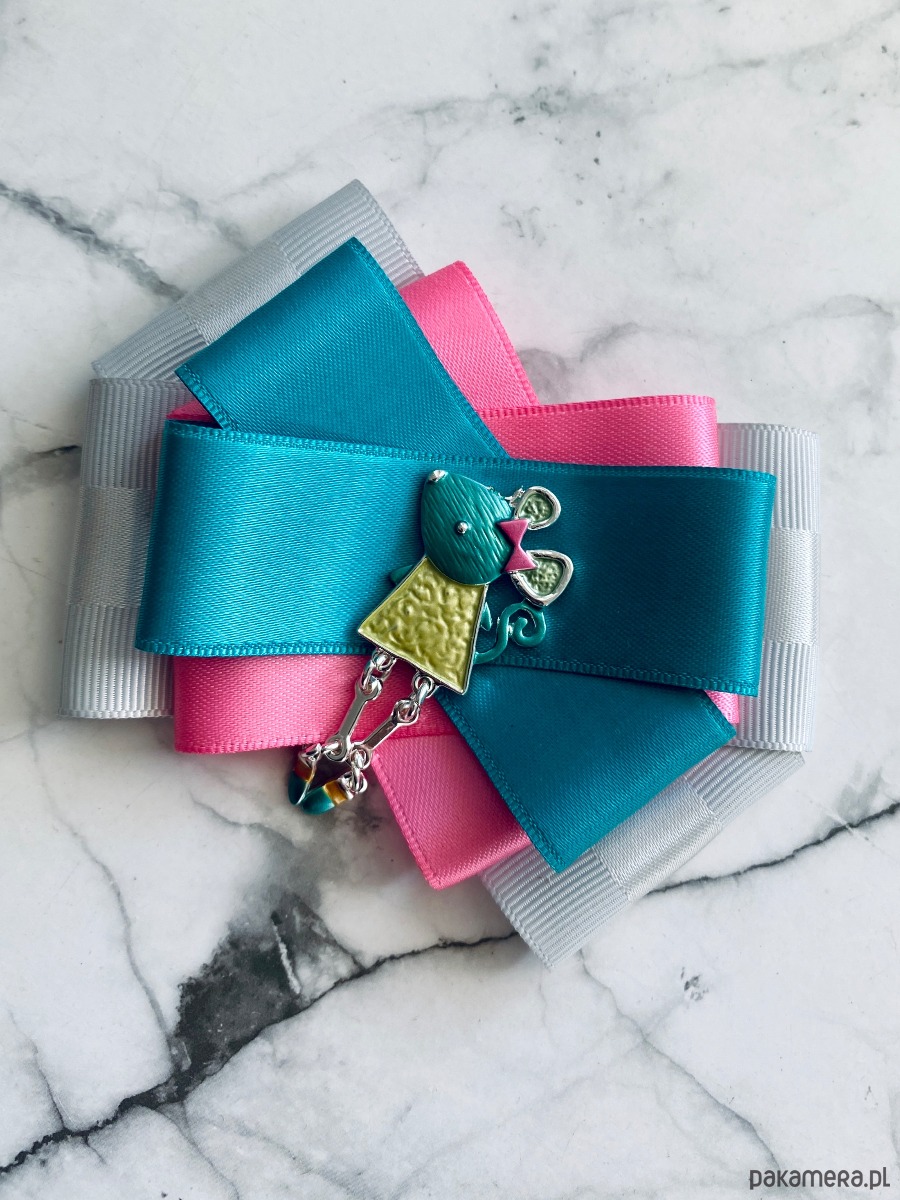 Broszka wykonana z wysokiej jakości taśm i dodatków.