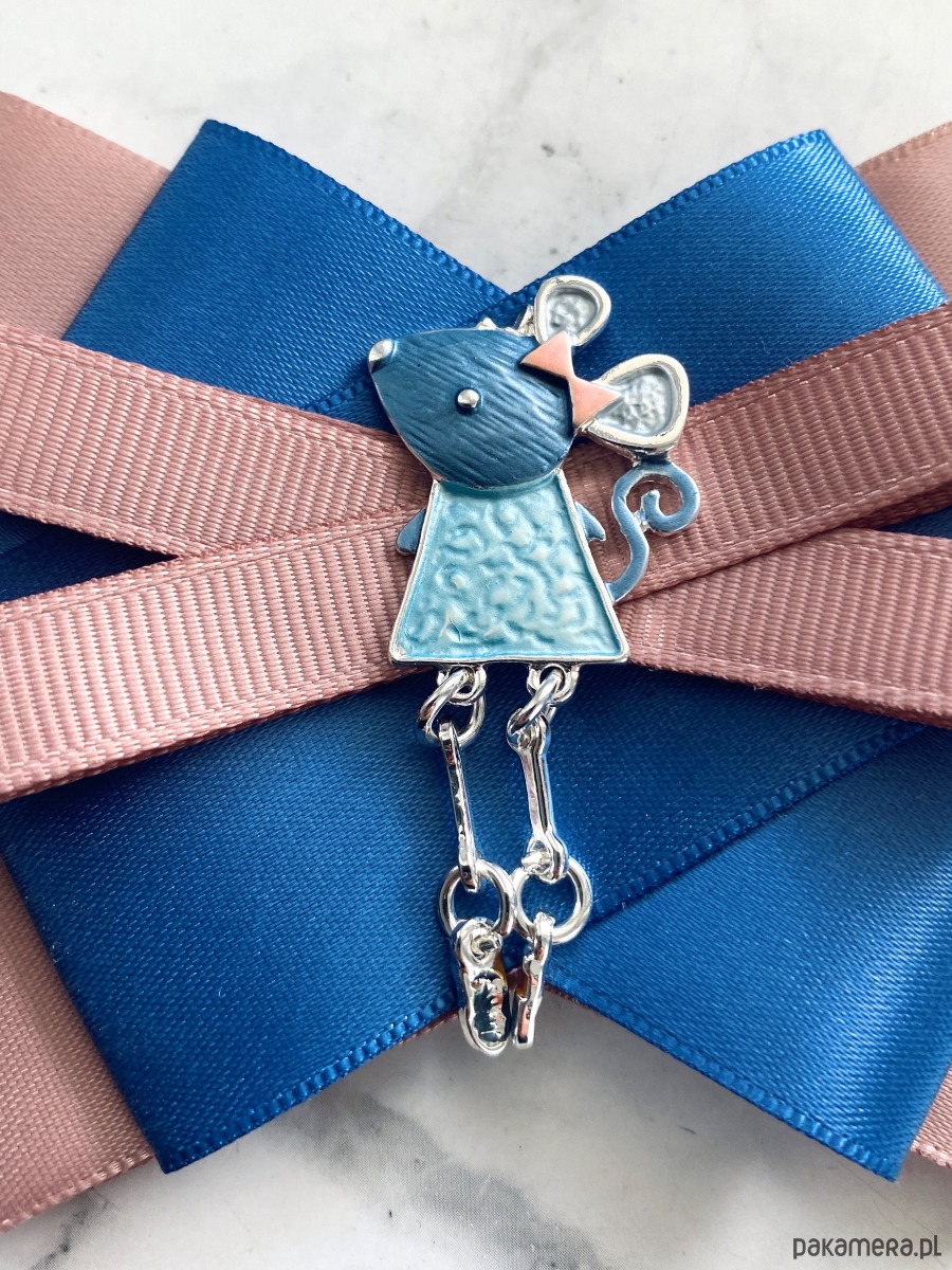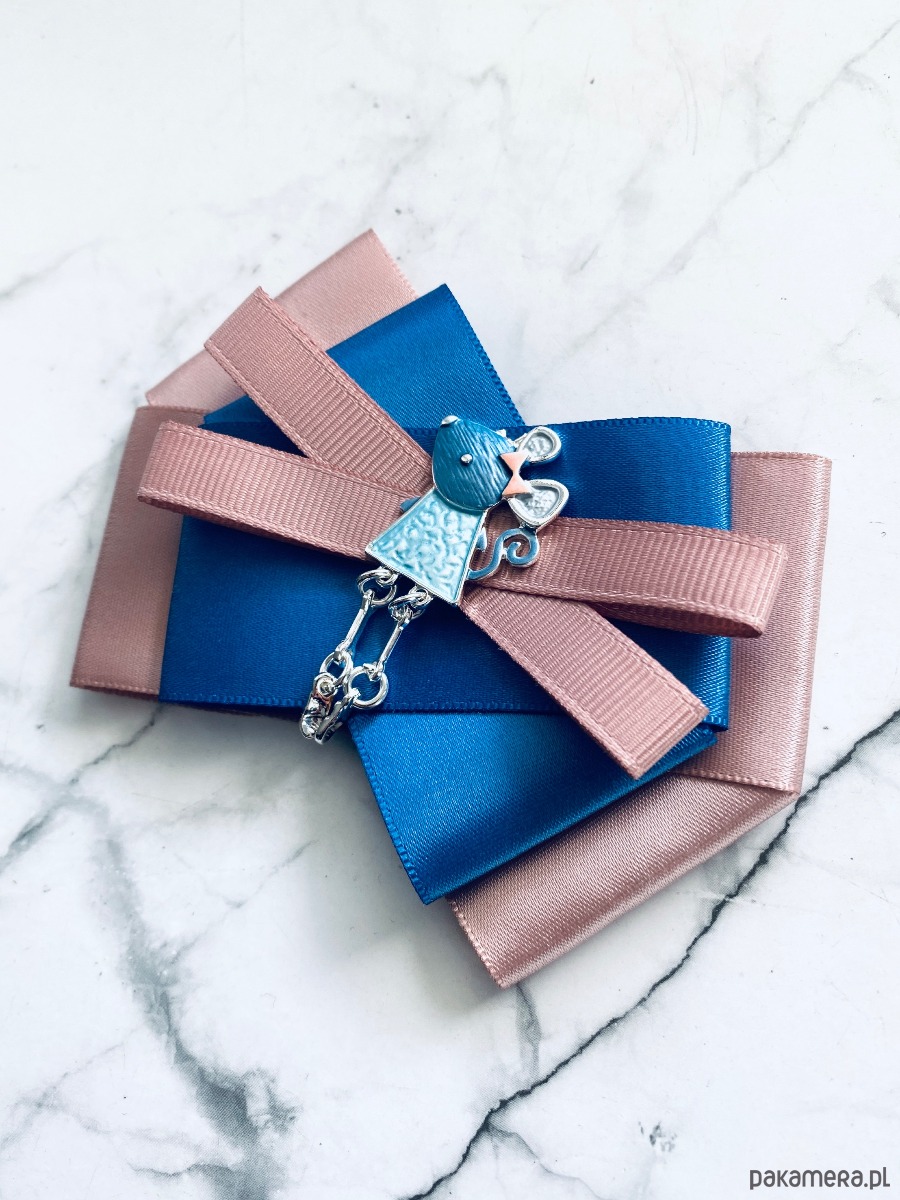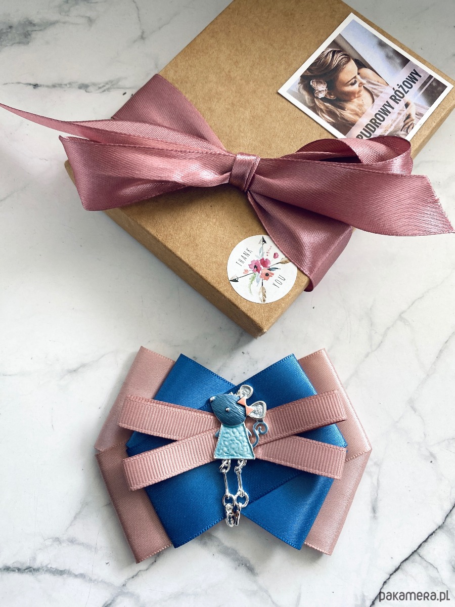 Broszka wykonana z wysokiej jakości taśm i dodatków.