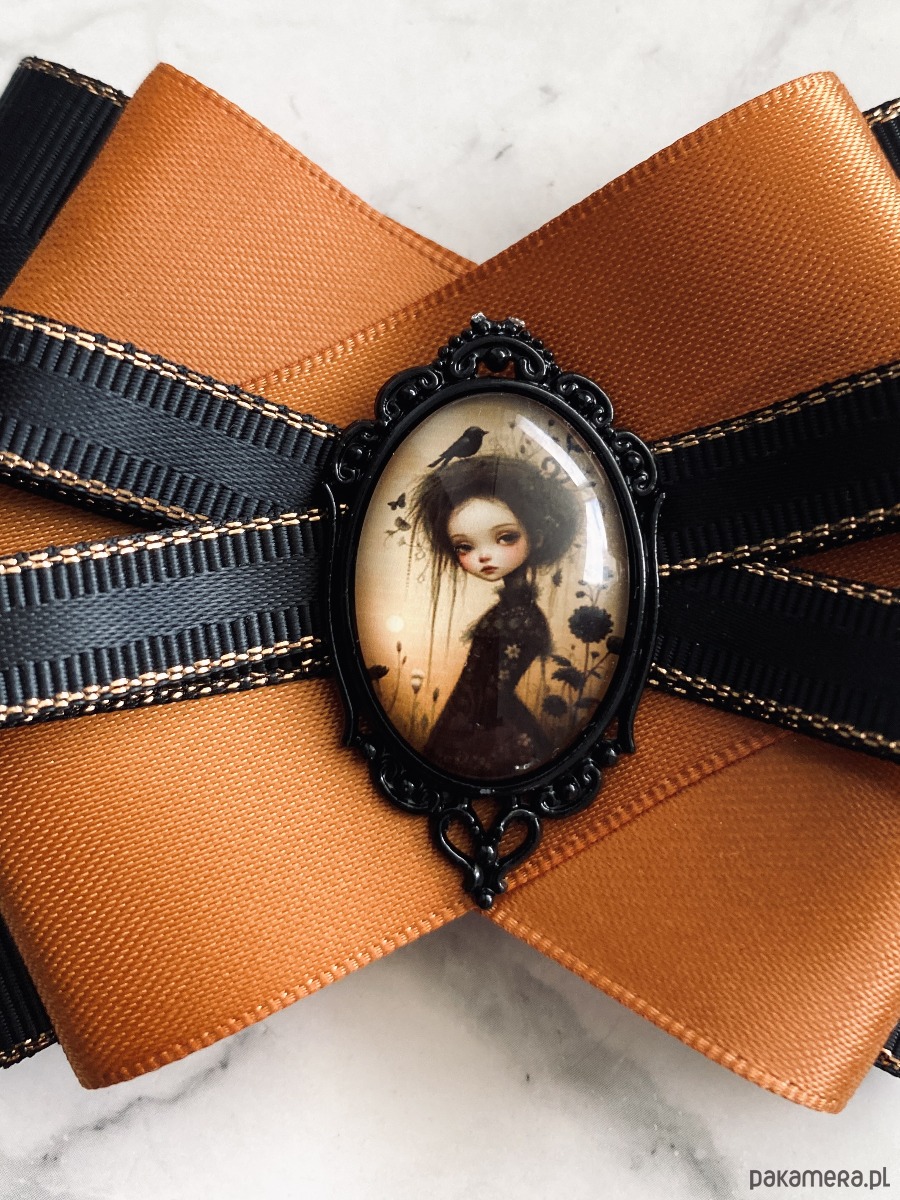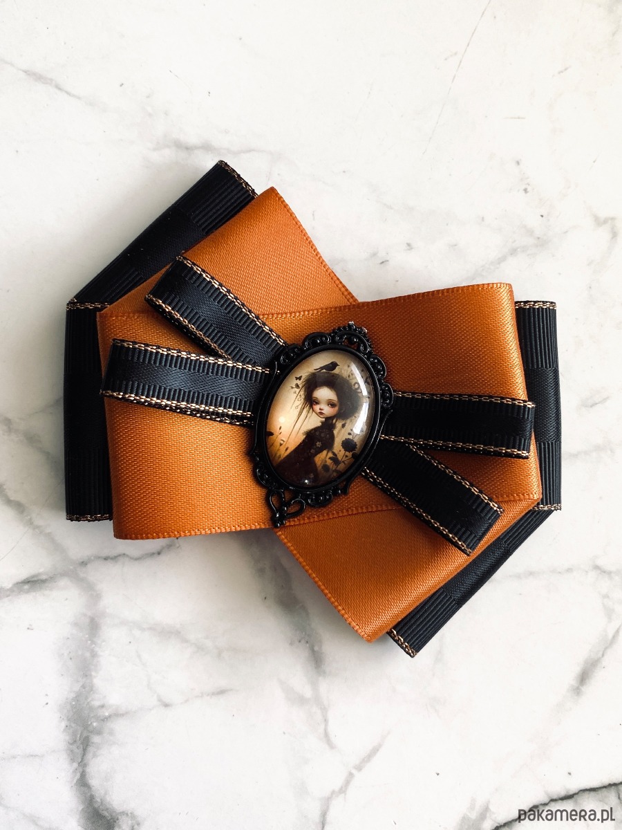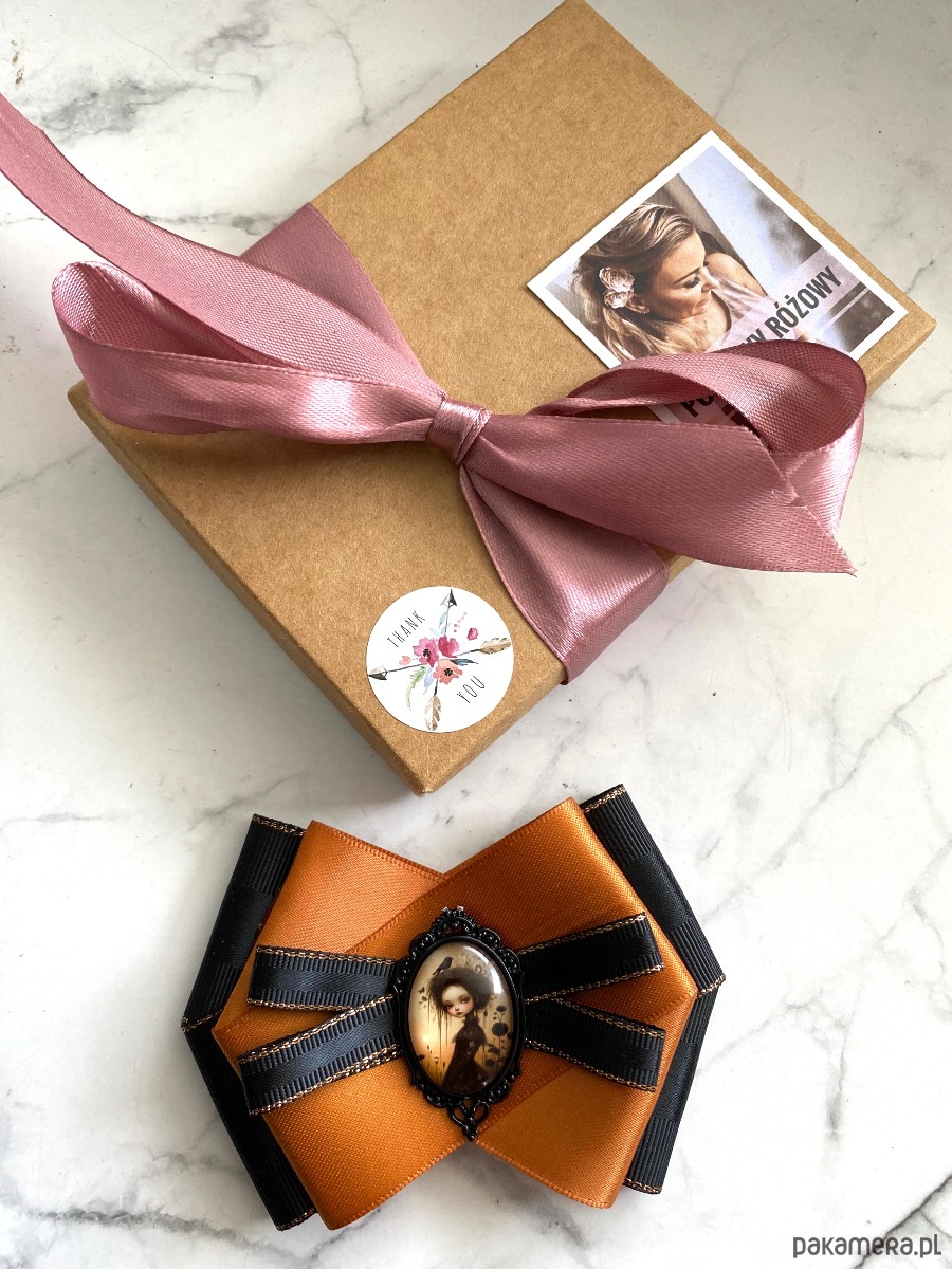 Broszka wykonana z wysokiej jakości taśm i dodatków.
