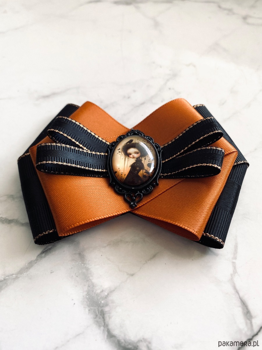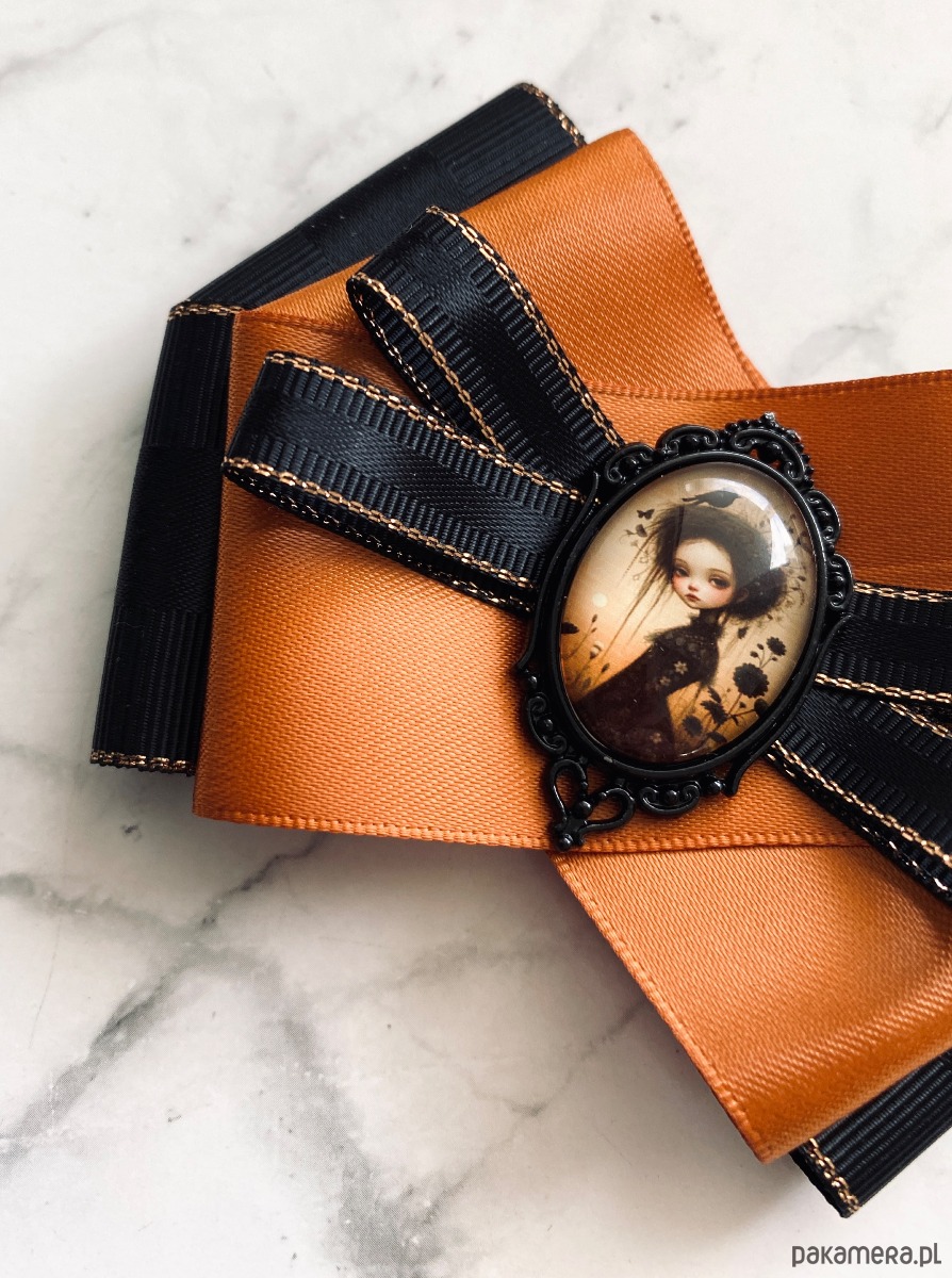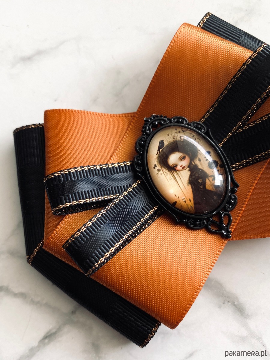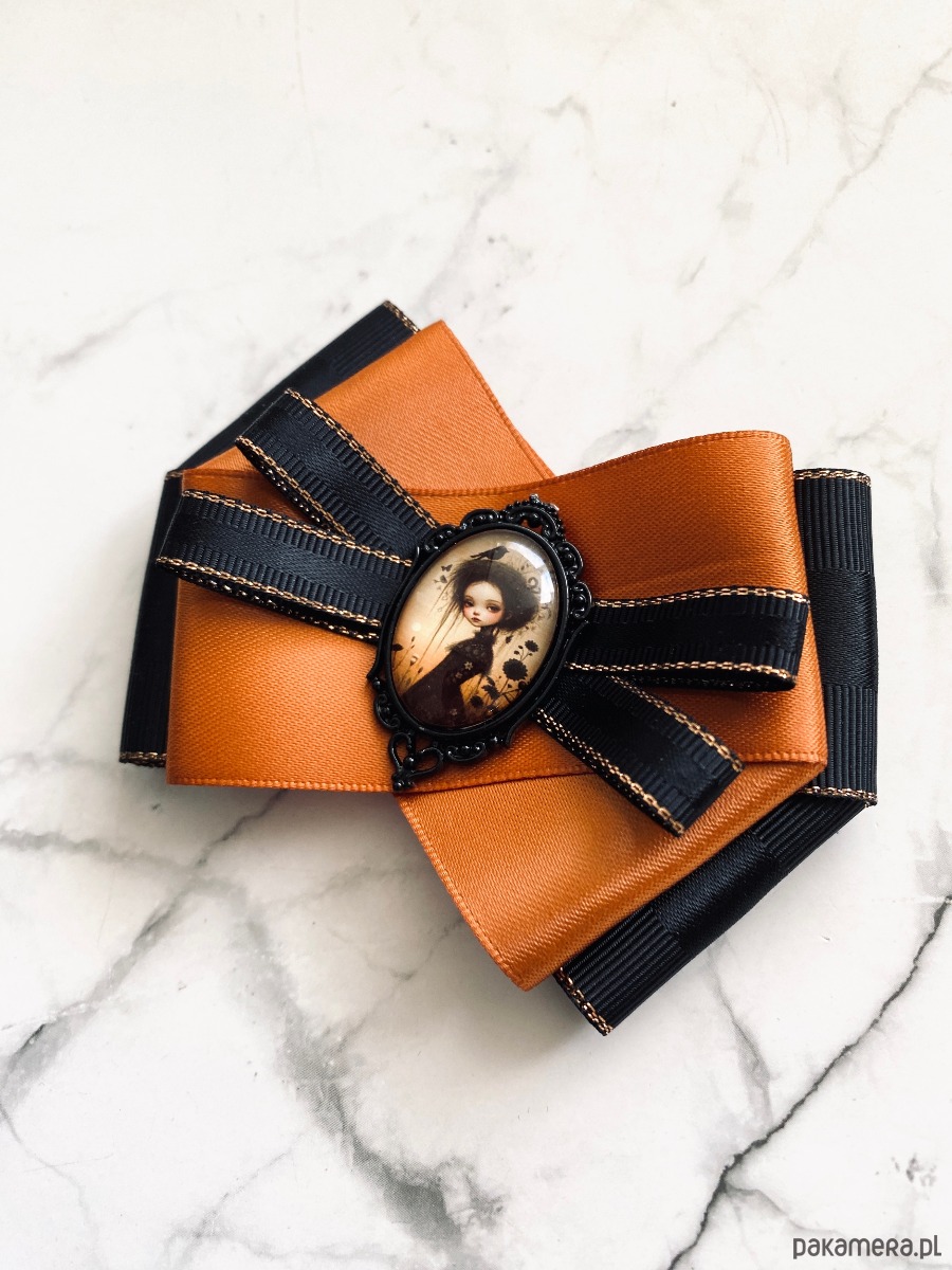 Broszka wykonana z wysokiej jakości taśm i dodatków.