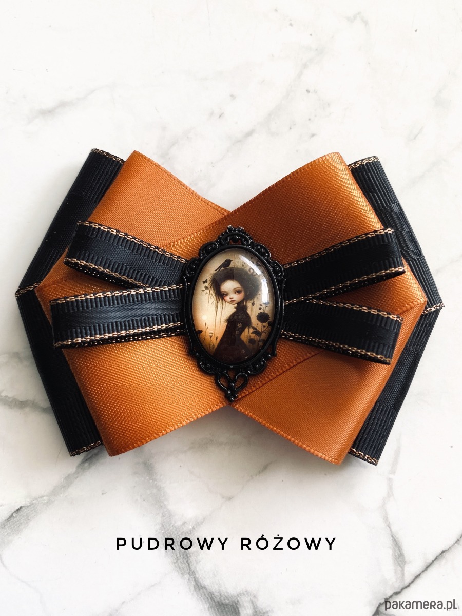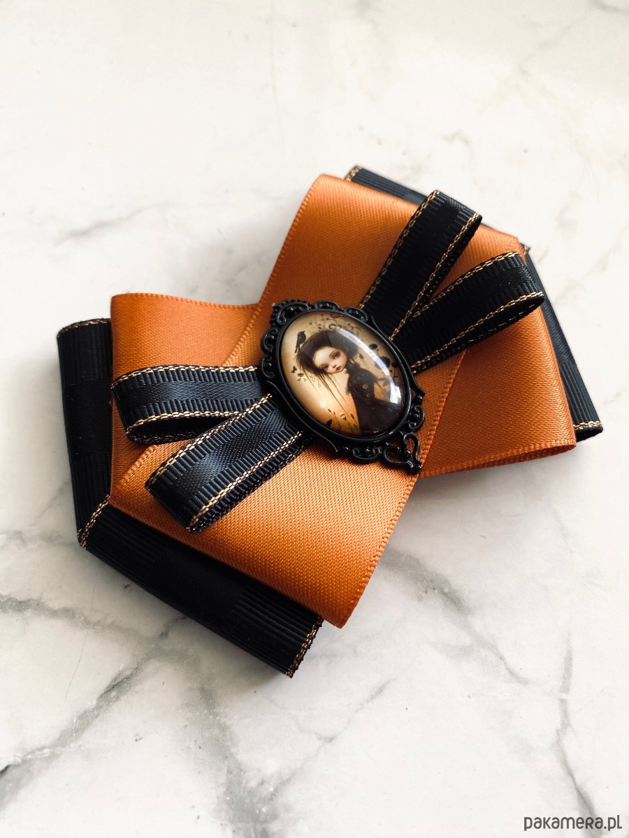 Broszka wykonana z wysokiej jakości taśm i dodatków.
