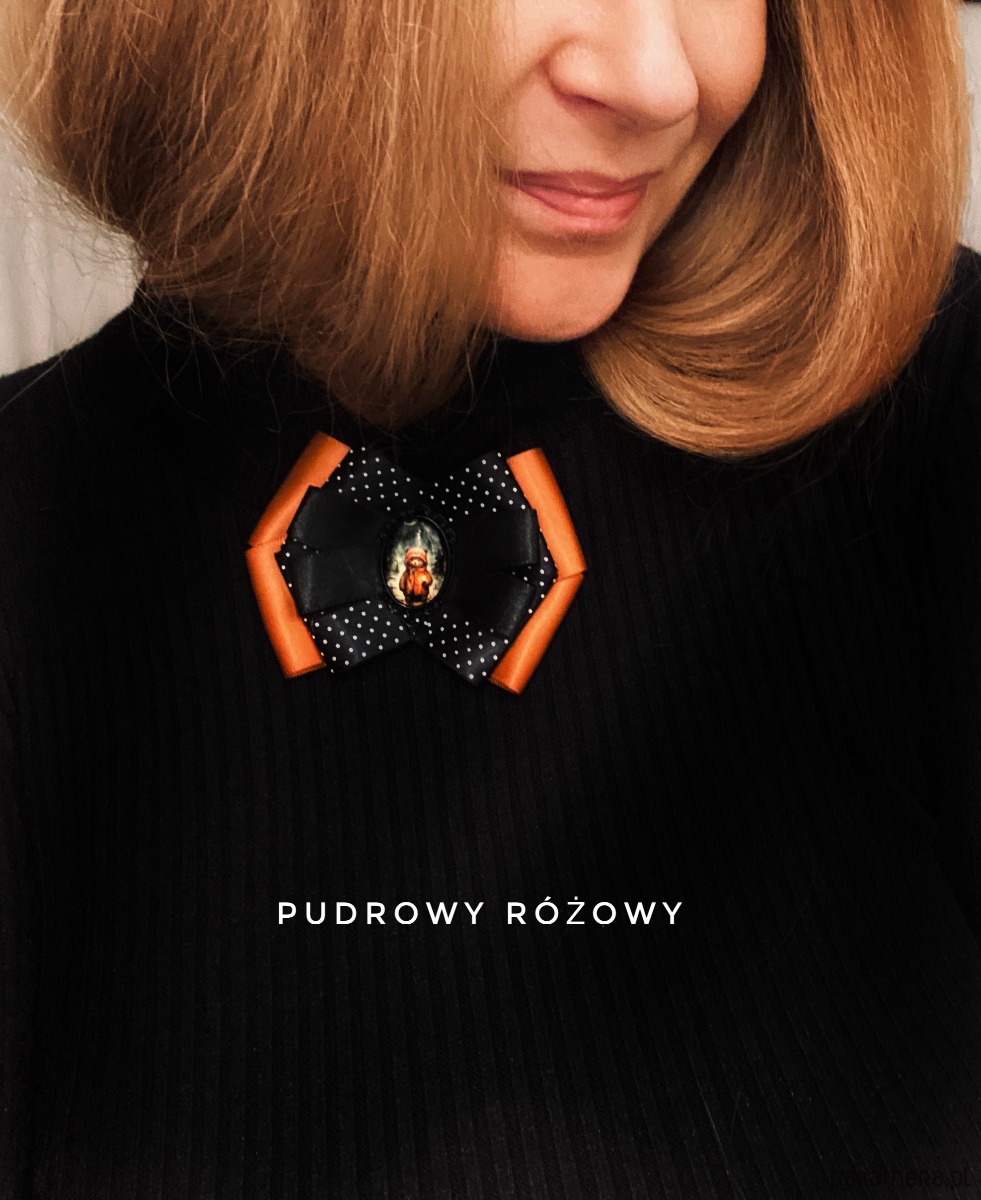 Broszka wykonana z wysokiej jakości taśm i dodatków.