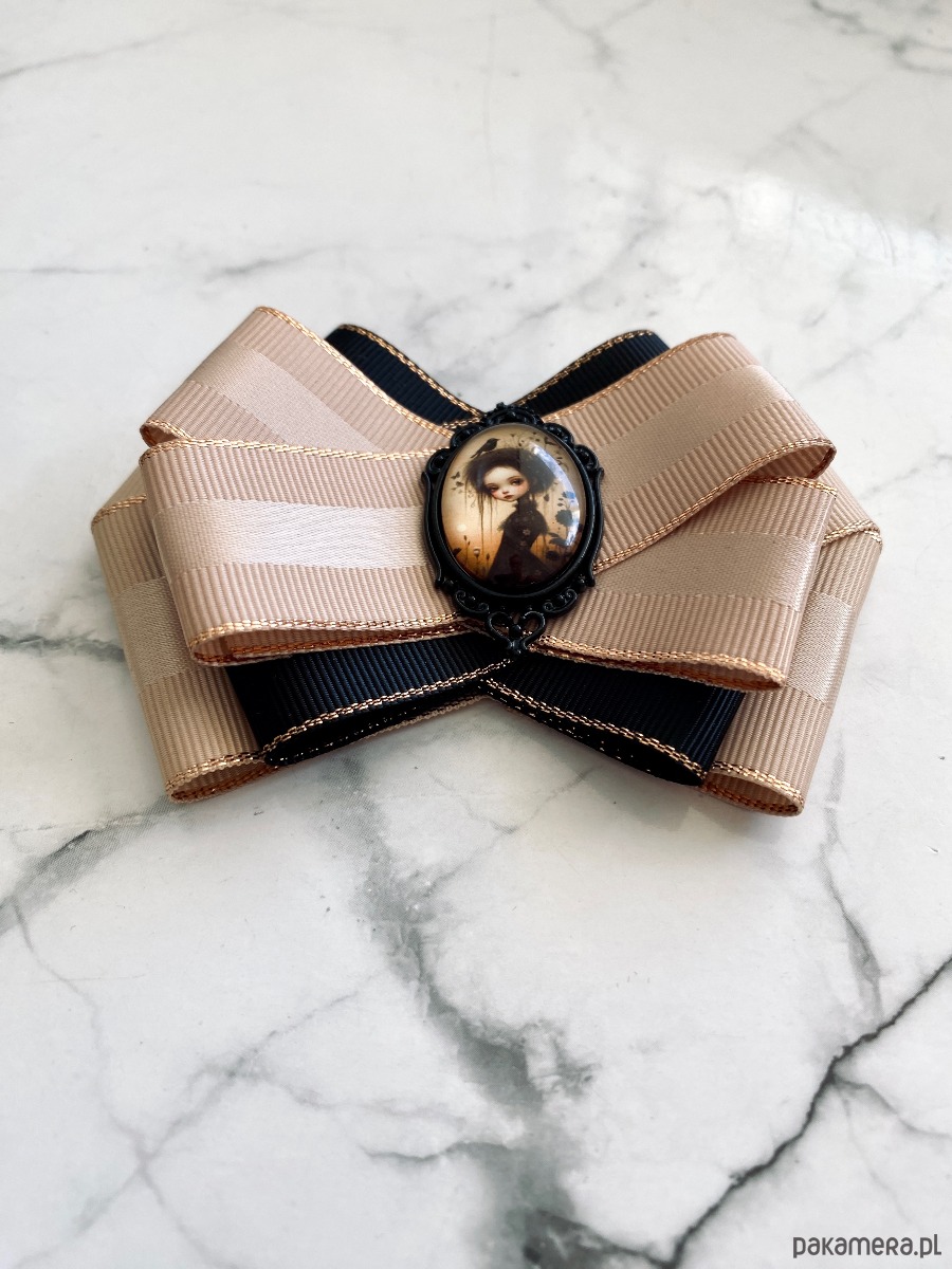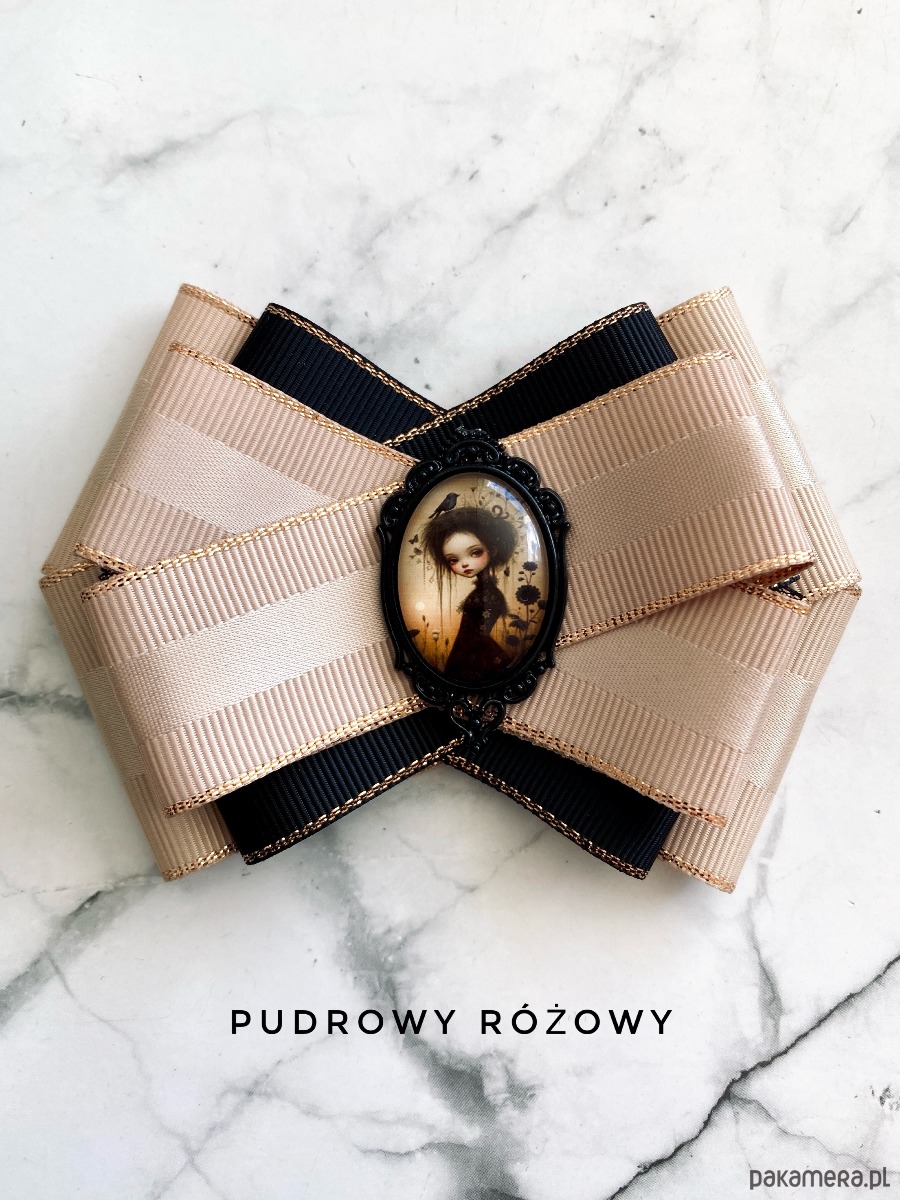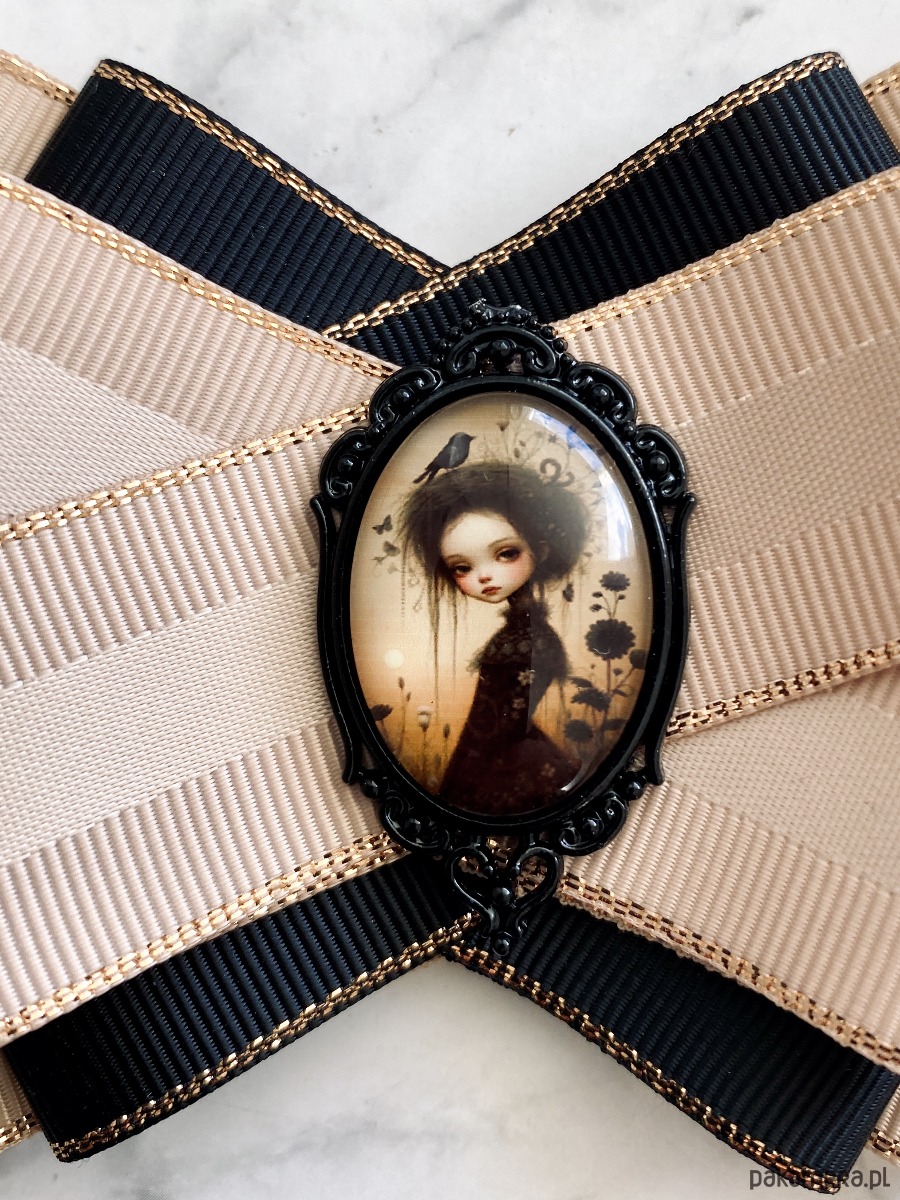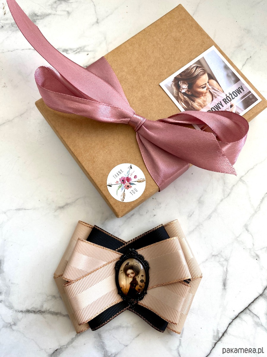 Broszka wykonana z wysokiej jakości taśm i dodatków.