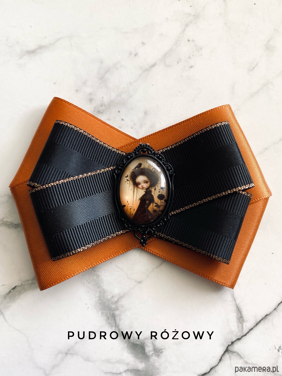 Broszka wykonana z wysokiej jakości taśm i dodatków.