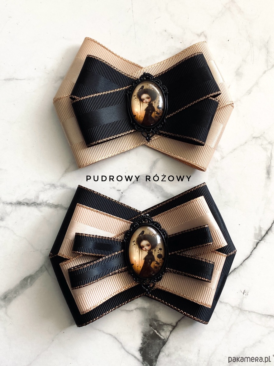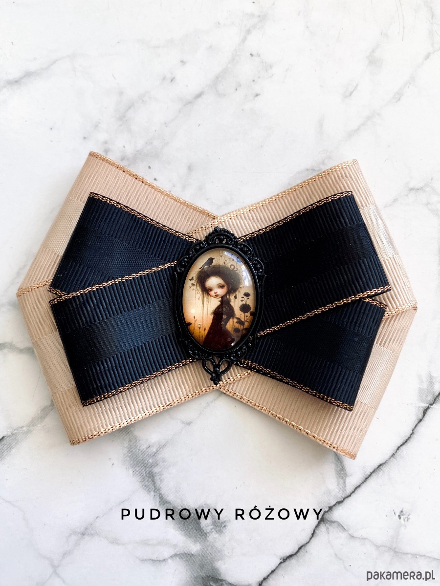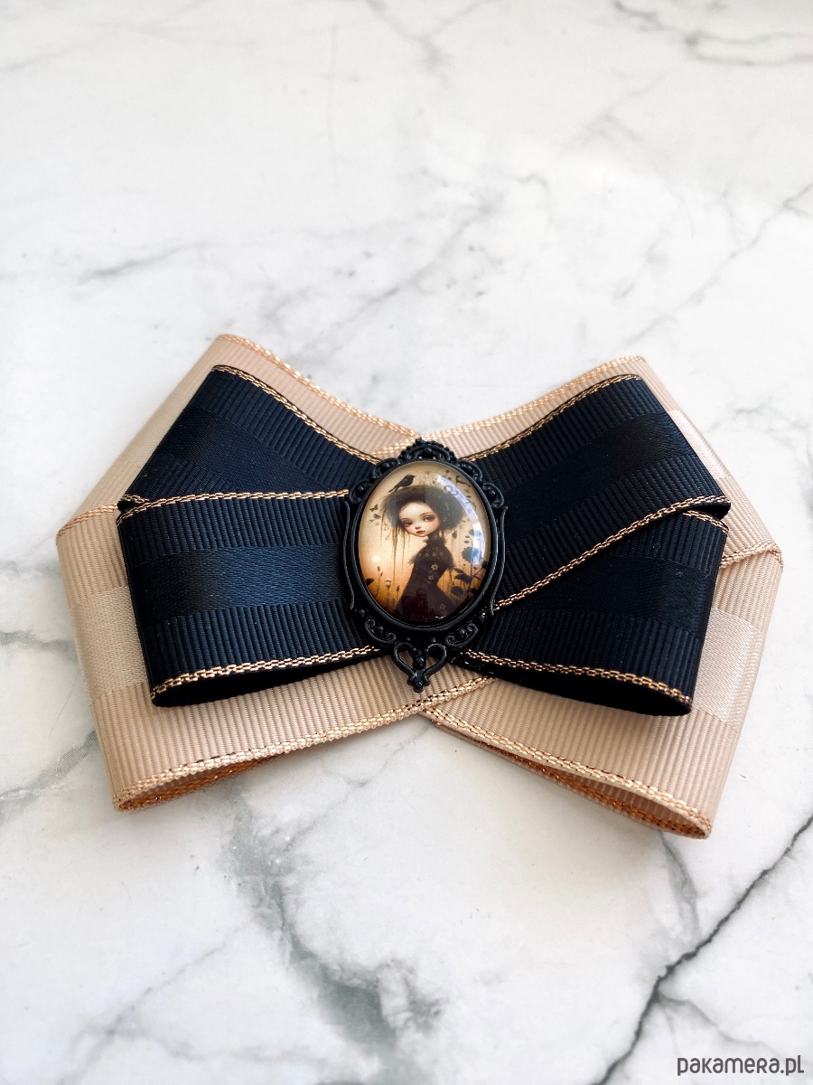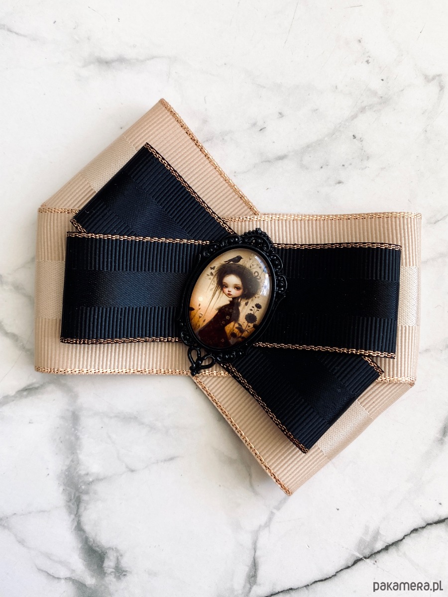 Broszka wykonana z wysokiej jakości taśm i dodatków.