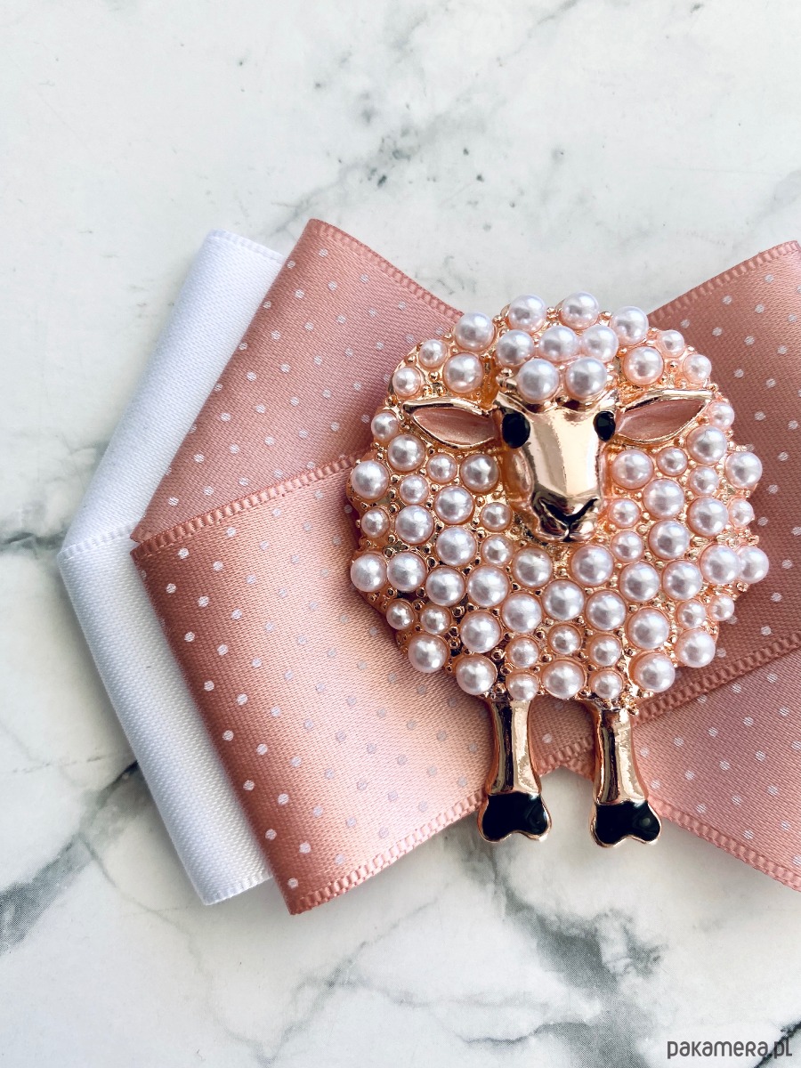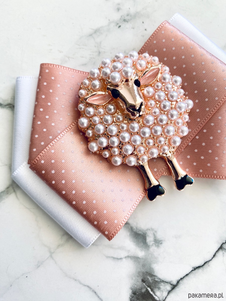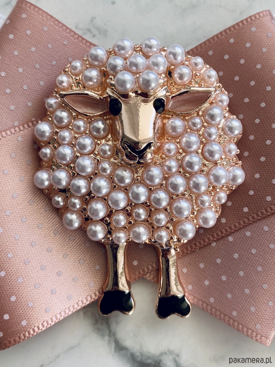 Niesamowita Brosza w pastelowych kolorach z cudną, bardzo efektowną Owieczka wykonaną z perełek.