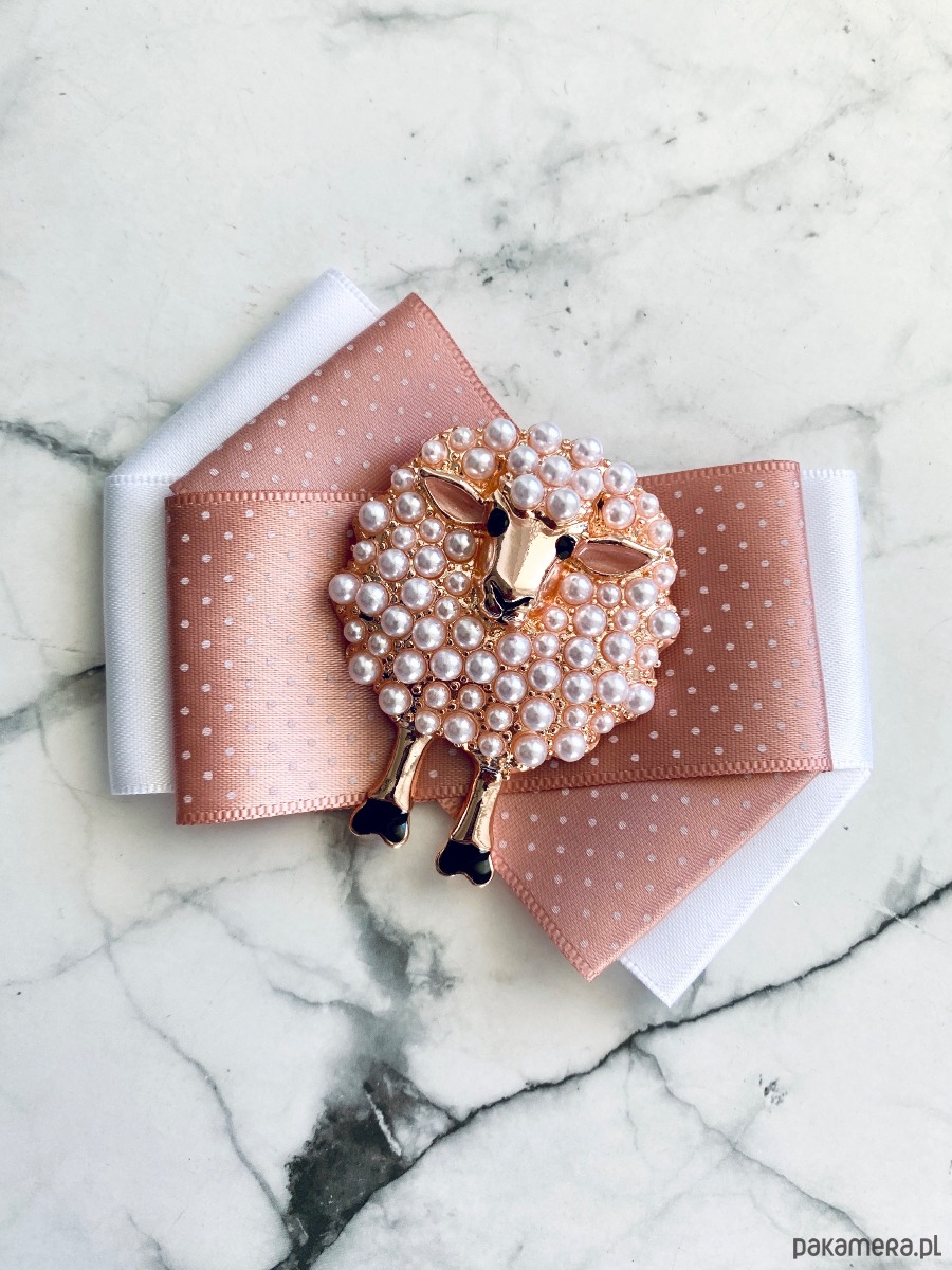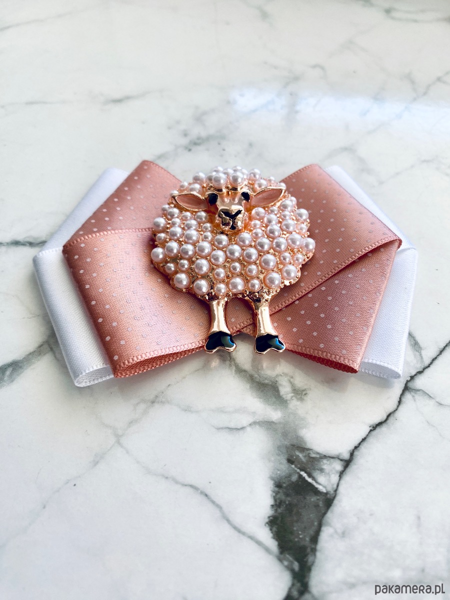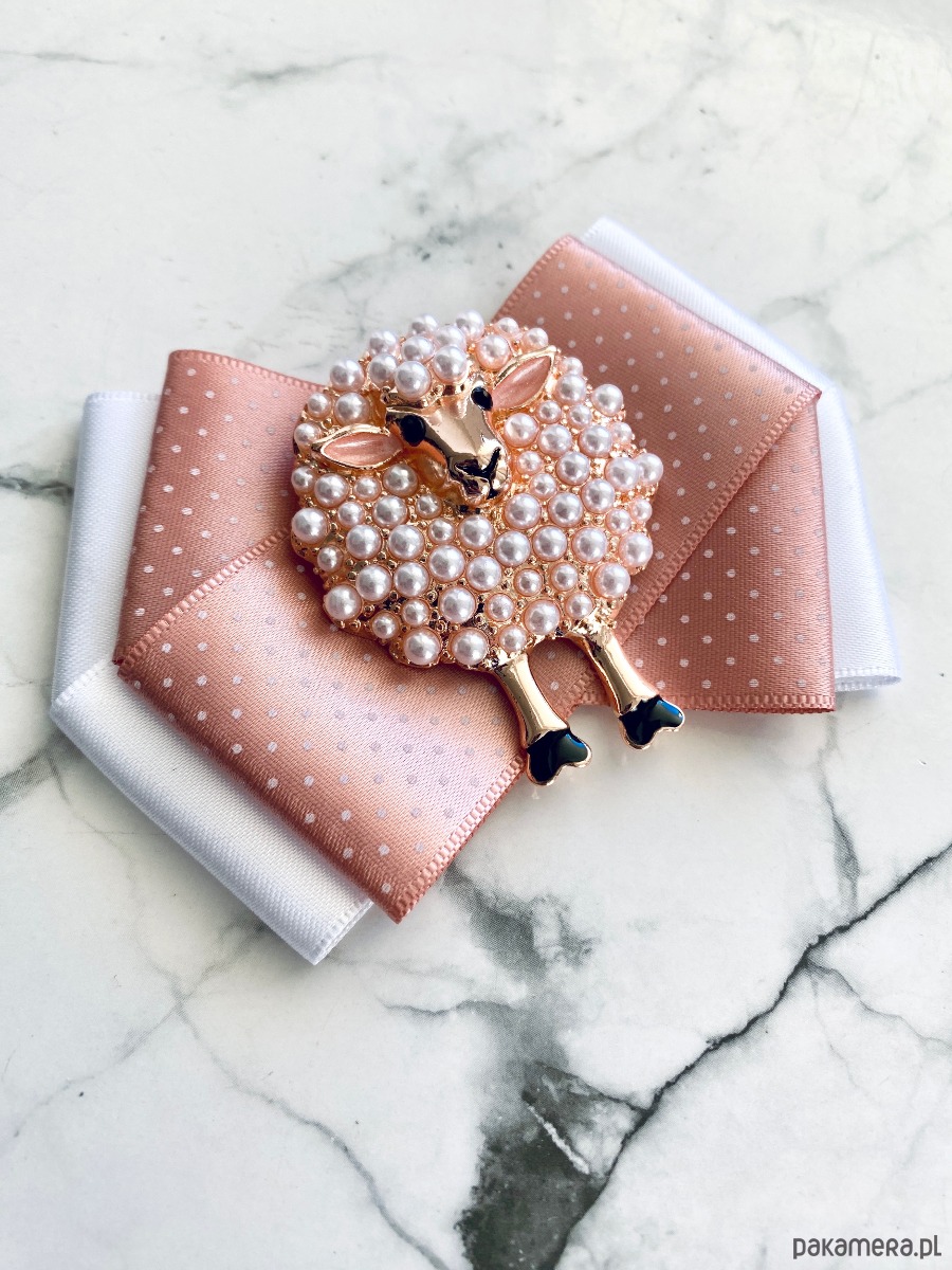 Niesamowita Brosza w pastelowych kolorach z cudną, bardzo efektowną Owieczka wykonaną z perełek.