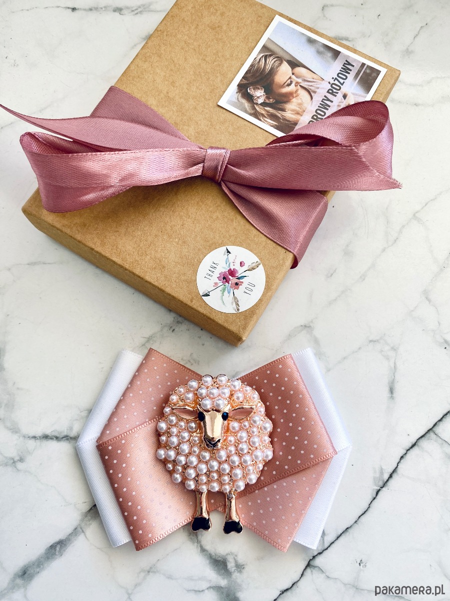 Broszka wykonana z wysokiej jakości taśm i dodatków.