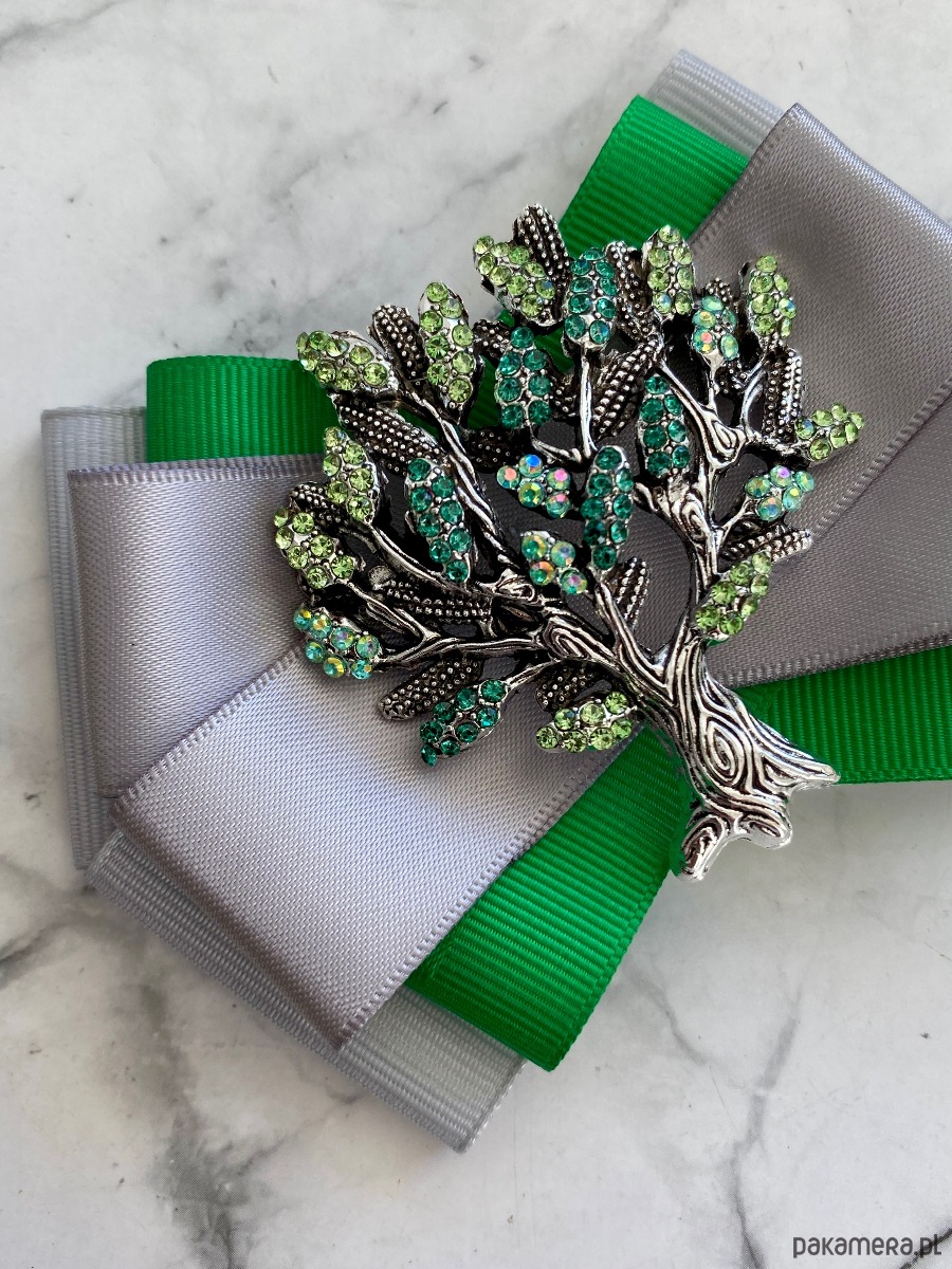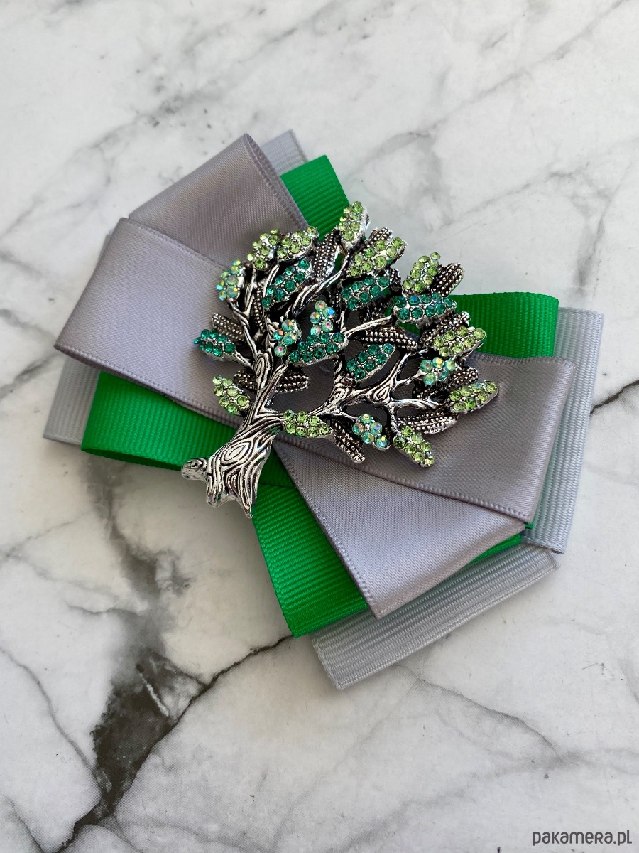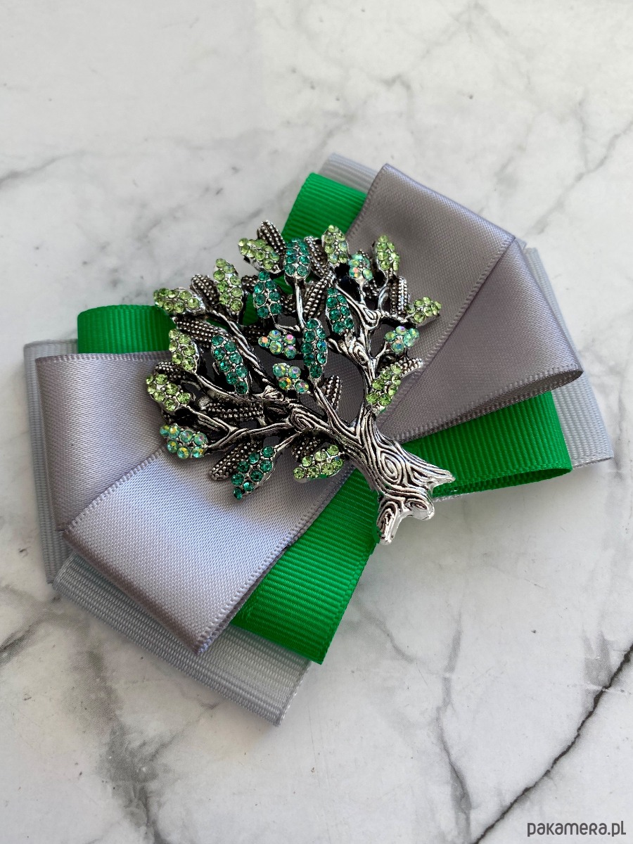 Broszka wykonana z wysokiej jakości taśm i dodatków.
