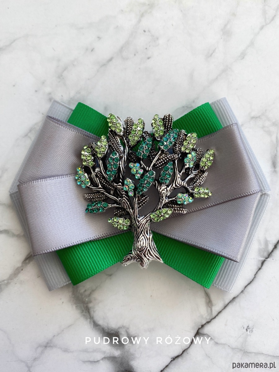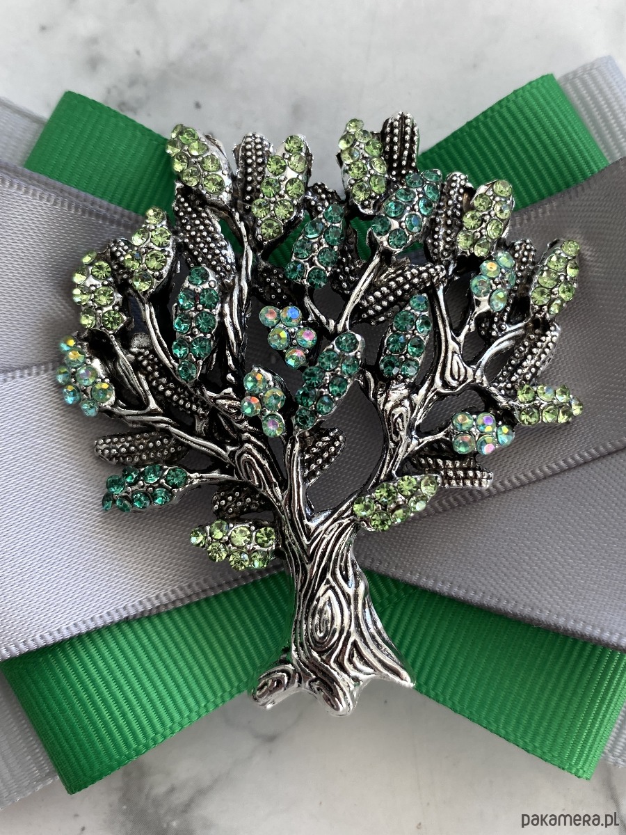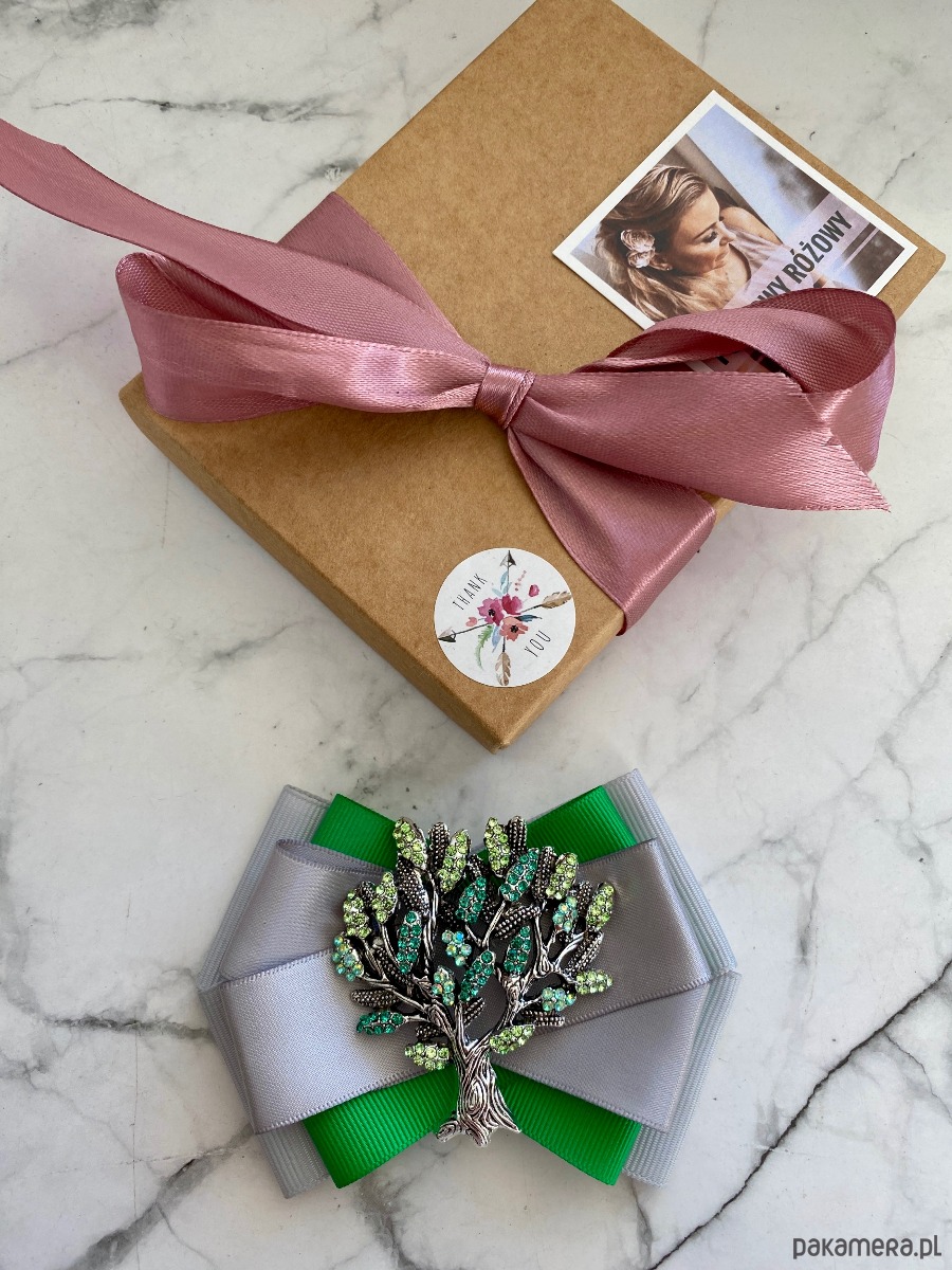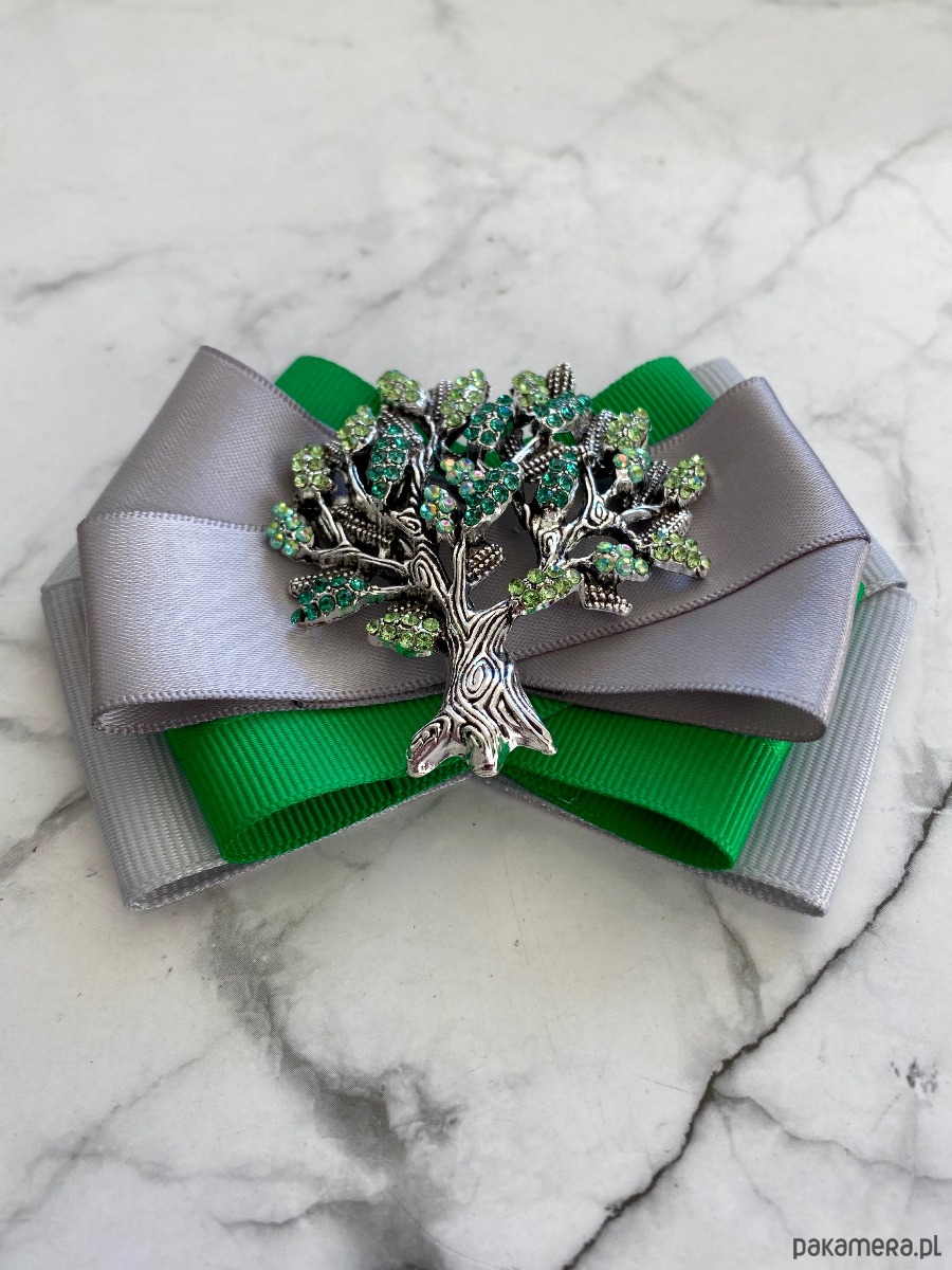 Broszka wykonana z wysokiej jakości taśm i dodatków.