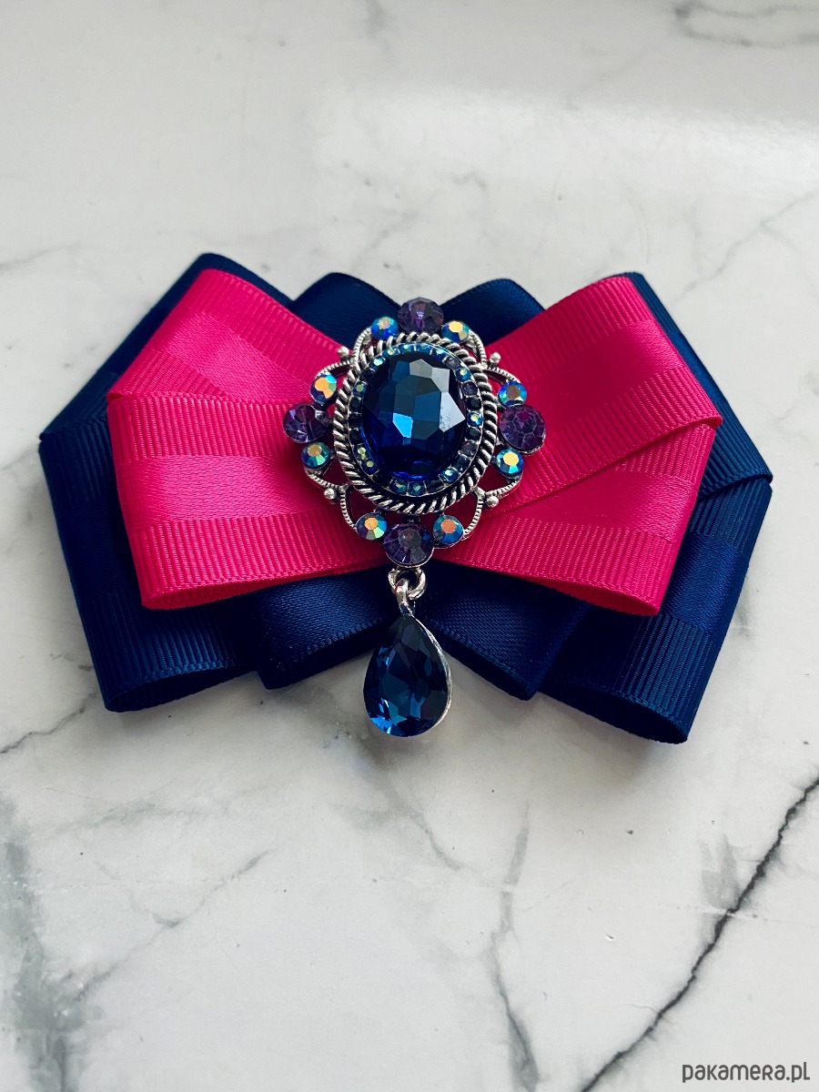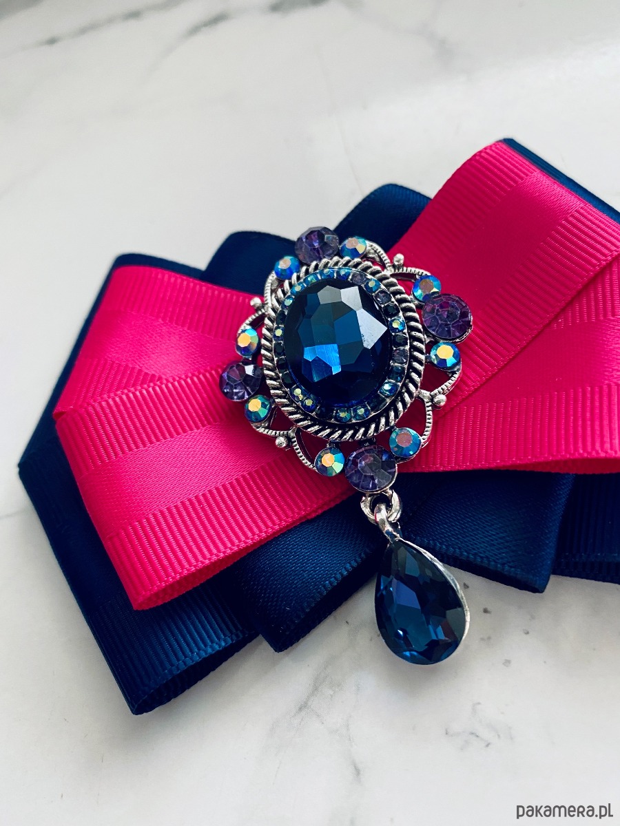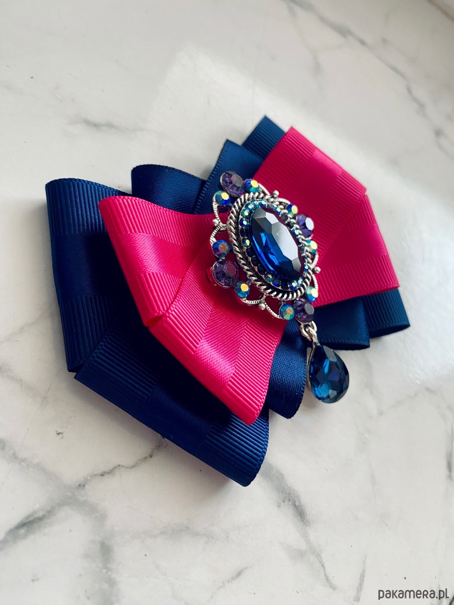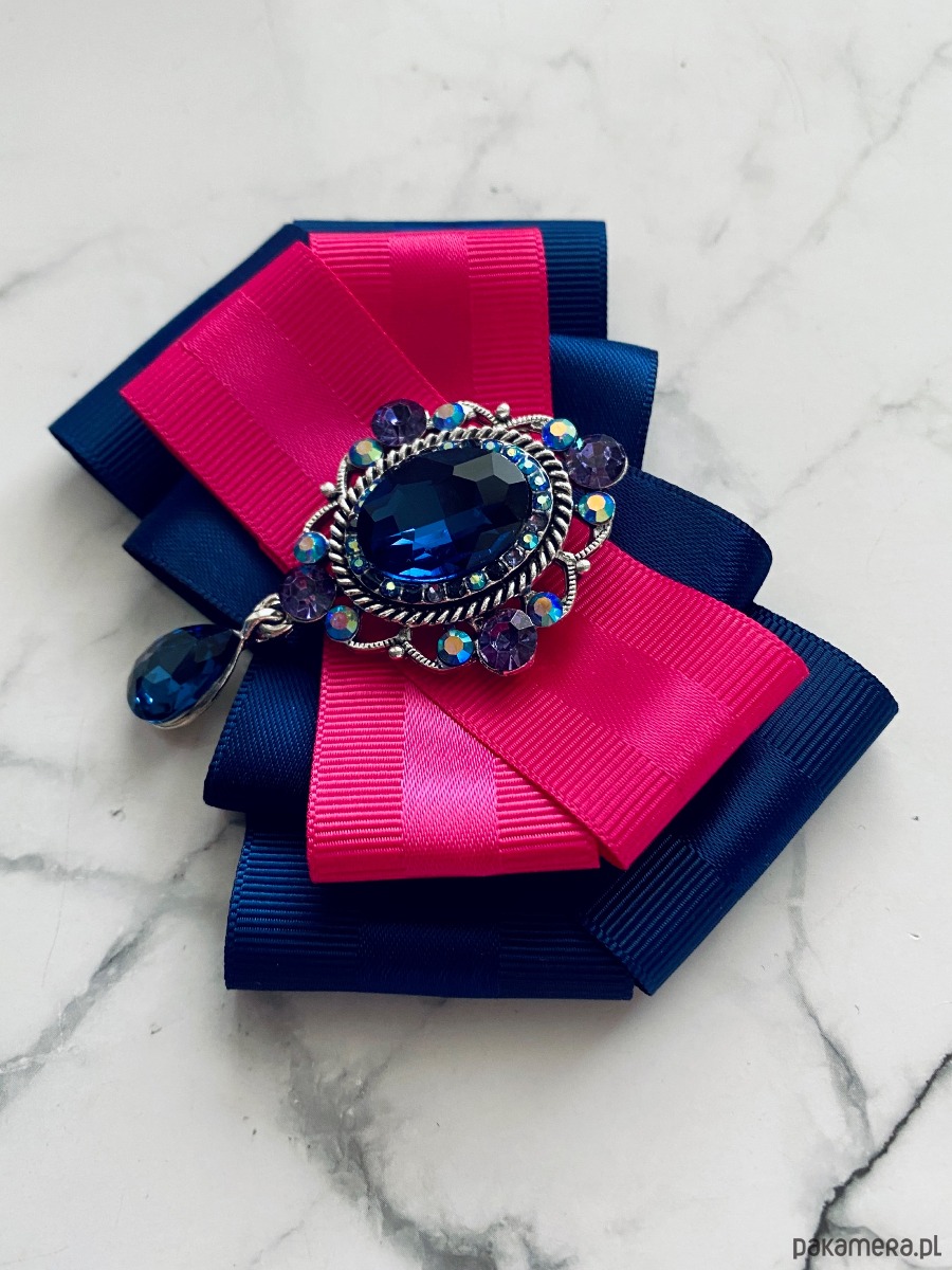 Broszka wykonana z wysokiej jakości taśm i dodatków.