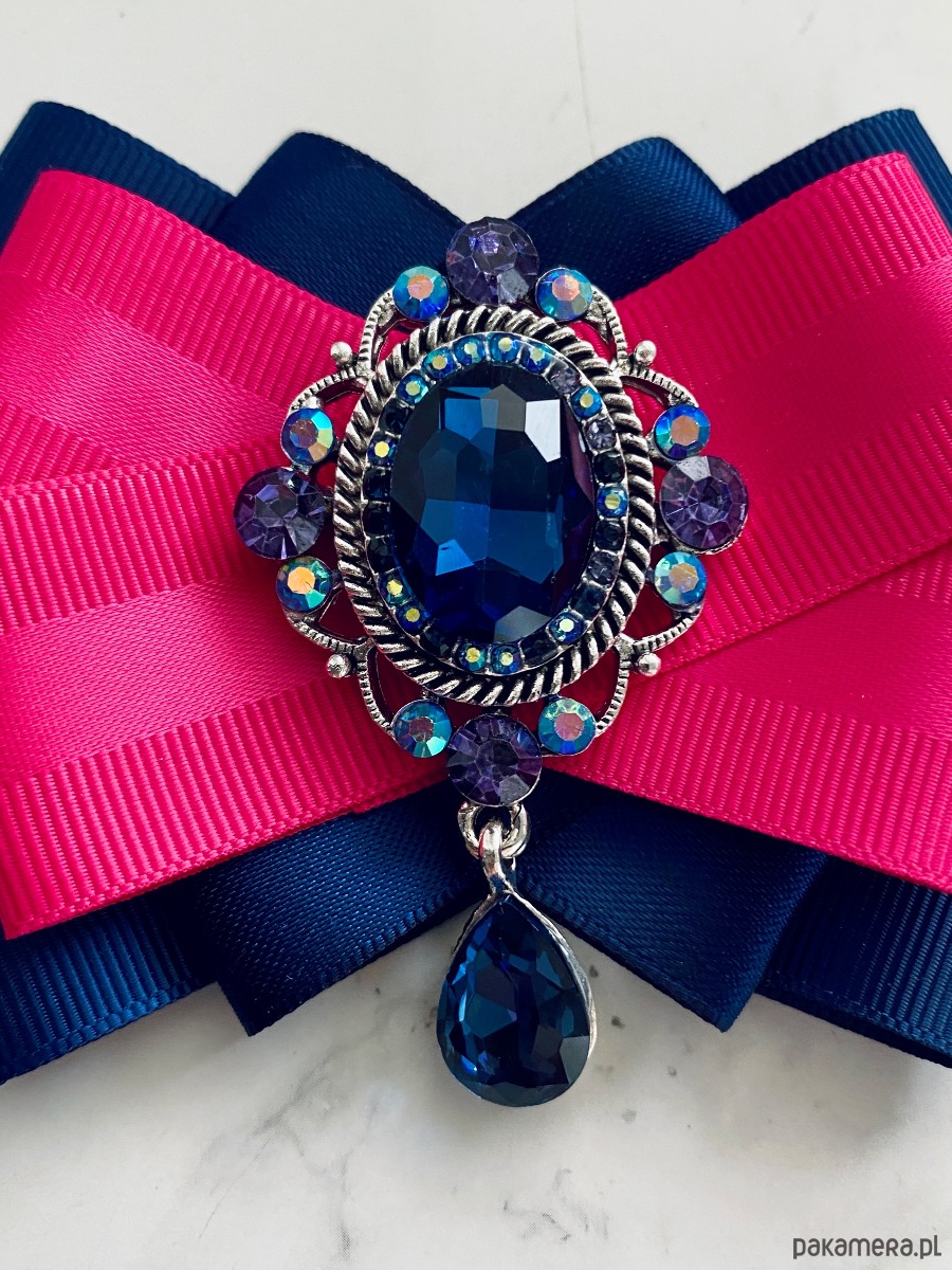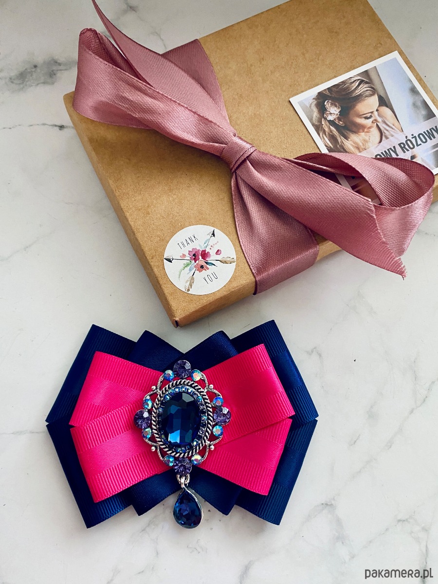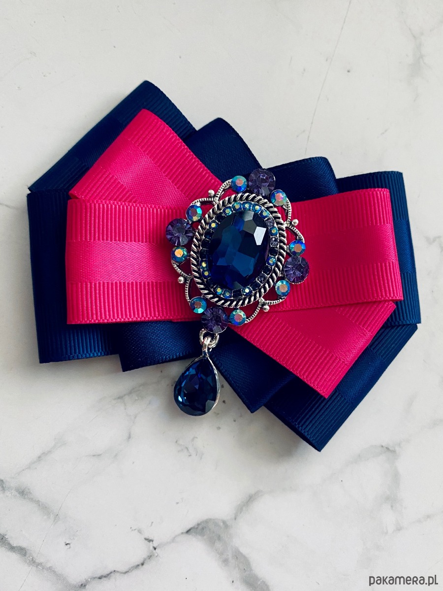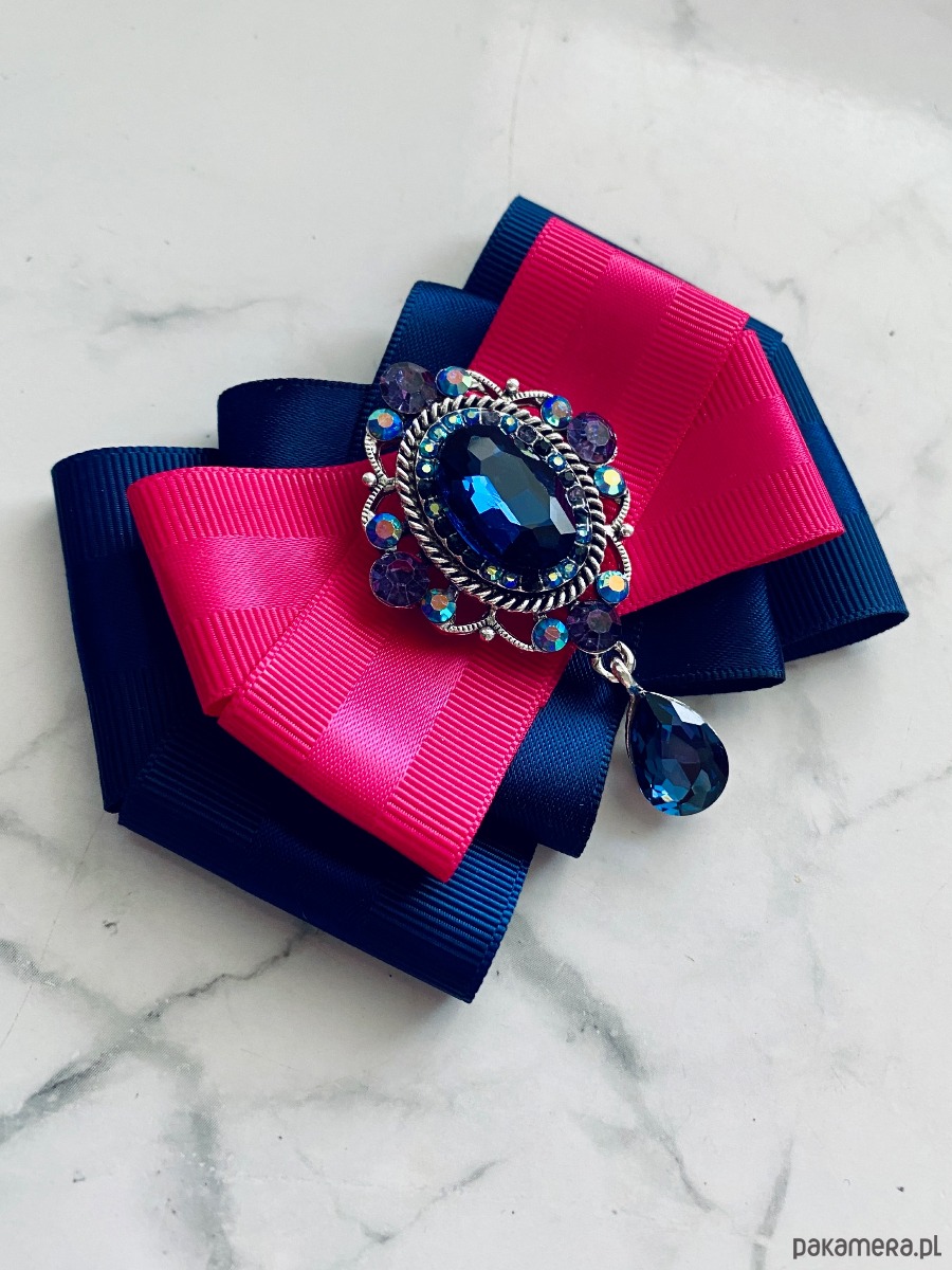 Broszka wykonana z wysokiej jakości taśm i dodatków.