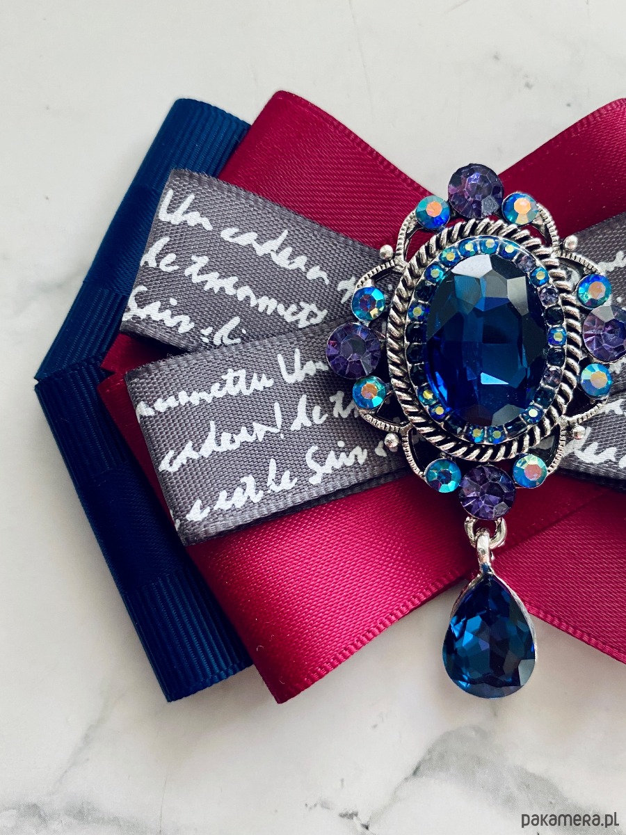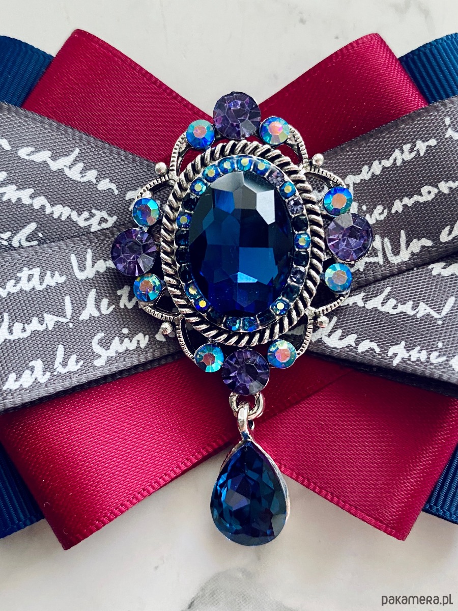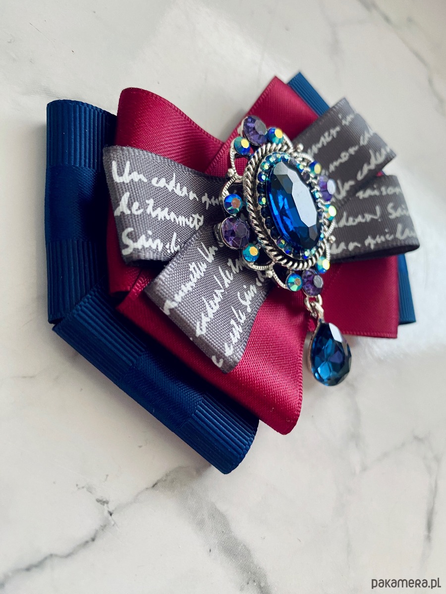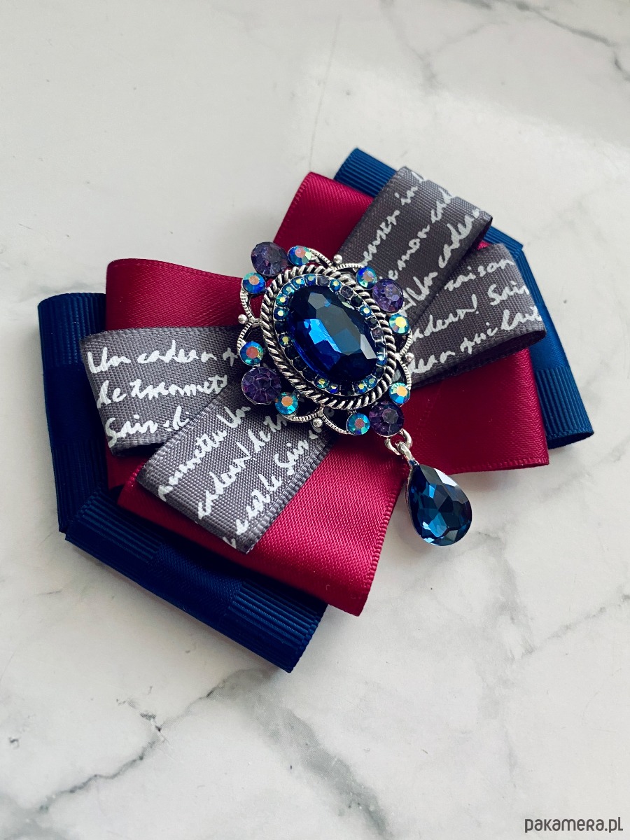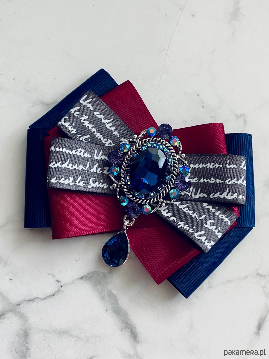 Broszka wykonana z wysokiej jakości taśm i dodatków.
