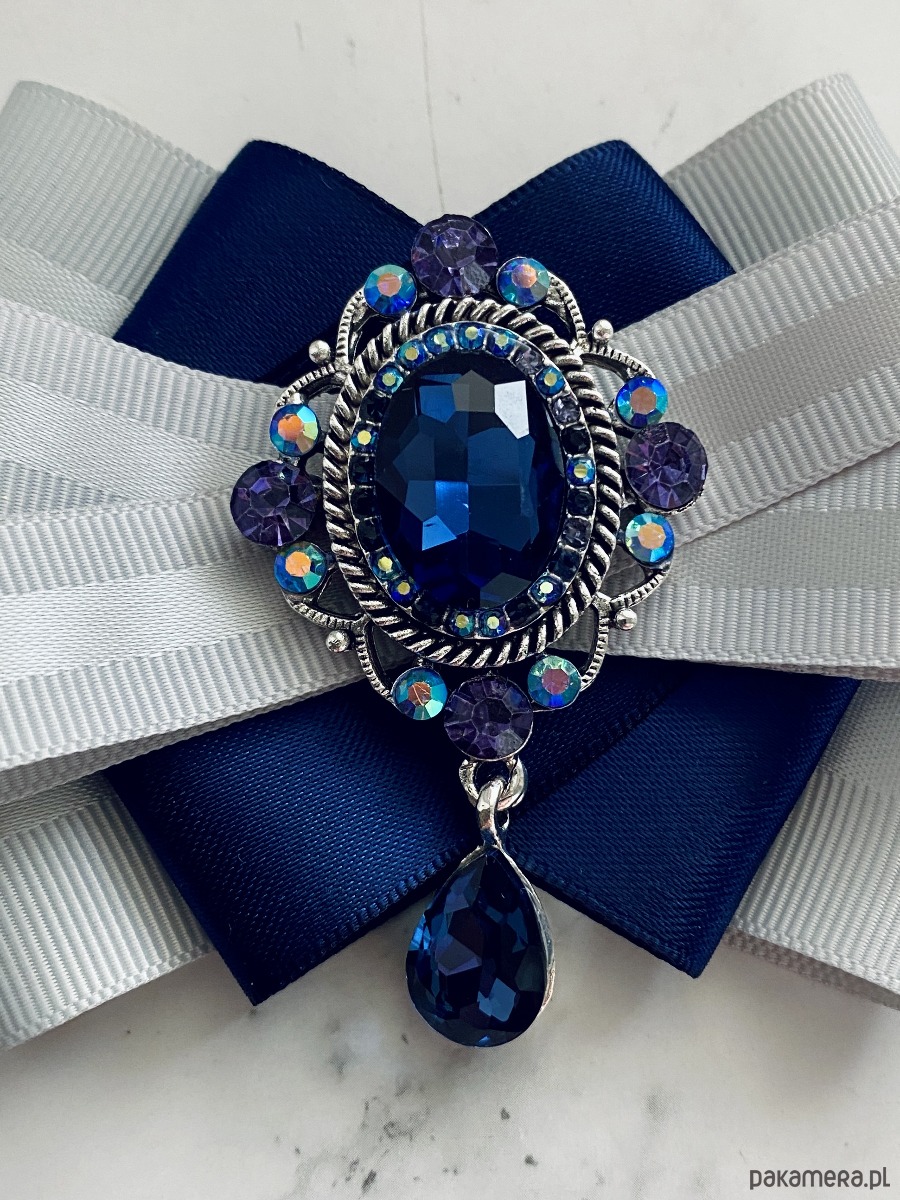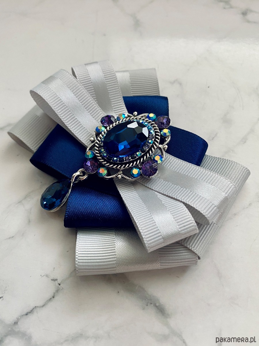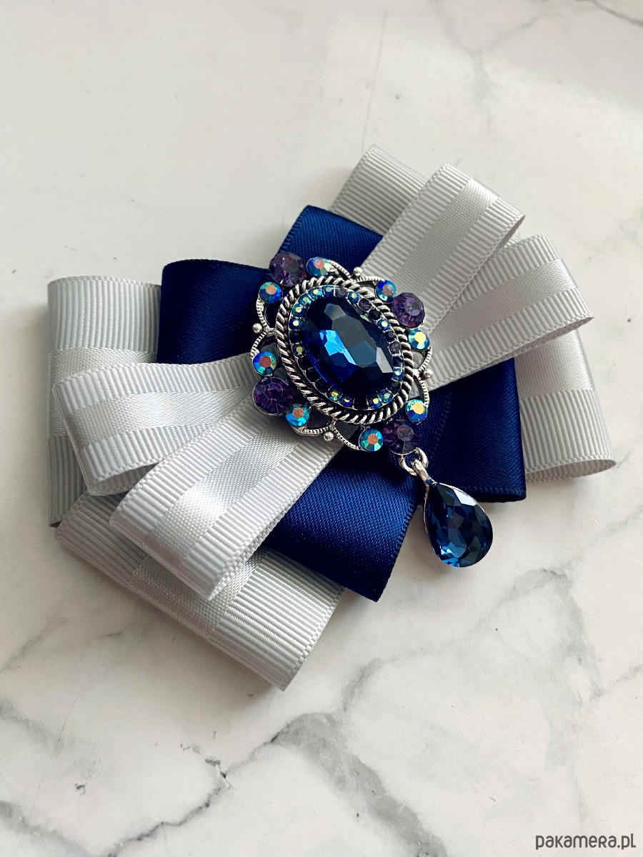 Broszka wykonana z wysokiej jakości taśm i dodatków.