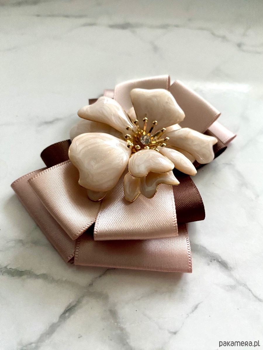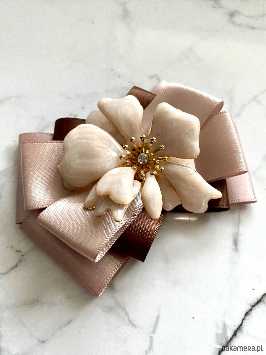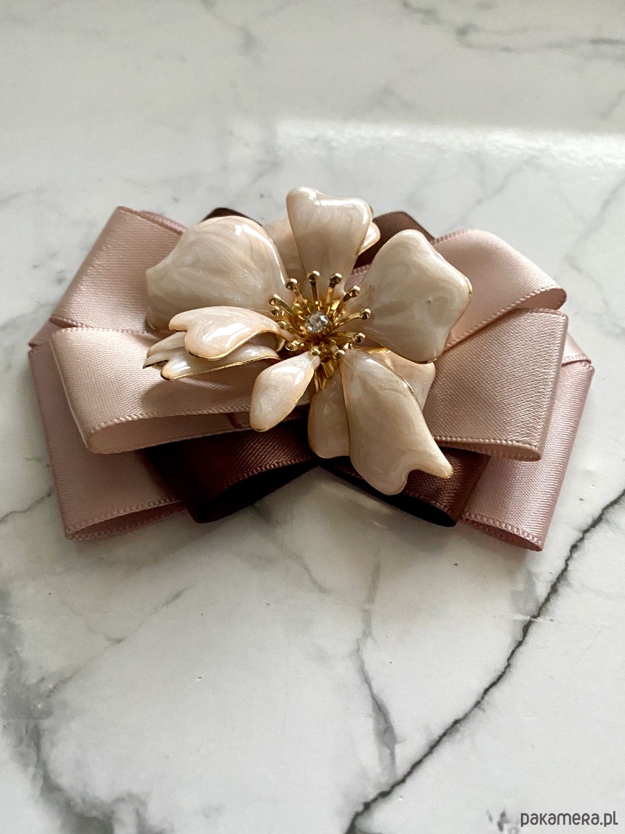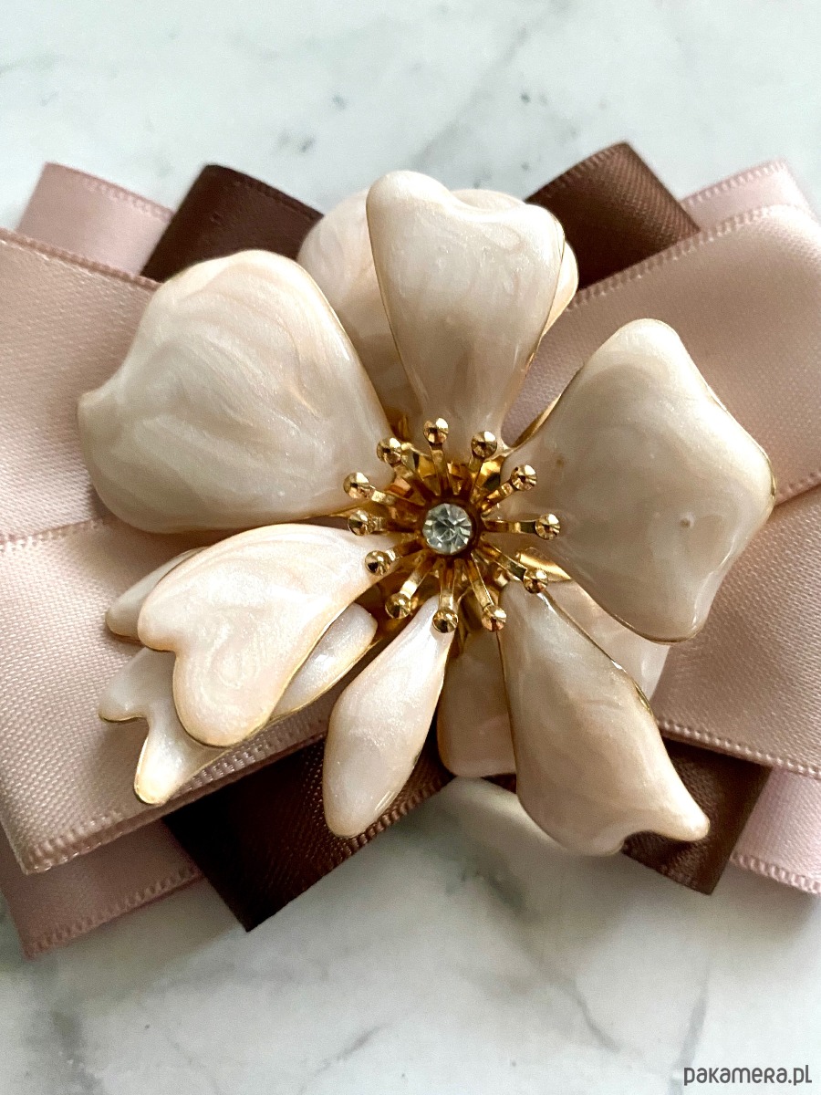 Broszka wykonana z wysokiej jakości taśm i dodatków.