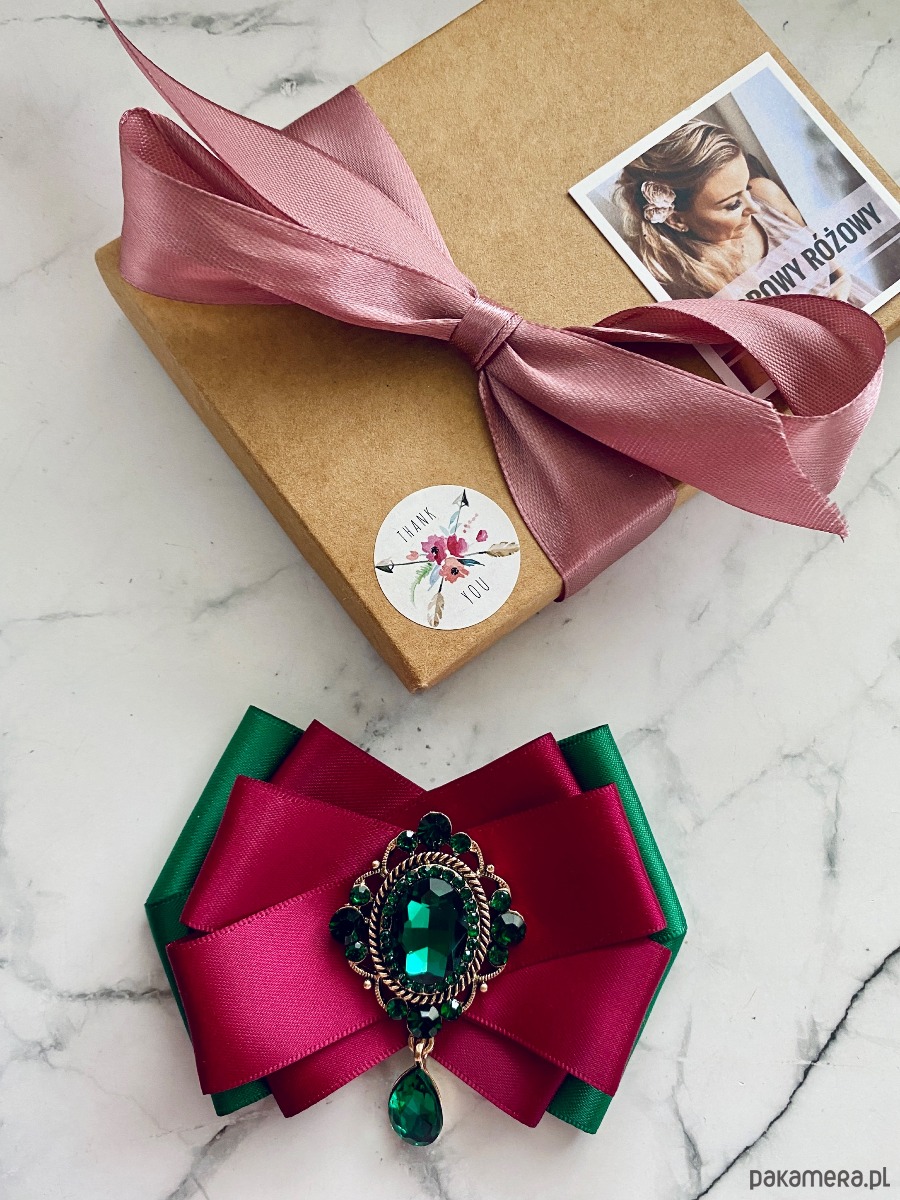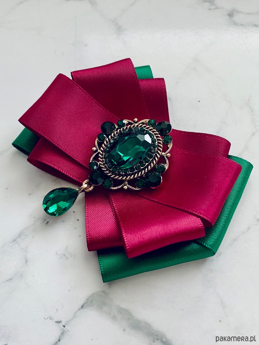 Broszka wykonana z wysokiej jakości taśm i dodatków.