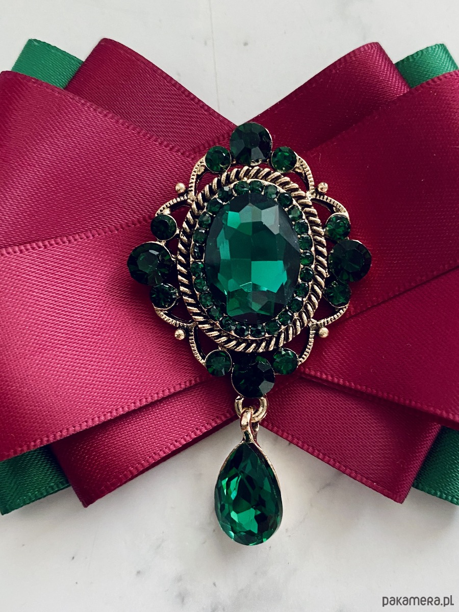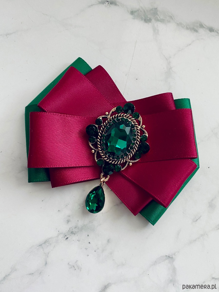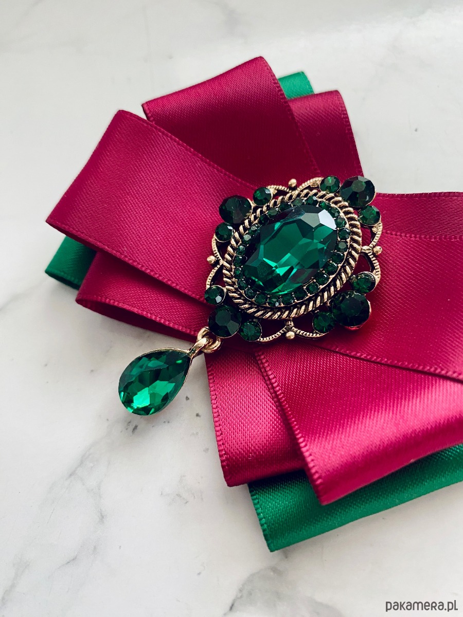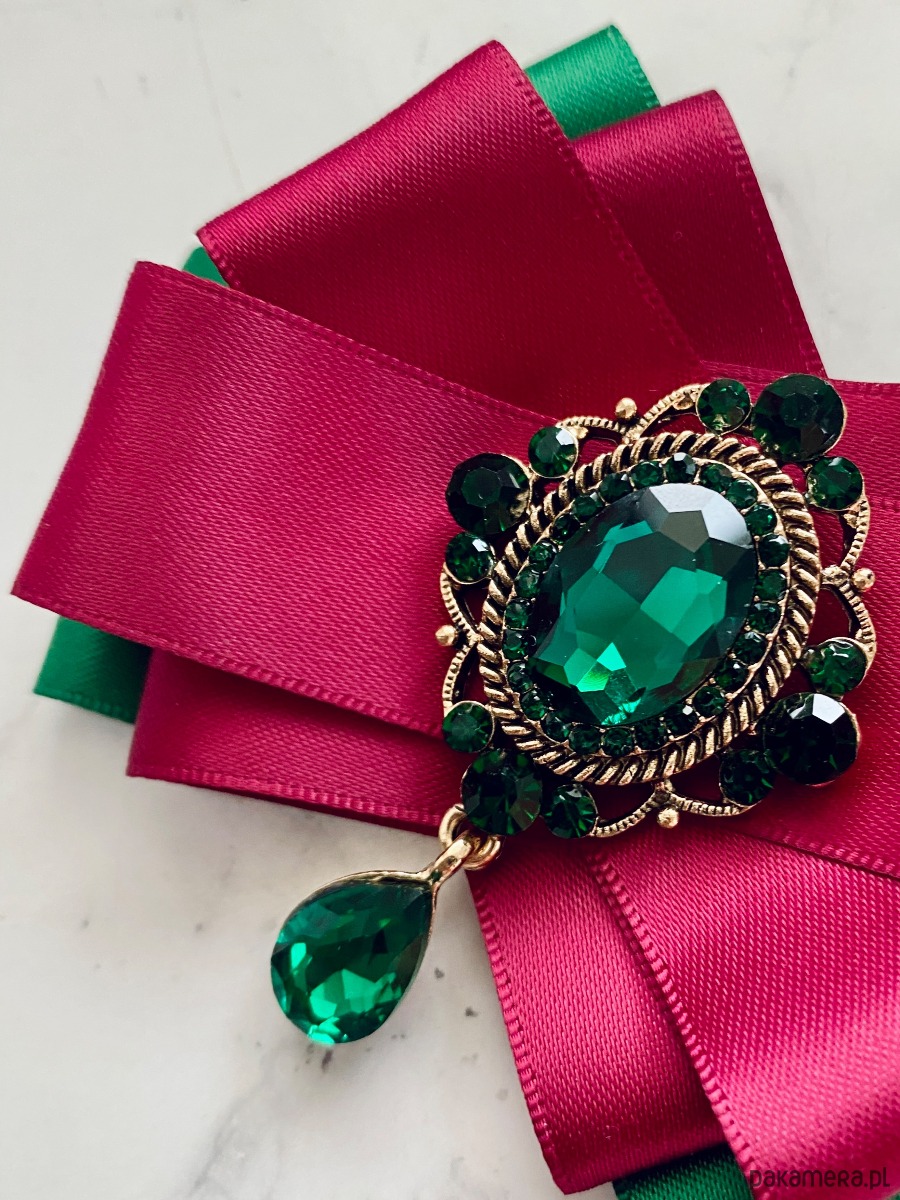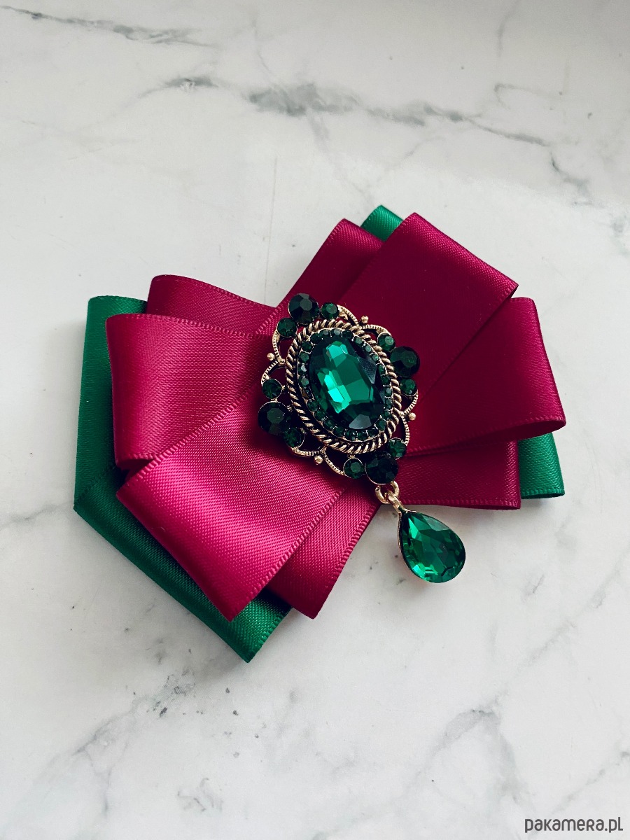 Broszka wykonana z wysokiej jakości taśm i dodatków.