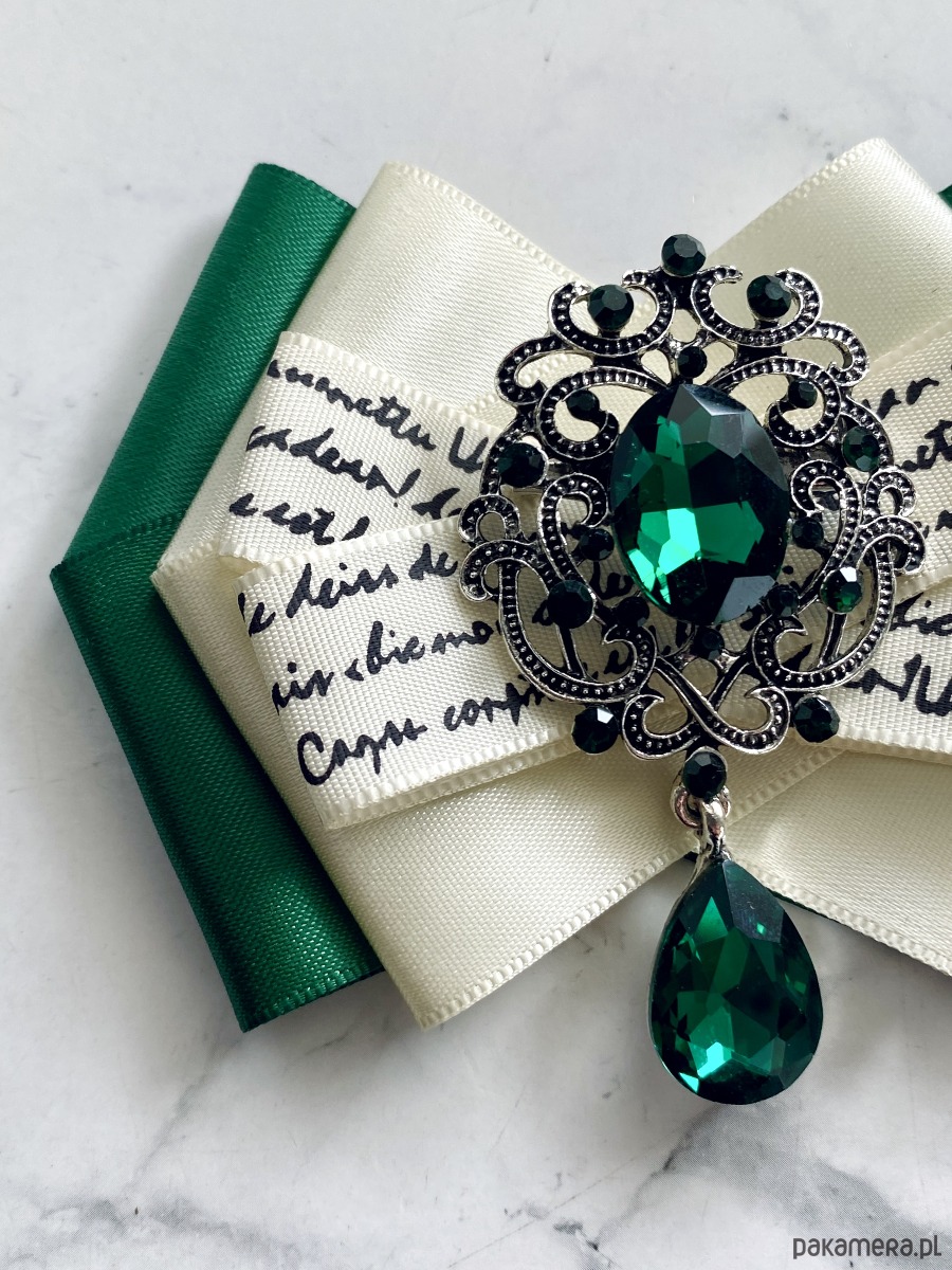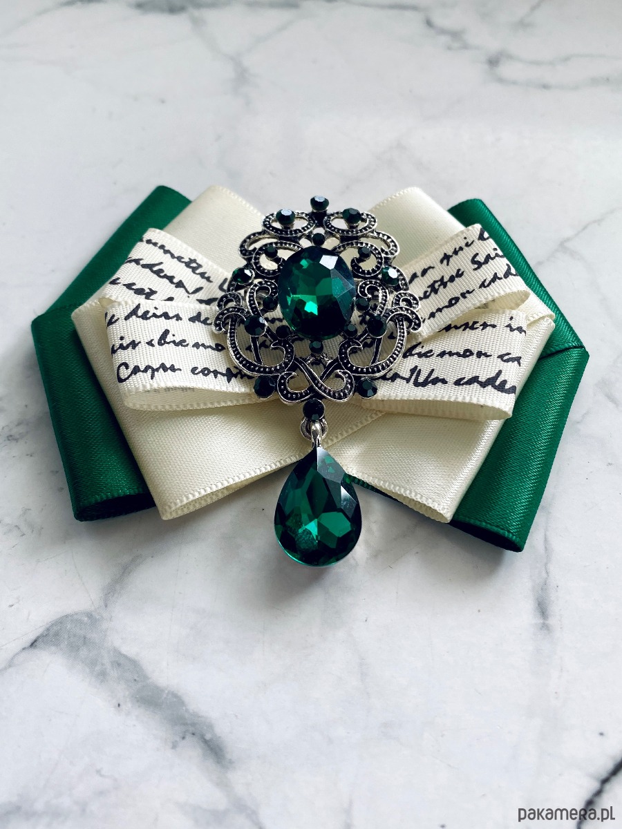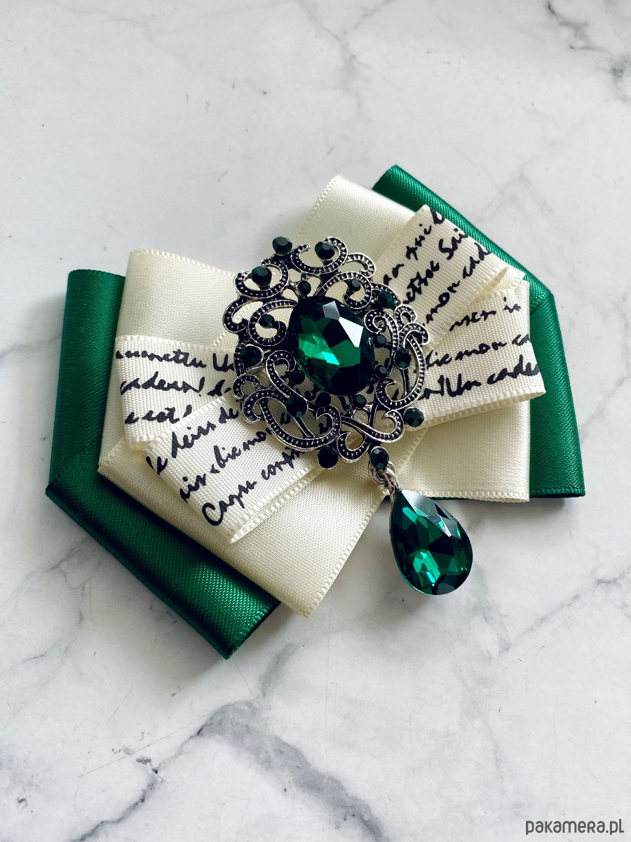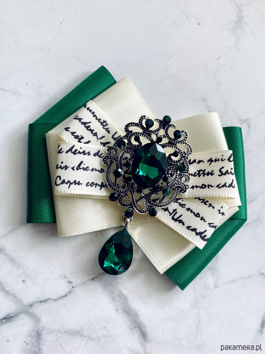 Broszka wykonana z wysokiej jakości taśm i dodatków.