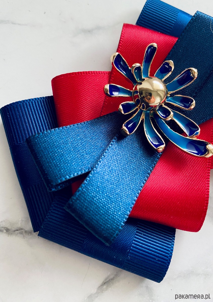 Broszka wykonana z wysokiej jakości taśm i dodatków.