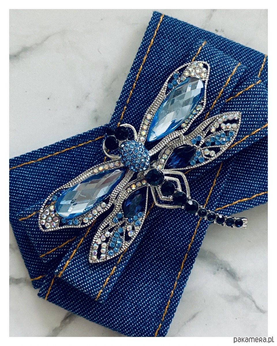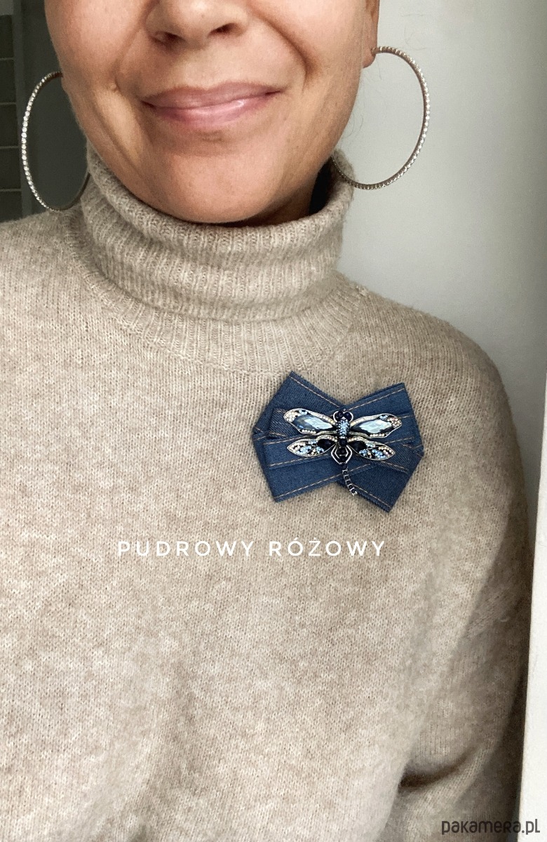 Broszka w kolorach klasycznego odcieniu jeansu.