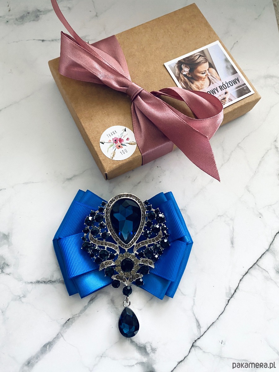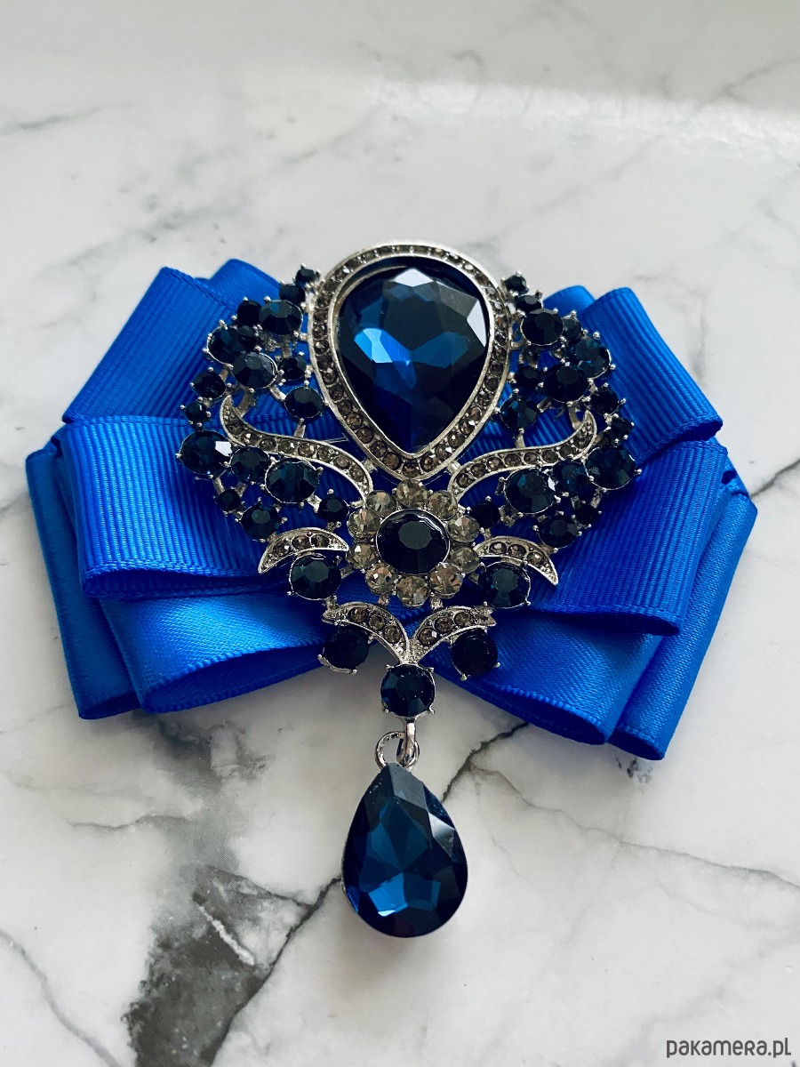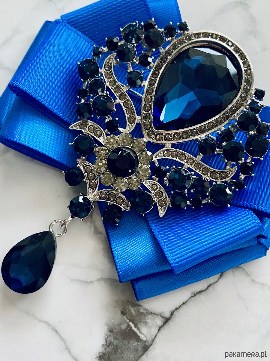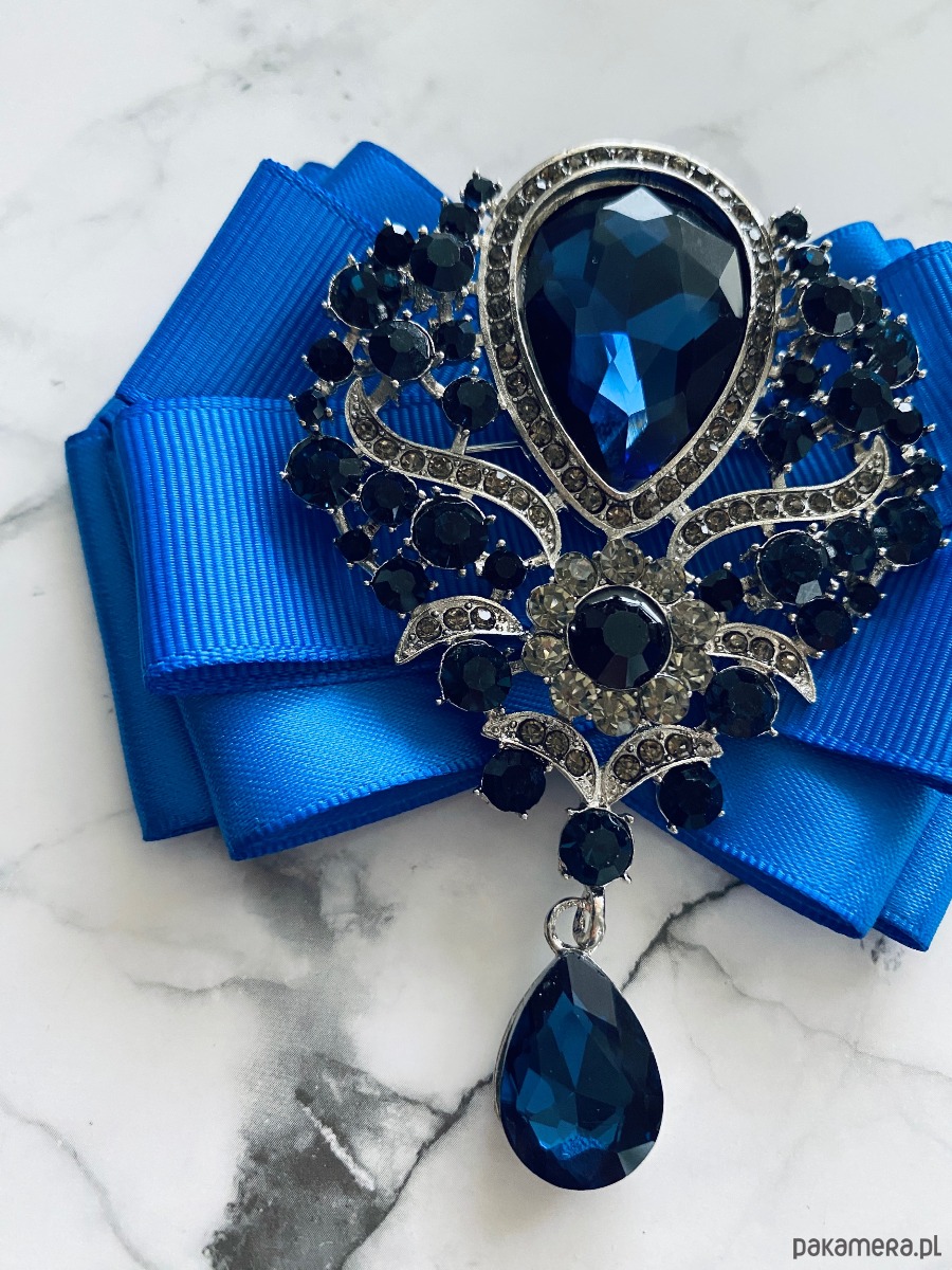 Broszka wykonana z wysokiej jakości taśm i dodatków. Brosza w kolorze niebieskim chabrowym. Ten pięknie szlifowany kryształ cudnie odbija światło i sprawia, że brosza jest jedyną w swoim rodzaju.