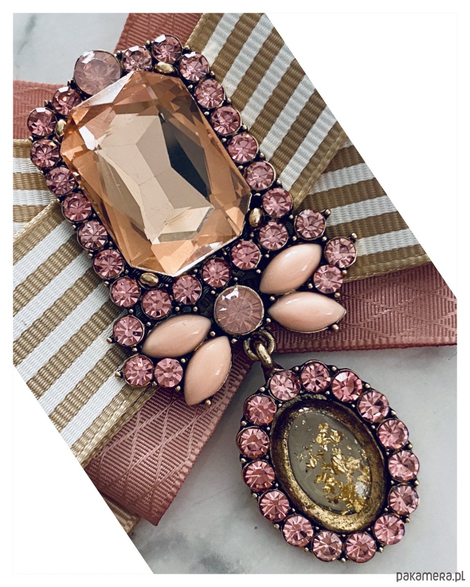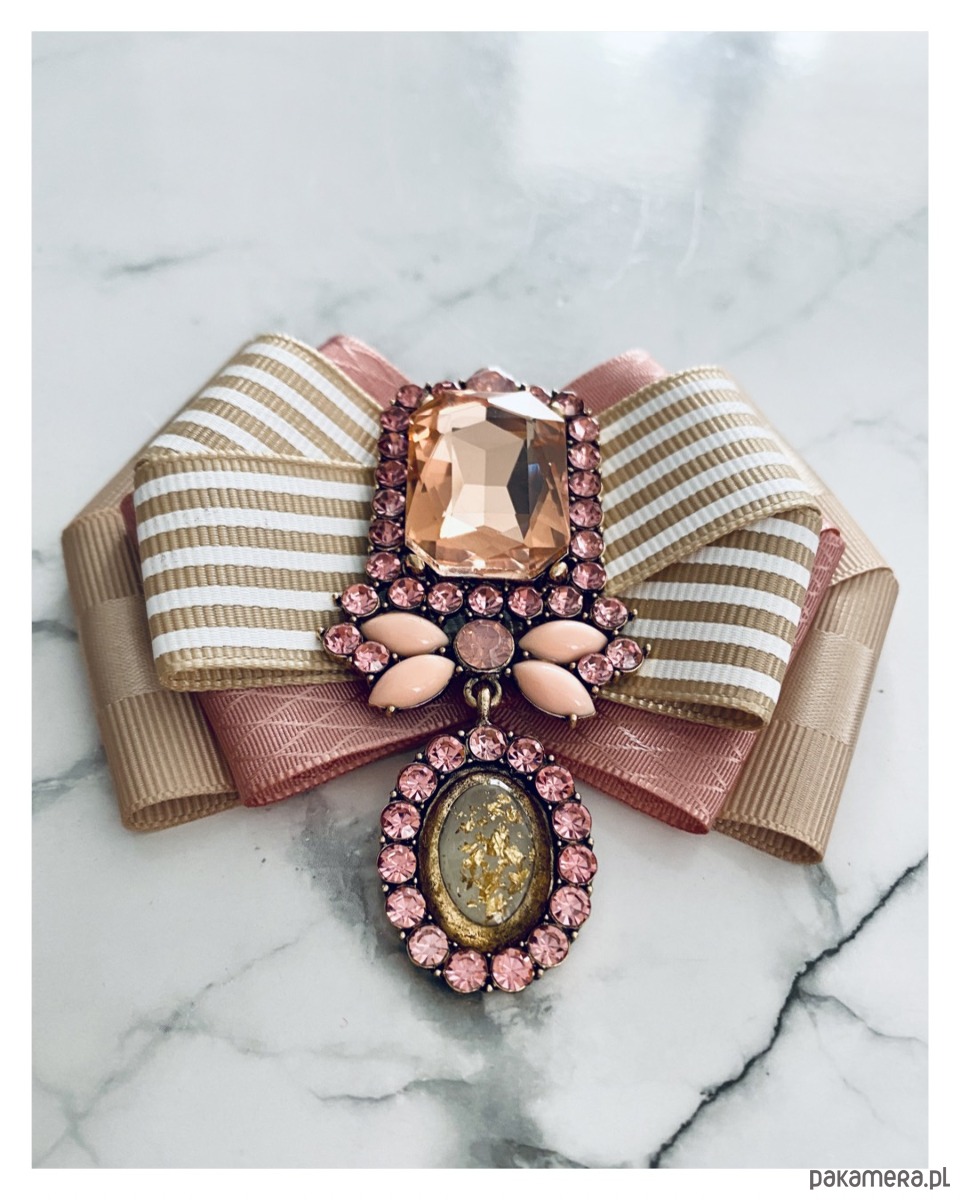 Broszka wykonana z wysokiej jakości taśm i dodatków.