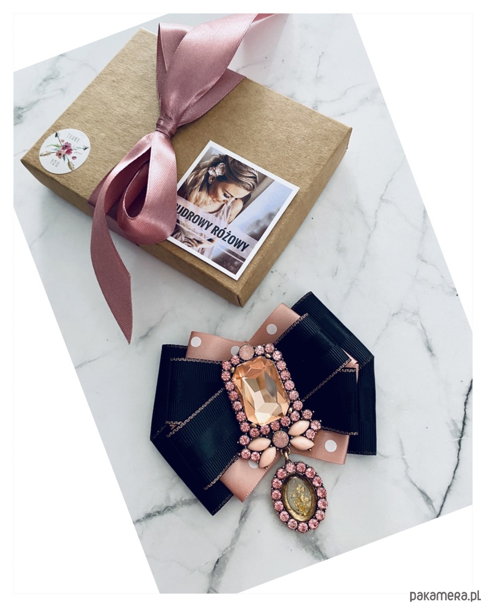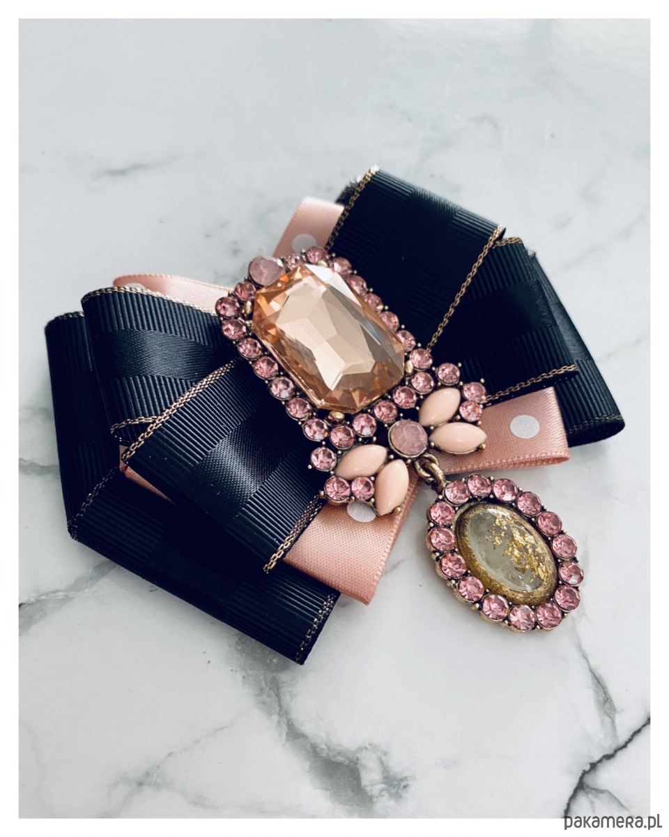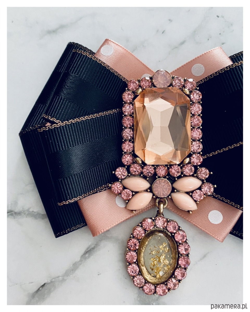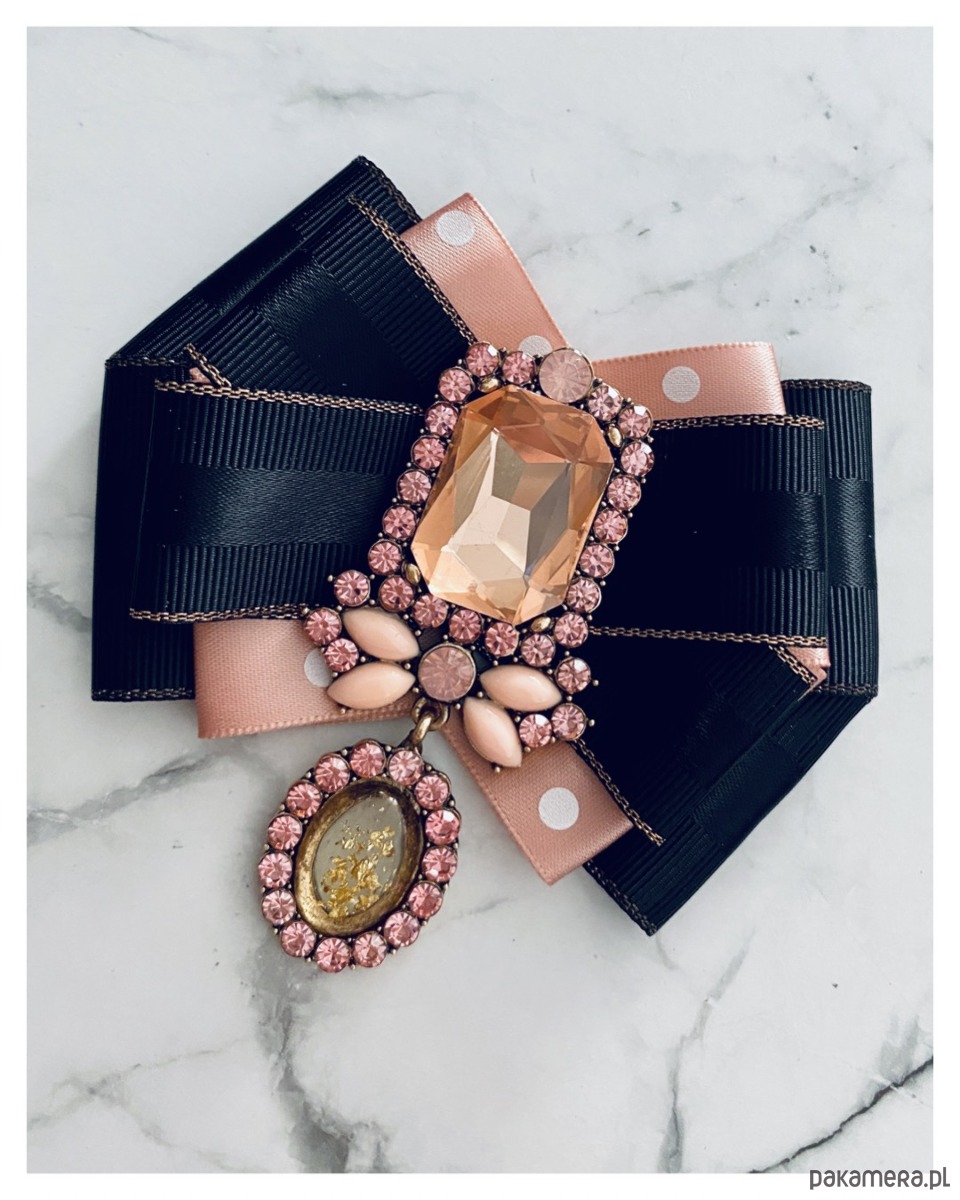Broszka wykonana z wysokiej jakości taśm i dodatków.