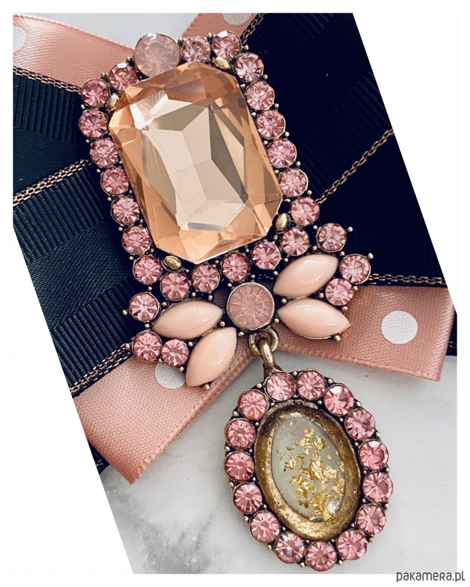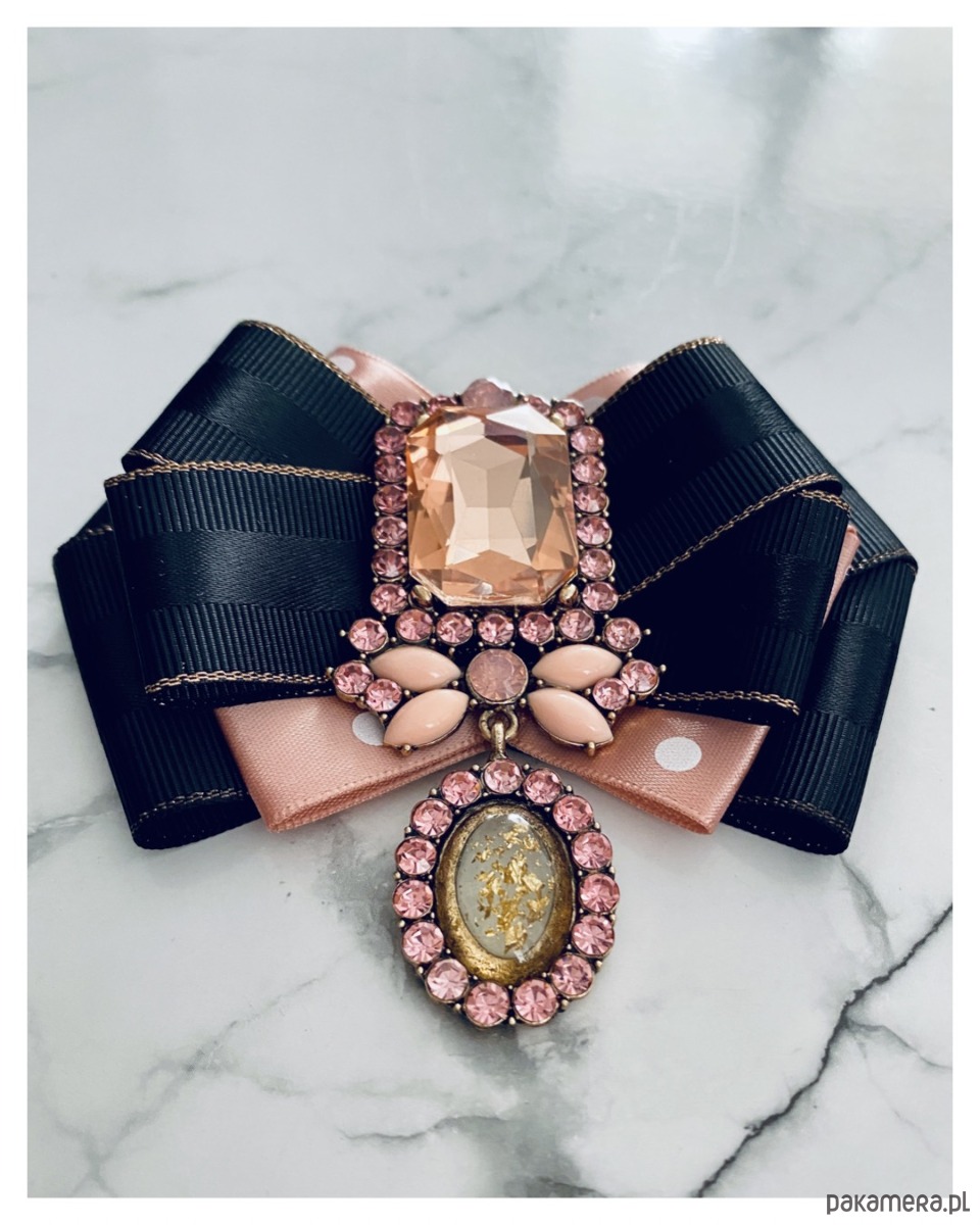 Broszka wykonana z wysokiej jakości taśm i dodatków.