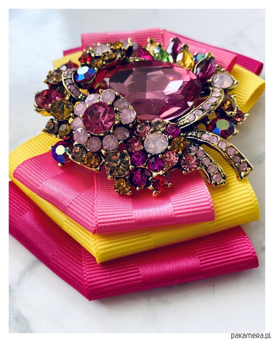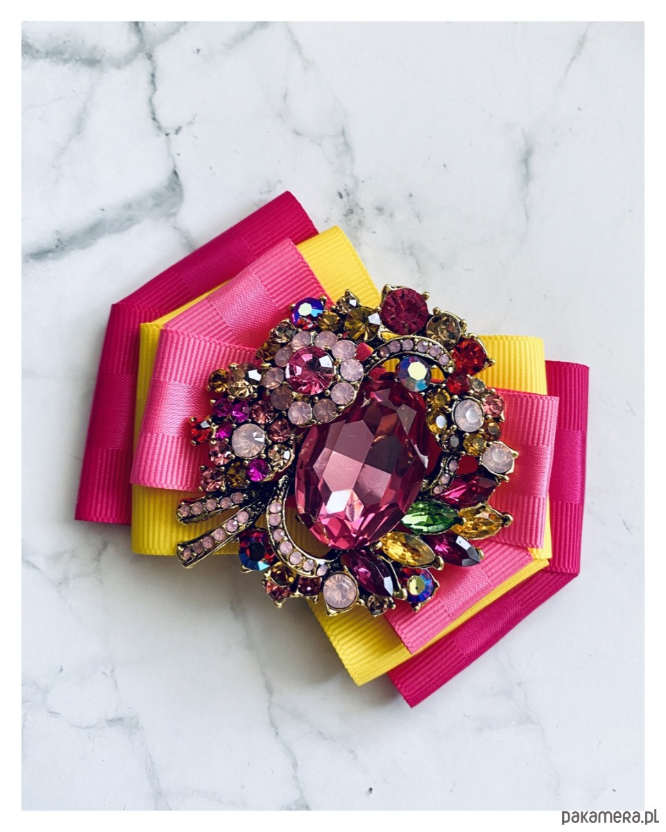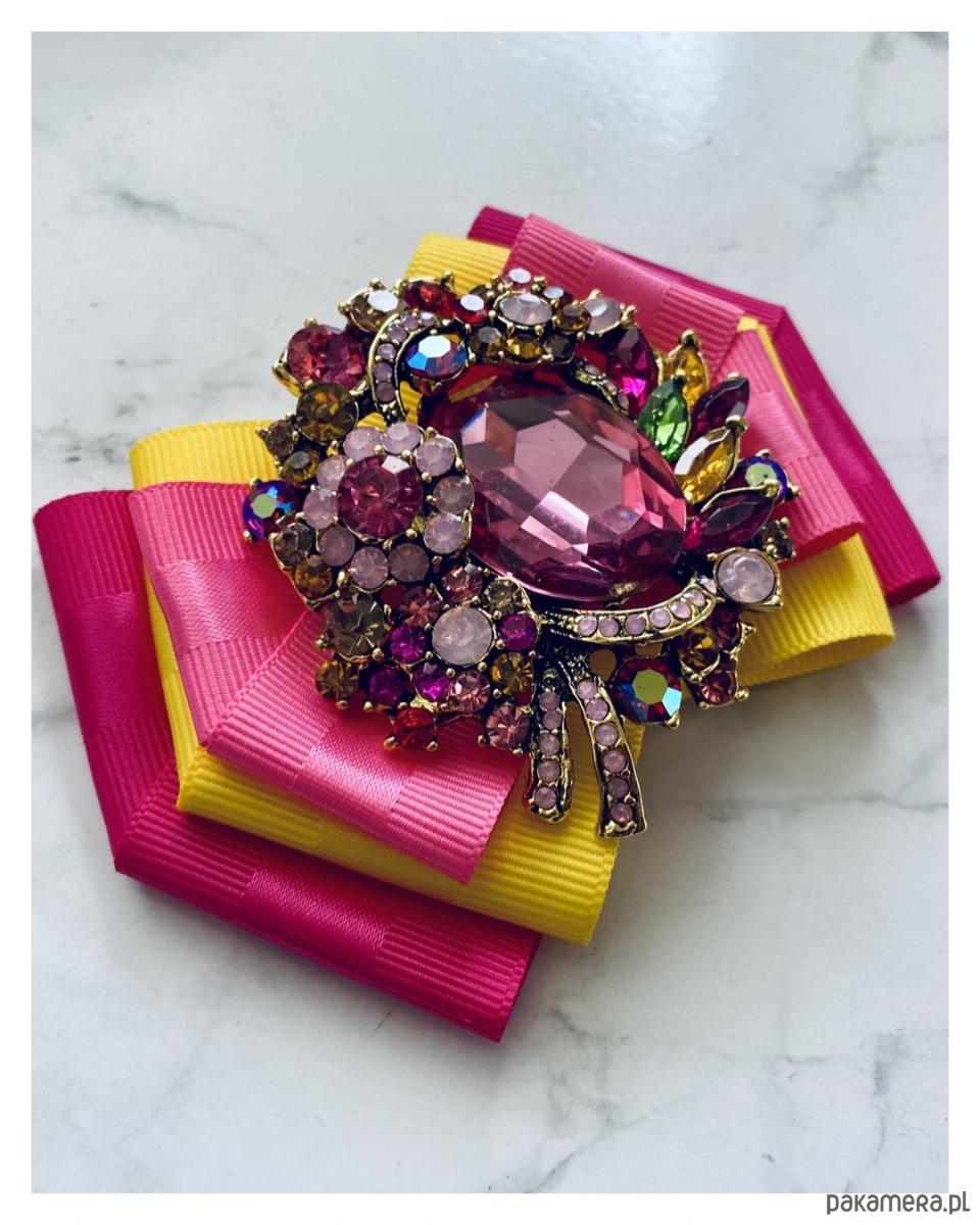 Broszka wykonana z wysokiej jakości taśm i dodatków.