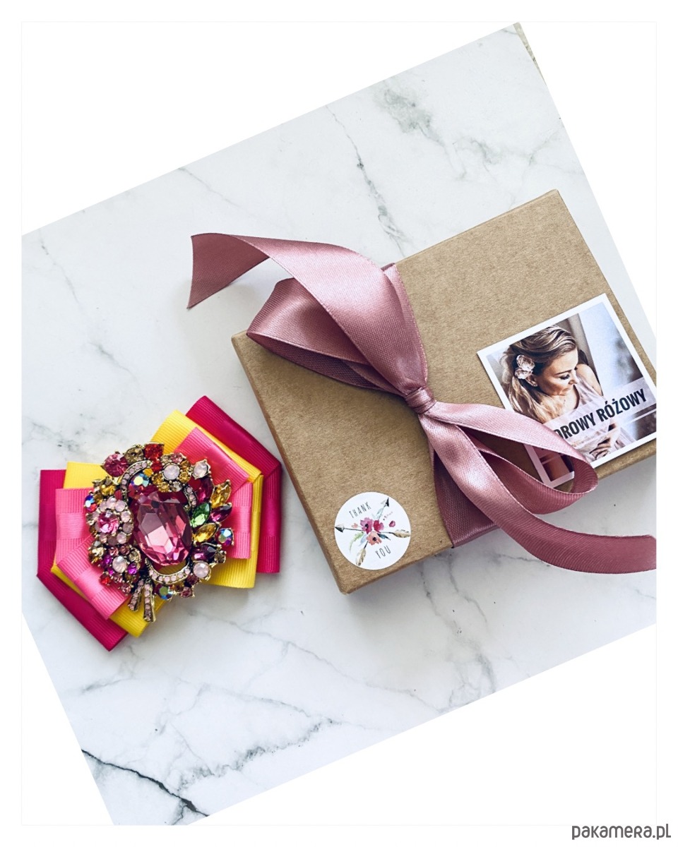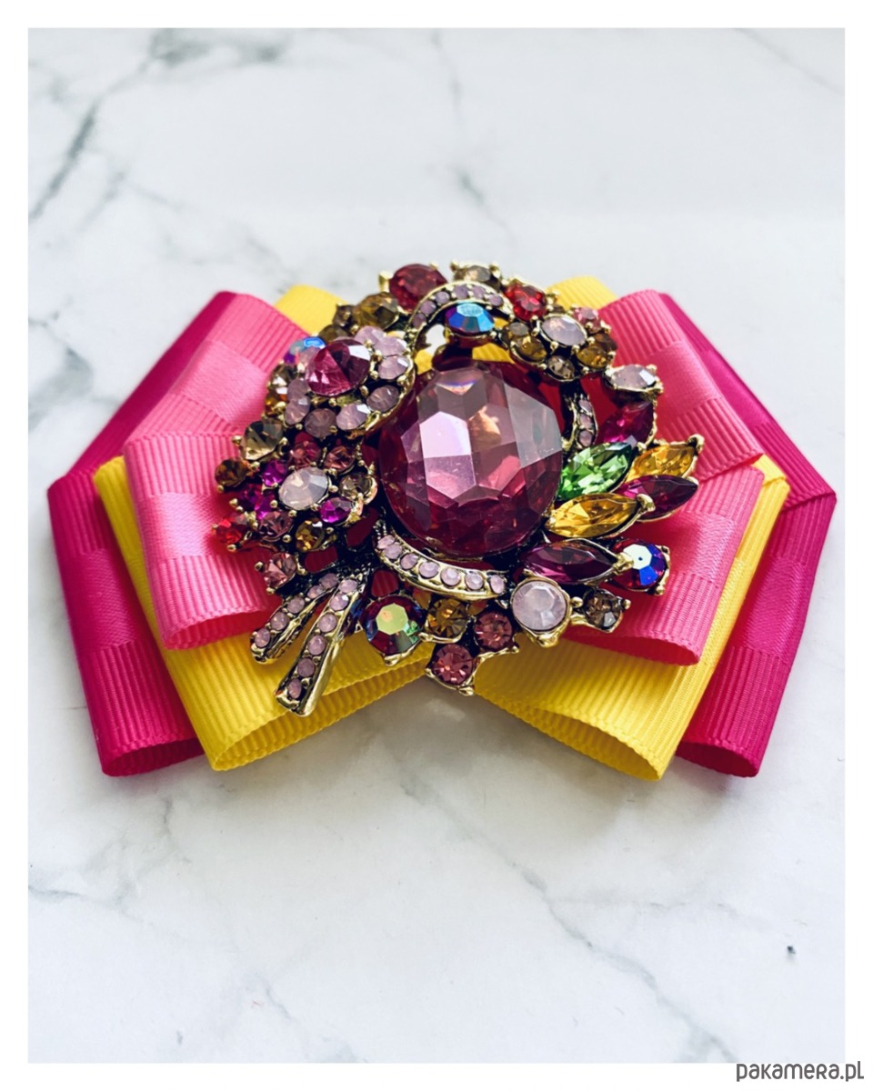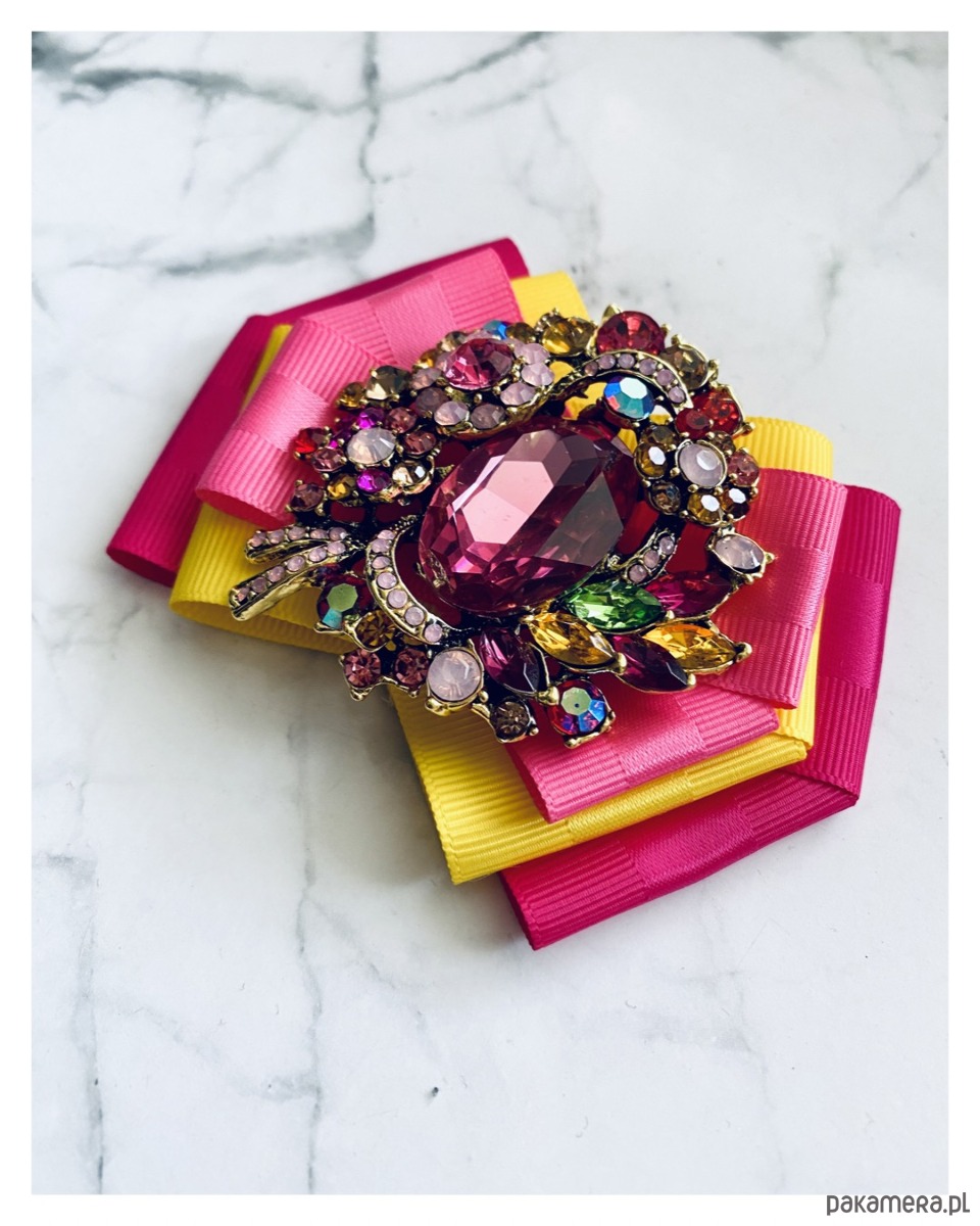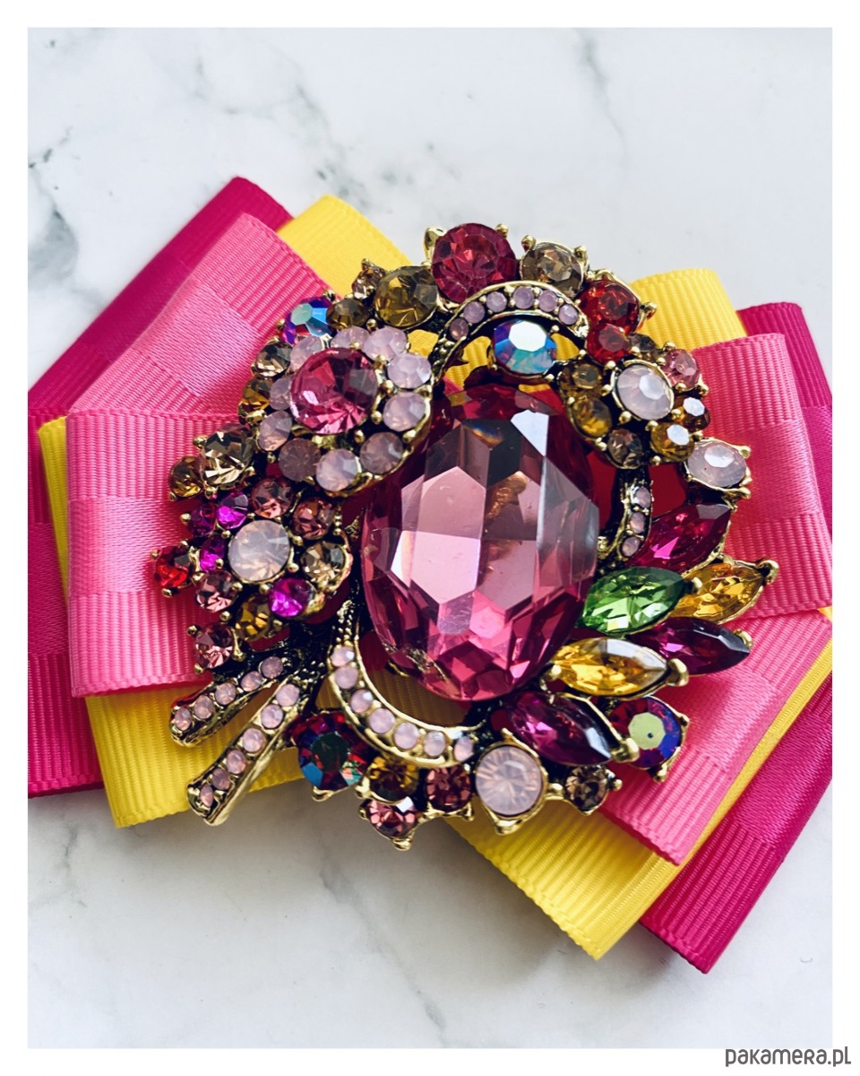 Broszka wykonana z wysokiej jakości taśm i dodatków.