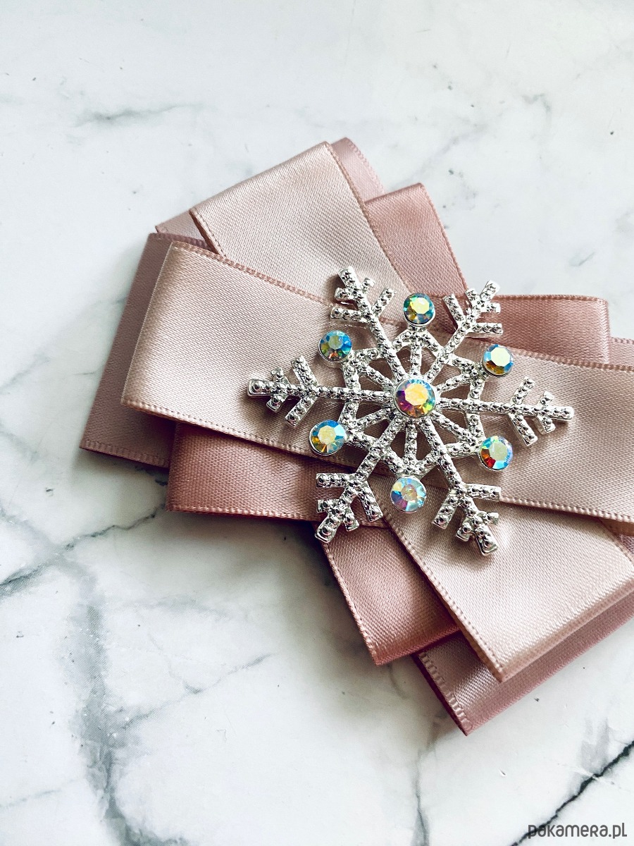 Brosza z okazałą śnieżynką / gwiazdką z kryształków New