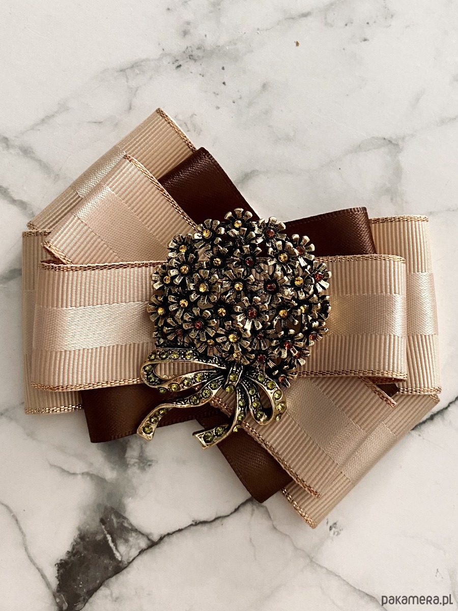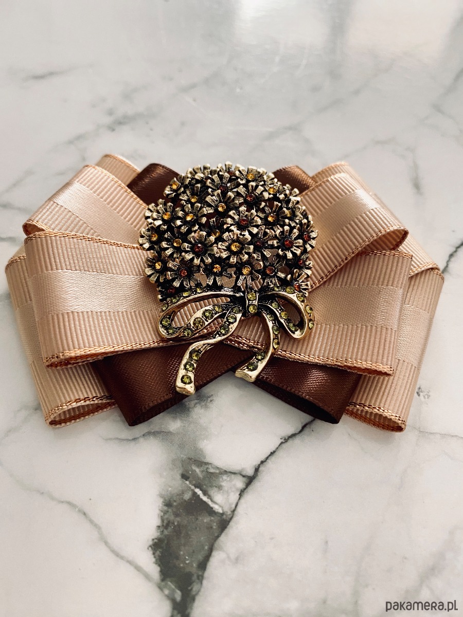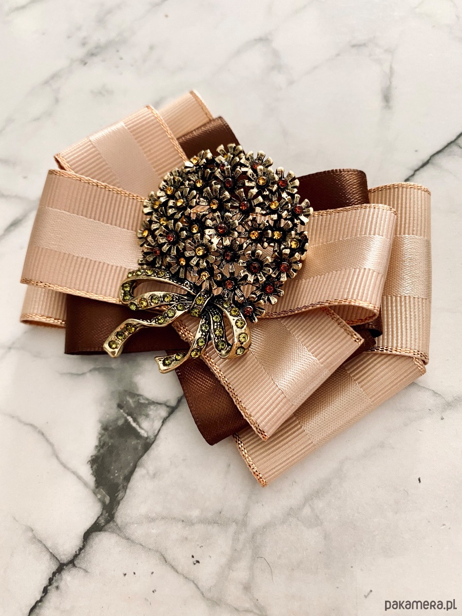 Broszka wykonana z wysokiej jakości taśm i dodatków.