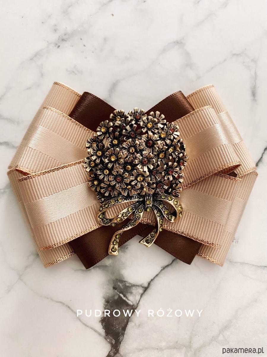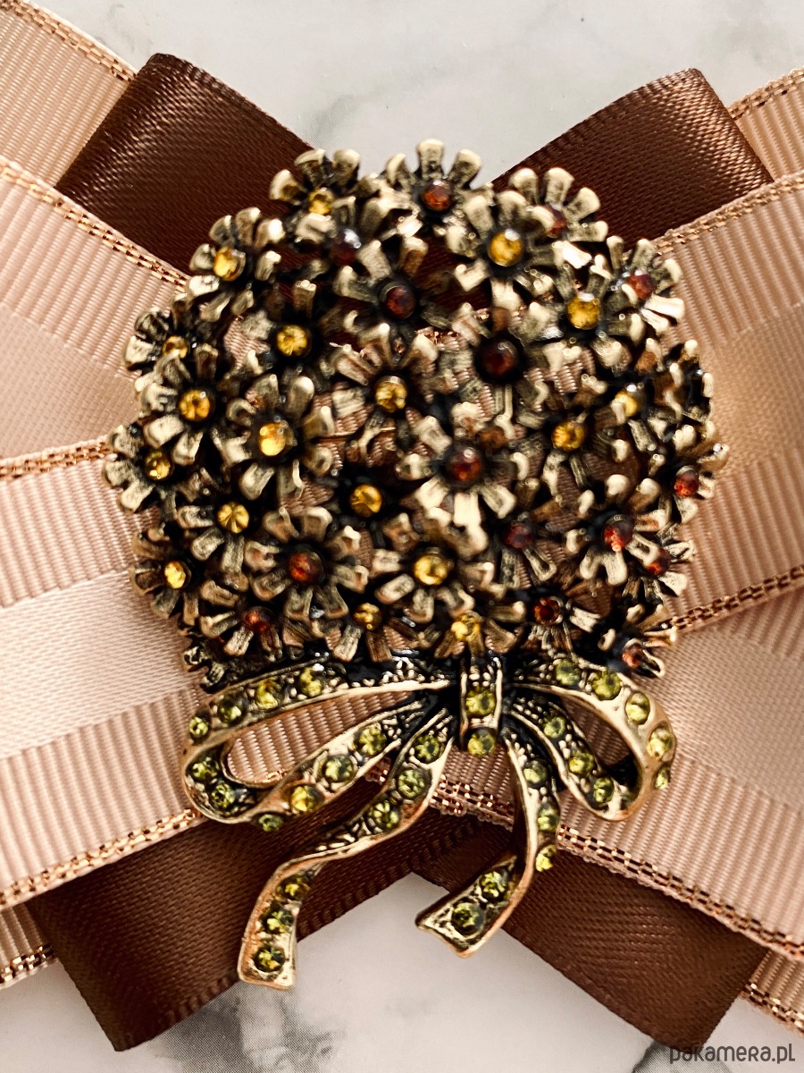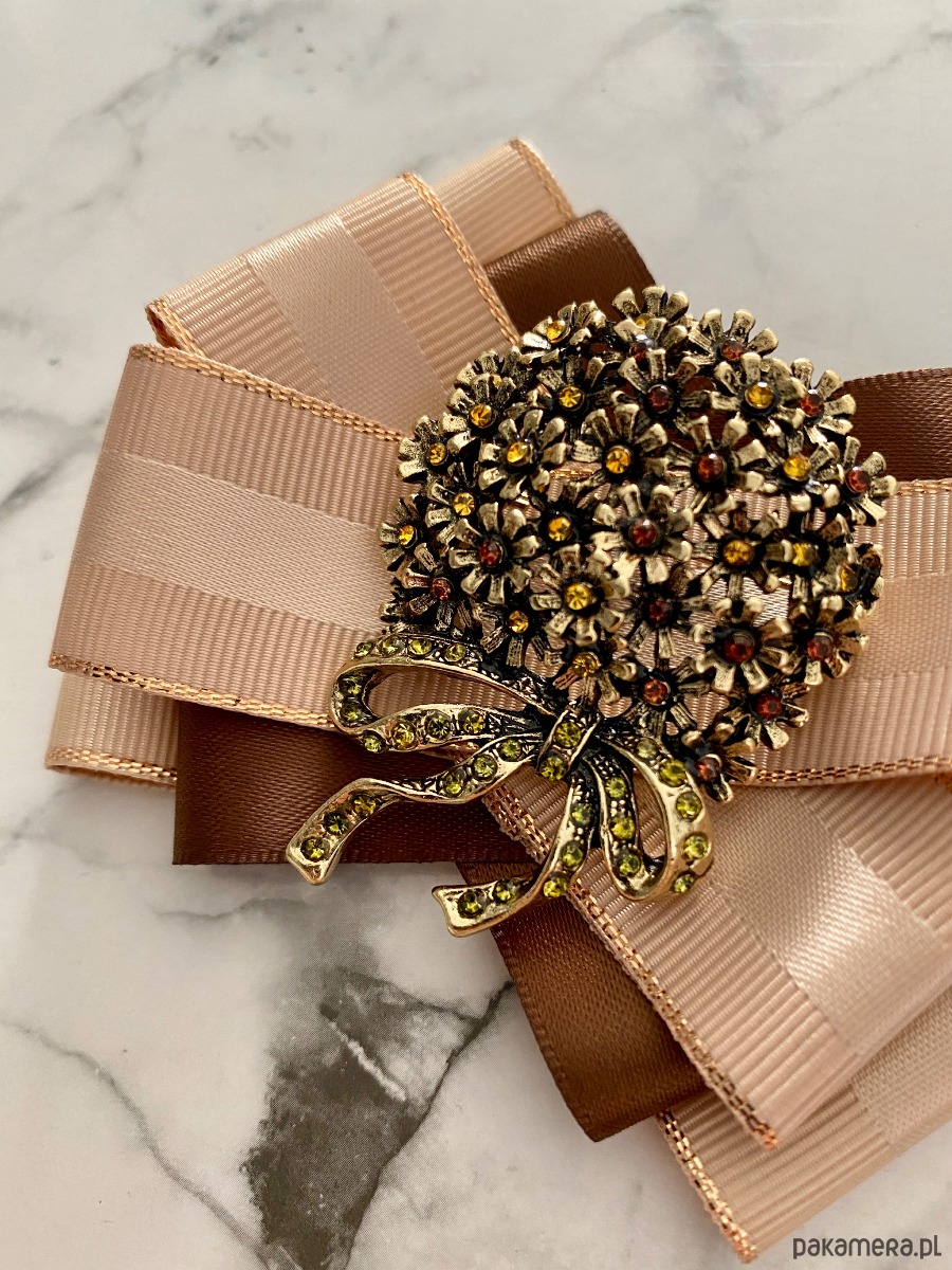 Broszka wykonana z wysokiej jakości taśm i dodatków.