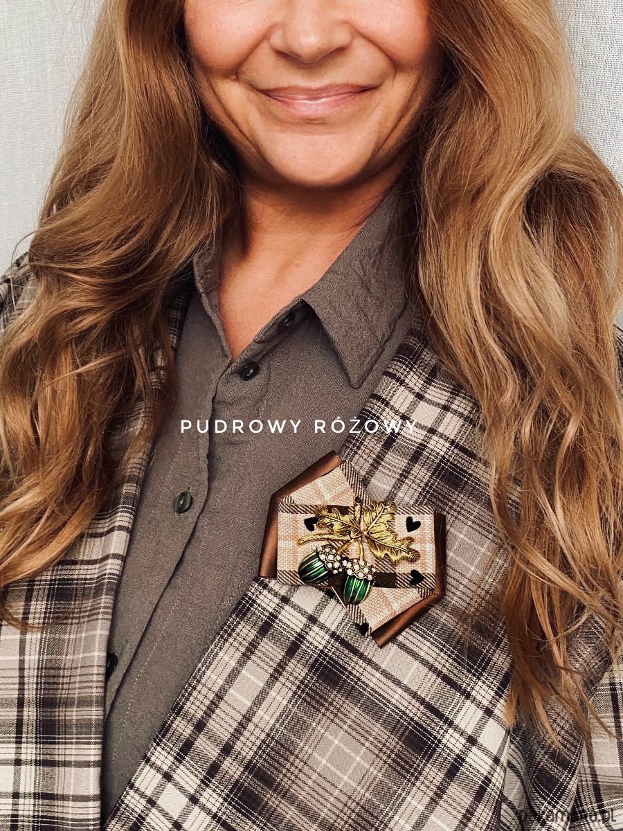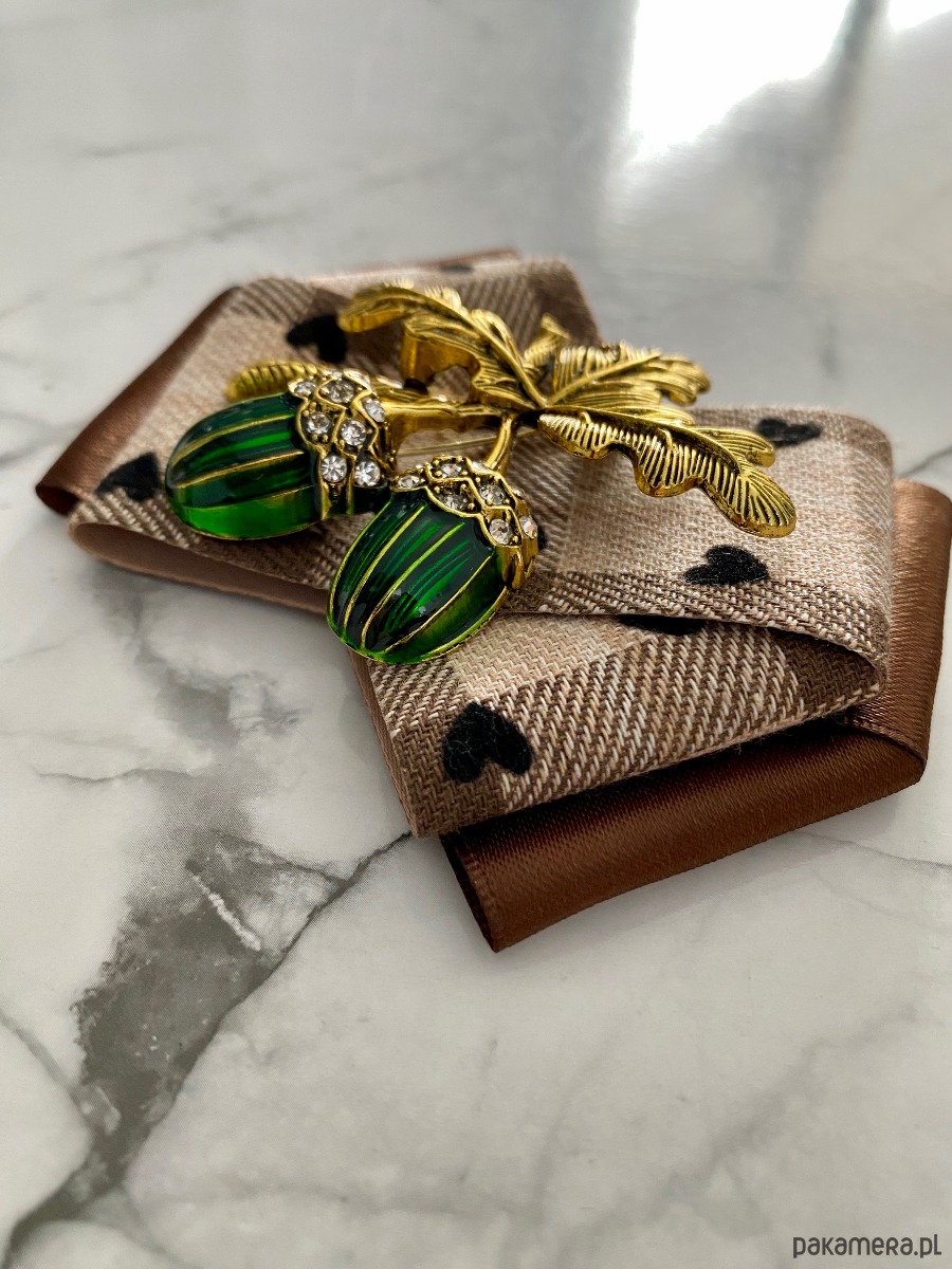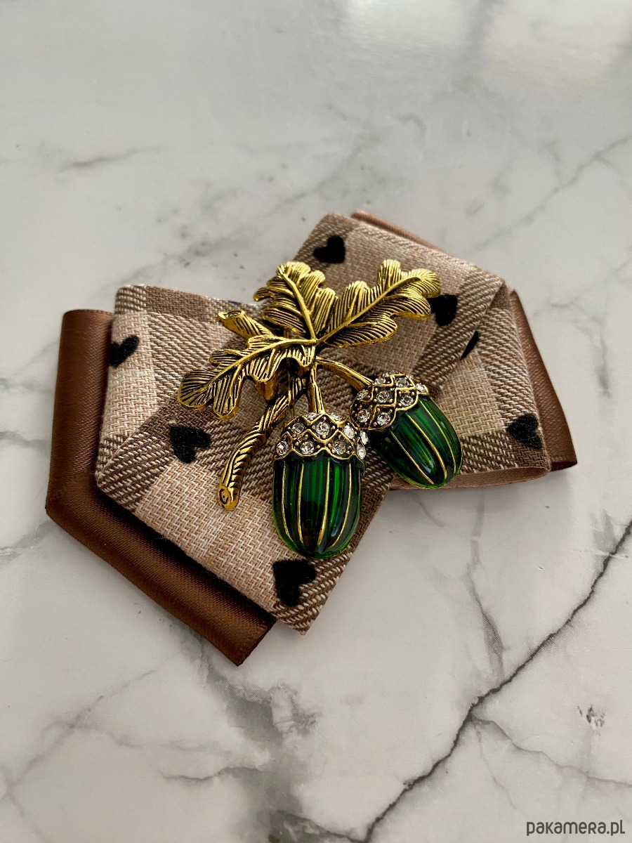 Broszka wykonana z wysokiej jakości taśm i dodatków.