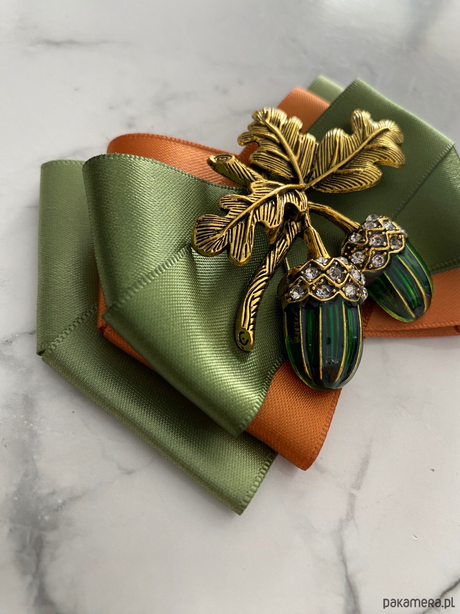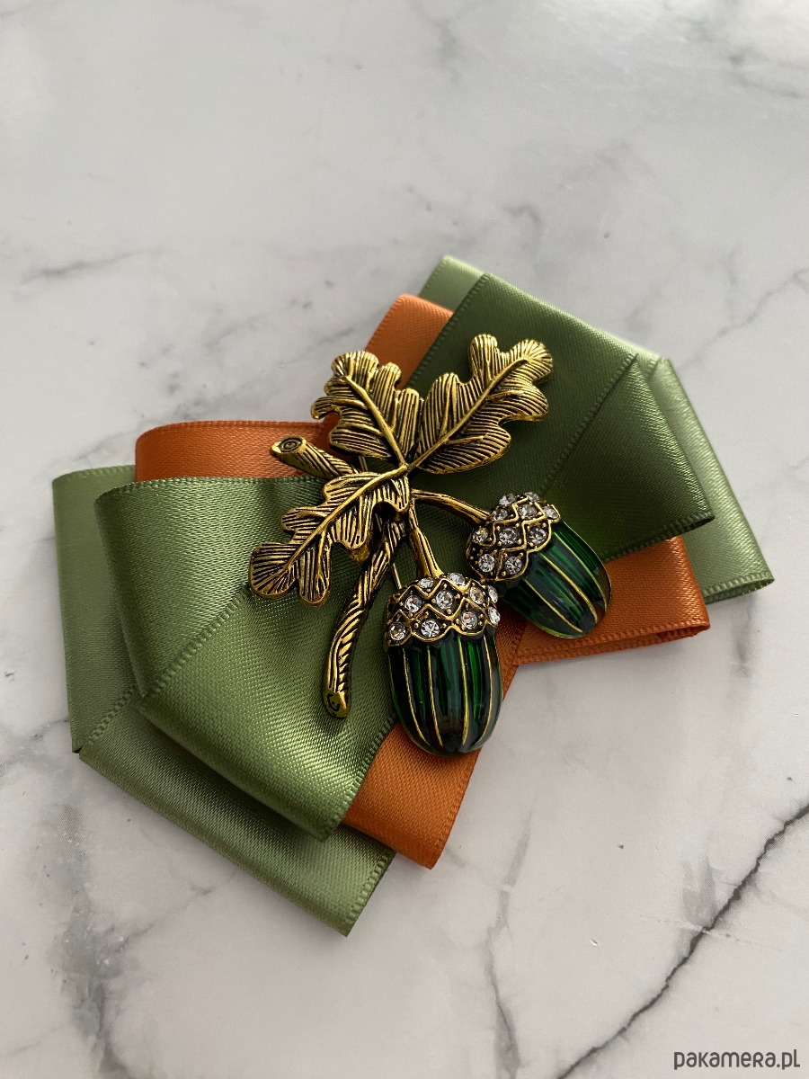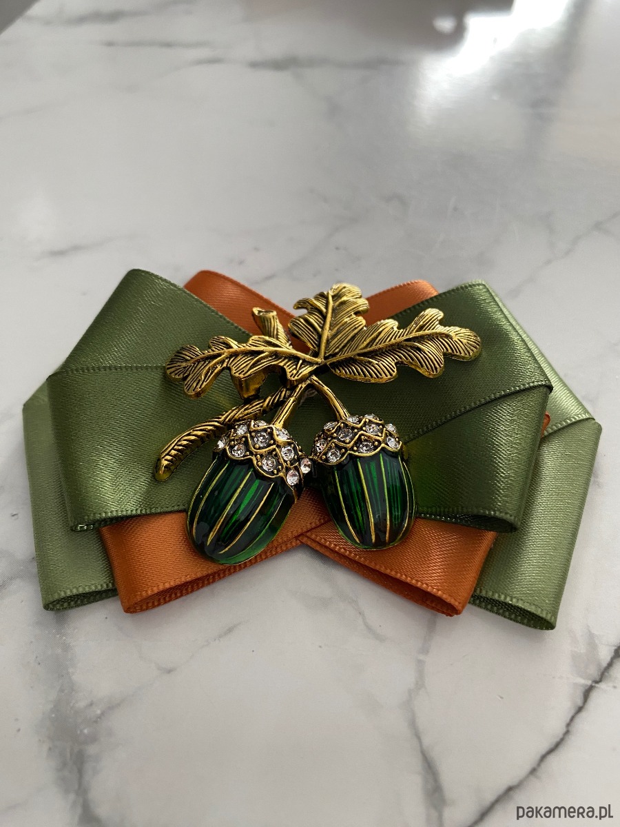 Broszka wykonana z wysokiej jakości taśm i dodatków.
