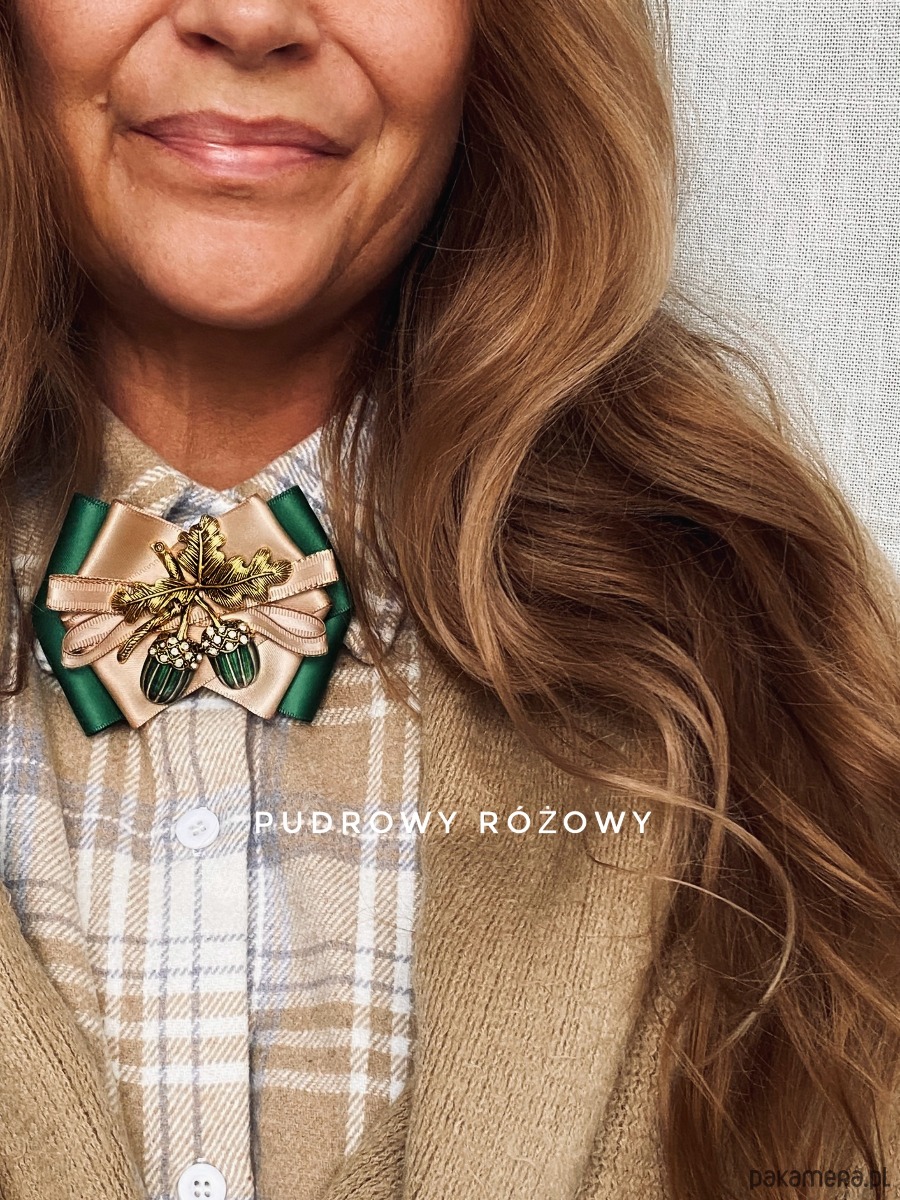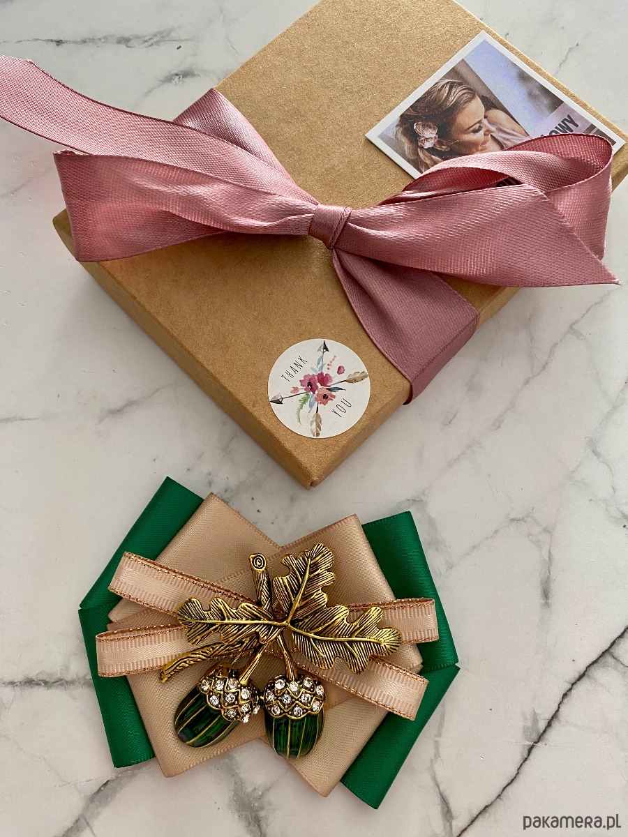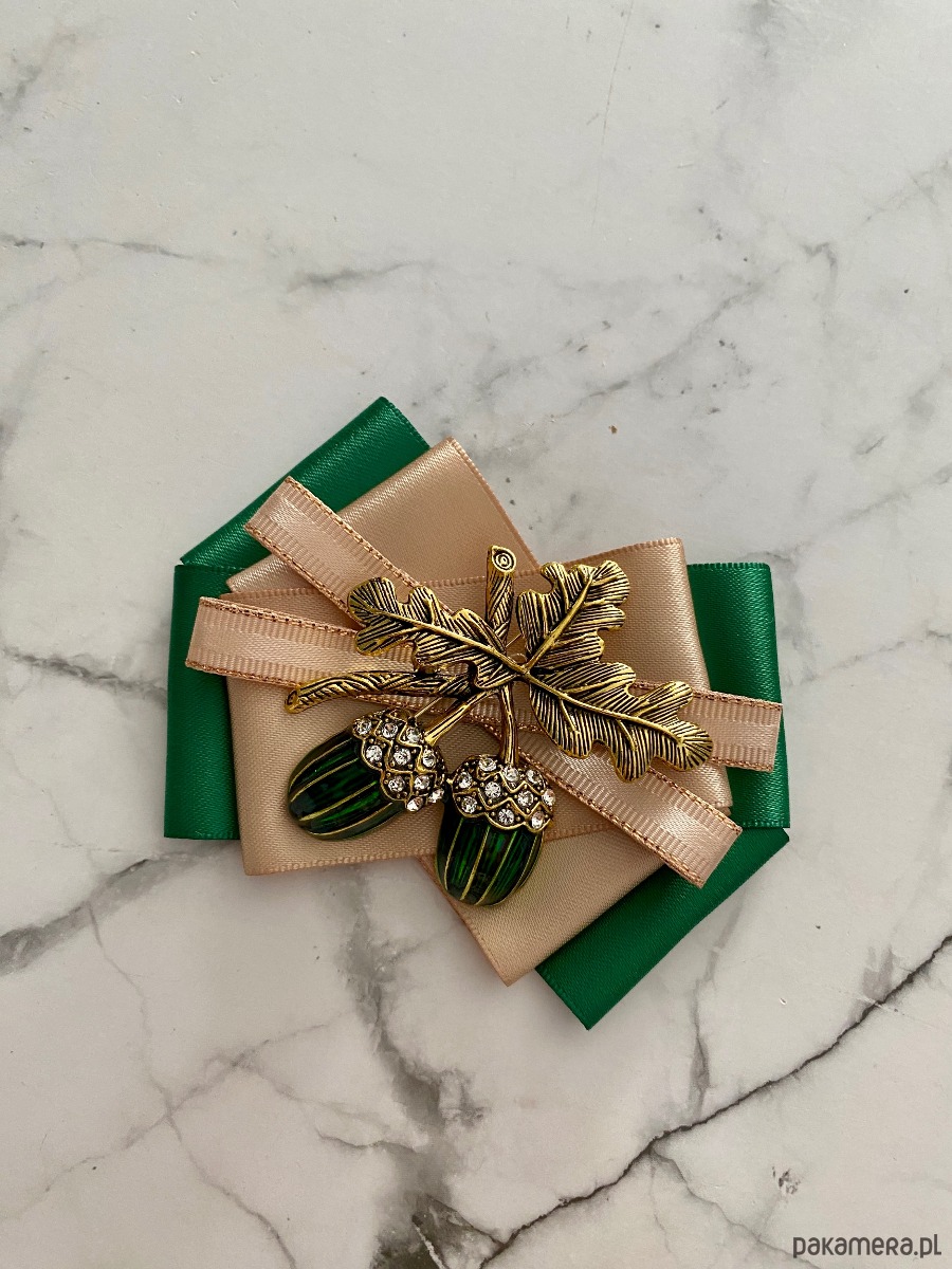 Broszka wykonana z wysokiej jakości taśm i dodatków.