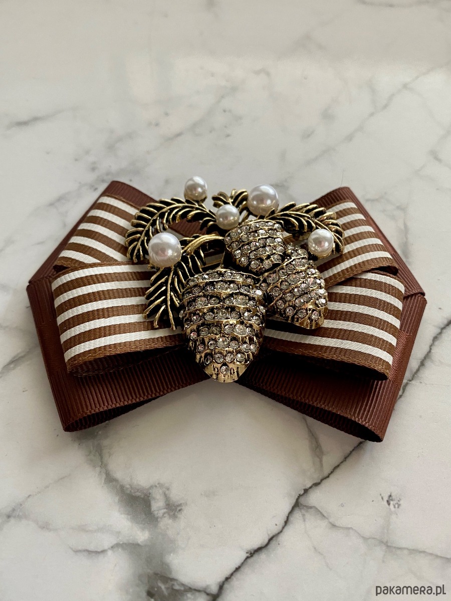 Broszka wykonana z wysokiej jakości taśm i dodatków.