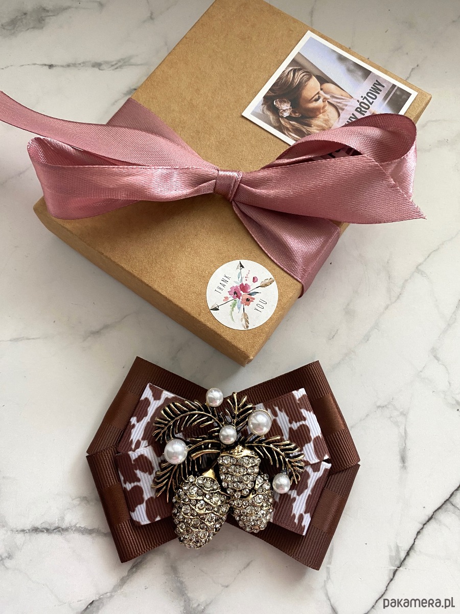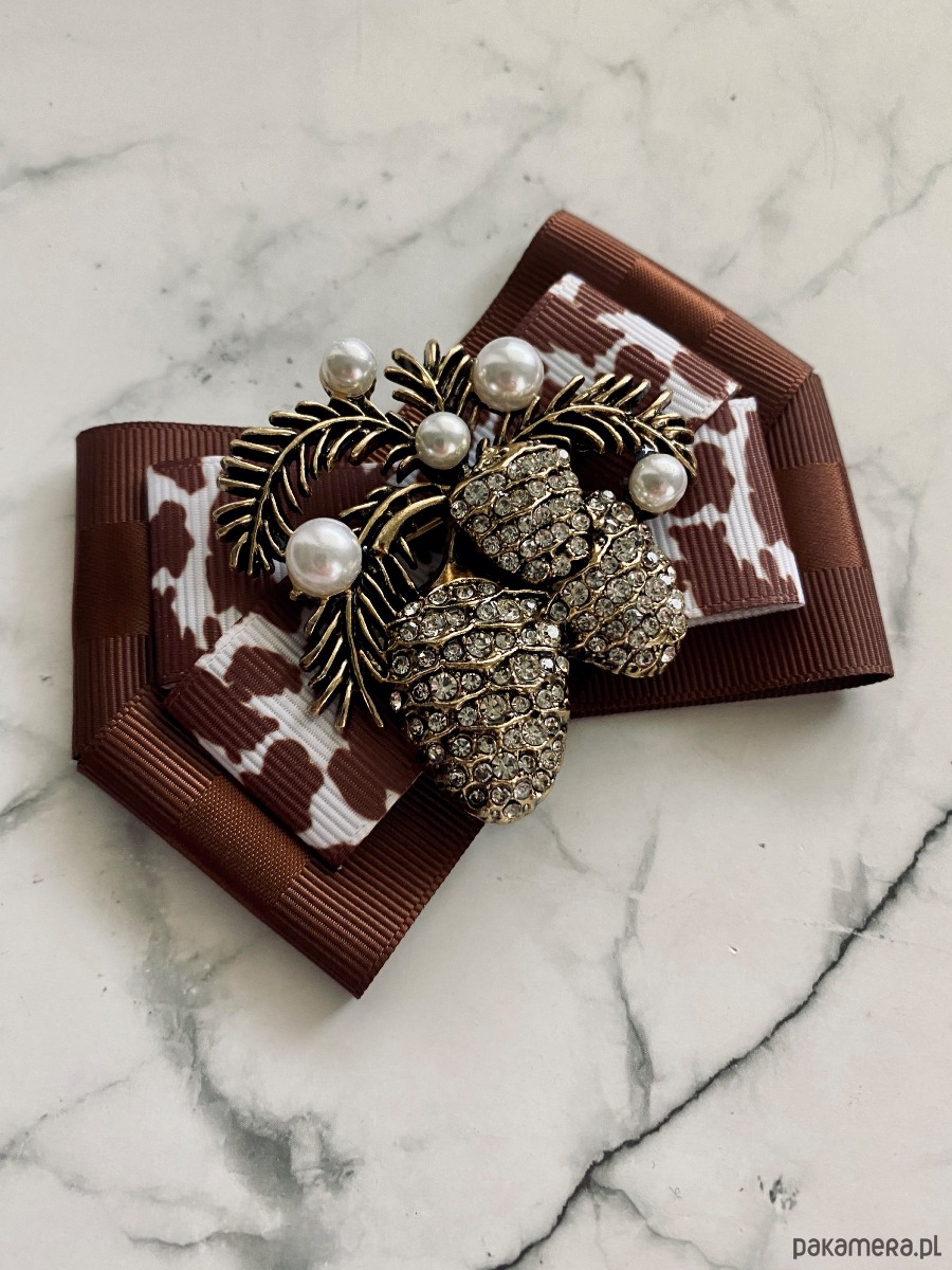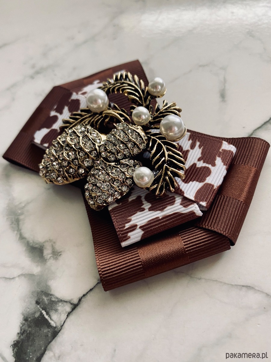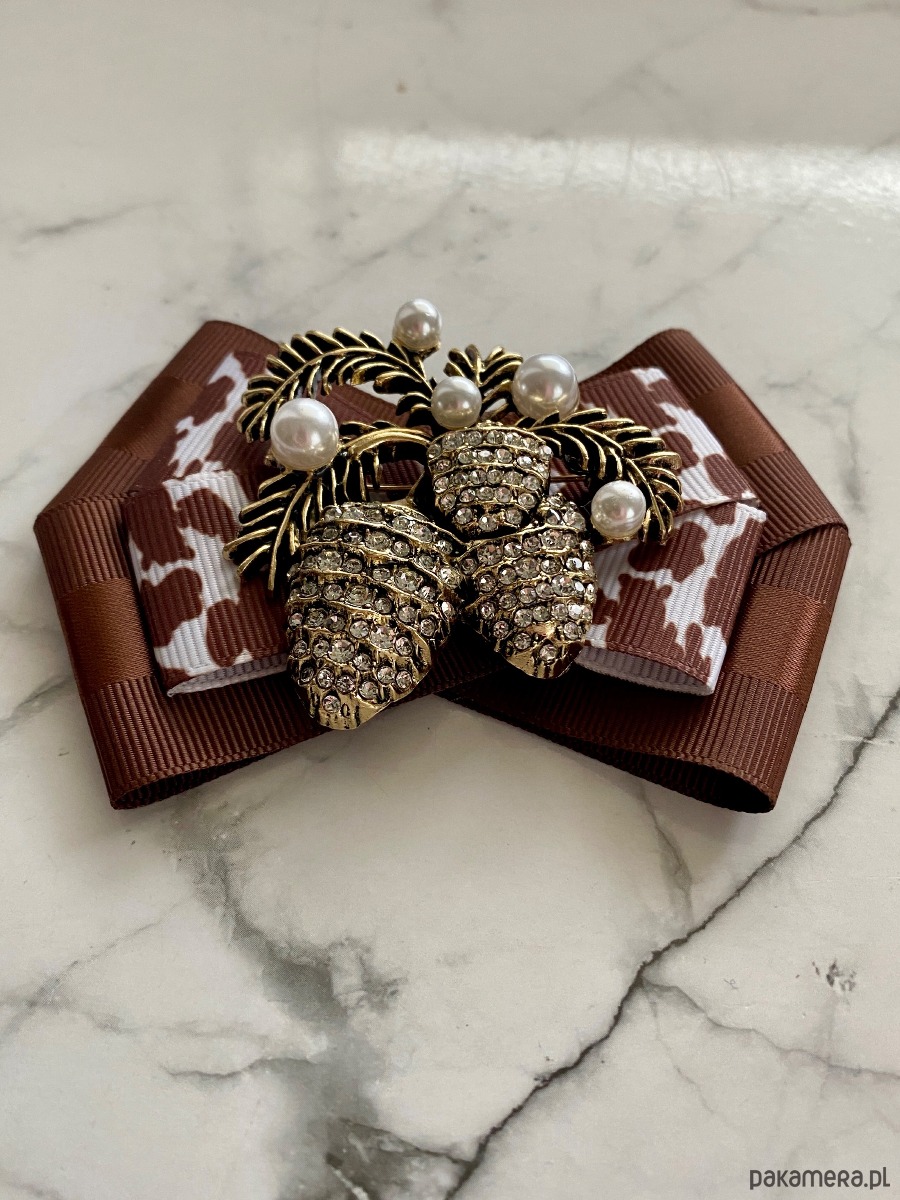 Broszka wykonana z wysokiej jakości taśm i dodatków.